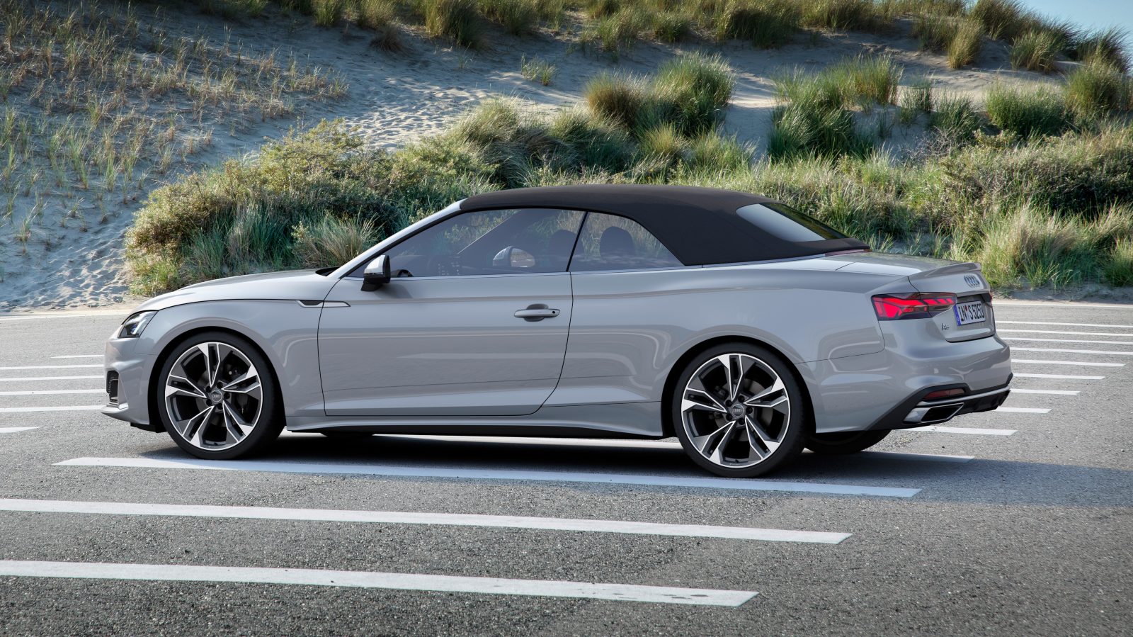 El Audi A5 Cabrio mide 4,6 metros de largo y tiene la capota de lona con accionamiento completamente eléctrico. No hay que desenganchar la capota en el parabrisas, como sí hacemos en el Mazda MX-5 Roadster. En el Audi solo pulsaremos un botón para ponerla o quitarla. Tiene la misma longitud que la del A5 Coupé. Tiene una buena calidad, tanto por tacto como por aislamiento y protección ante inclemencias. Tiene muy buenas plazas delanteras, y una excelente postura de conducción. Las plazas traseras son estrechas y cortas, pueden servir para viajes cortos, pero dependerá mucho de la talla de las personas que viajen delante, para que las traseras sean más o menos utilizables.
