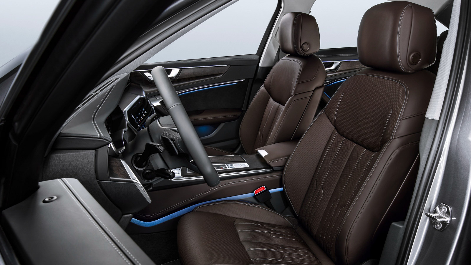 El Audi A6 PHEV se sitúa en un término medio de tamaño, siendo superior o más grande que un Audi A4 y más pequeño que un Audi A8. De puertas para dentro ofrece mucho espacio para todos los ocupantes, incluidos los de la segunda fila de asientos. La segunda fila permite que dos adultos viajen cómodamente, aunque la capacidad homologada es para cinco pasajeros. Cuenta con fijaciones ISOFIX en los asientos laterales, aunque no es lo suficientemente ancho como para poder instalar tres sillas infantiles.