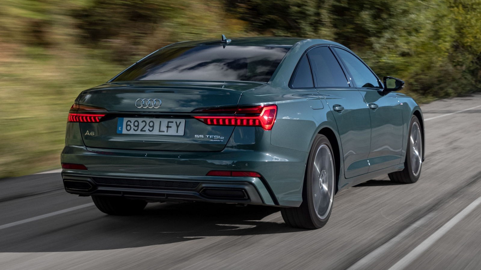 Cuando trabajan conjuntamente el A6 50 TFSIe ofrece un rendimiento máximo de 299 caballos y 450 Nm de par motor. El A6 55 TFSIe siempre viene acompañado de la denominación Competition y ofrece 367 caballos de potencia y 500 Nm de par motor. La parte eléctrica se nutre de una gran batería de iones de litio refrigerada por líquido instalada en la parte trasera. Cuenta con una capacidad bruta de 17,9 kWh, de los cuales 14,4 kWh son útiles. Toda la fuerza se reparte entre las cuatro ruedas mediante la tracción total Quattro típica de Audi mediante el trabajo de una caja de cambios automática de doble embrague y siete marchas.