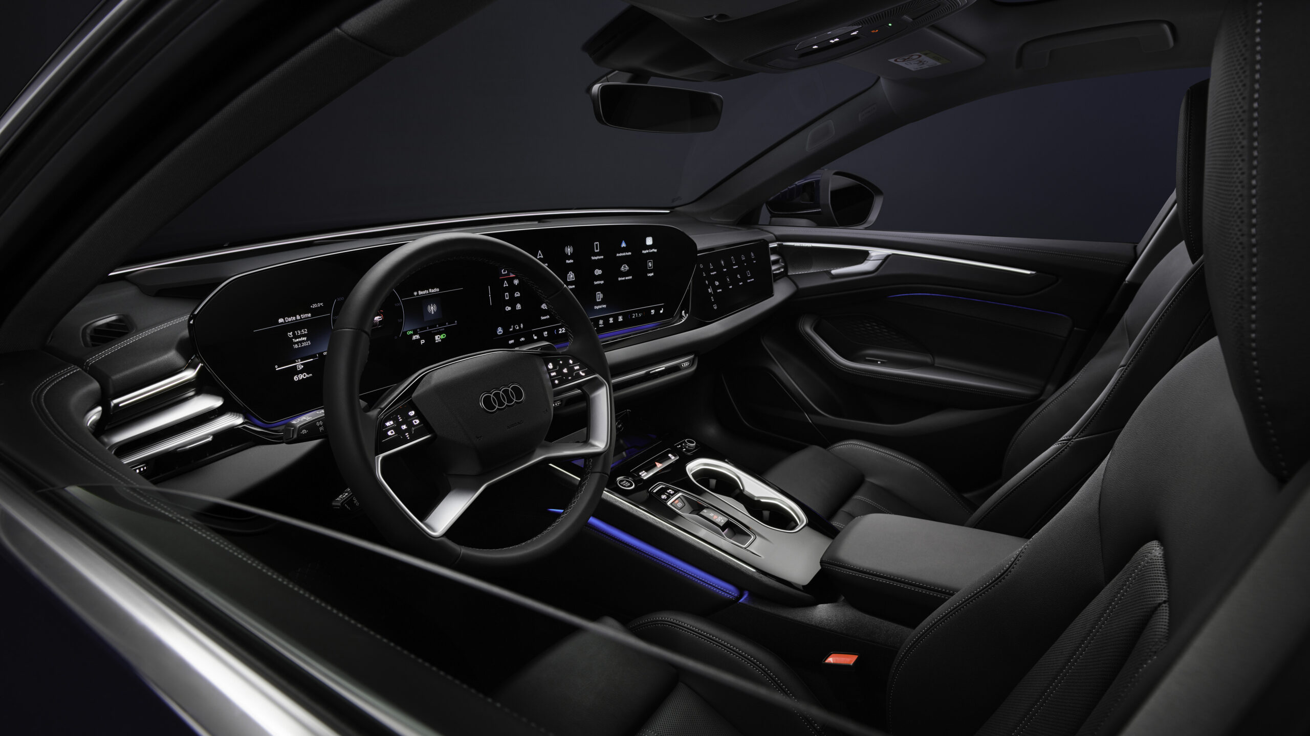El A6 Sedan se puede equipar climatizador de cuatro zonas con controles en los asientos traseros, sistema de purificación de aire con ionizador y sensor de partículas, cierre suave de puertas y techo panorámico con control digital de la luz. El sistema de sonido Bang & Olufsen está disponible con hasta 20 altavoces, incluidos unos altavoces en los reposacabezas delanteros, con funciones de sonido envolvente personal, ajustes adaptativos o simulaciones acústicas como conciertos o clubs de jazz. En los materiales Audi dice que ha apostado por textiles reciclados como Dinamica o Kaskade, que imitan la textura del cuero y la lana y están presentes en asientos, puertas y apoyabrazos. También se ofrecen inserciones en madera natural.