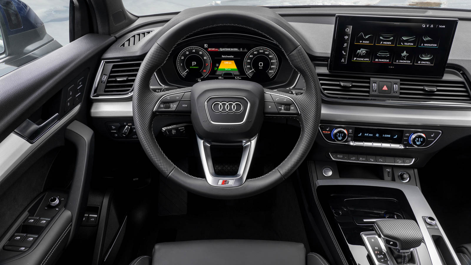 Audi posiciona las versiones híbridas enchufables dentro de la parte alta de la gama, por eso tienen un equipamiento un tanto mayor que otras versiones. Encontramos, no obstante, el mismo cuadro de relojes digital y el mismo sistema multimedia que modelos menos potentes y dejan en opción, los componentes que Audio denomina “Plus”. Por el precio y posicionamiento del modelo, sí que echamos de menos un mando satélite para manejar el sistema multimedia y no tener que tocar constantemente la pantalla del salpicadero. Tampoco hay una gran información acerca del funcionamiento del sistema híbrido. Sí podemos decirte que Audi ha mejorado la comunicación por voz con el coche, pero no aseguramos un gran rendimiento.