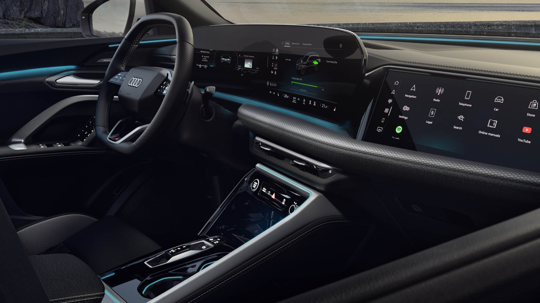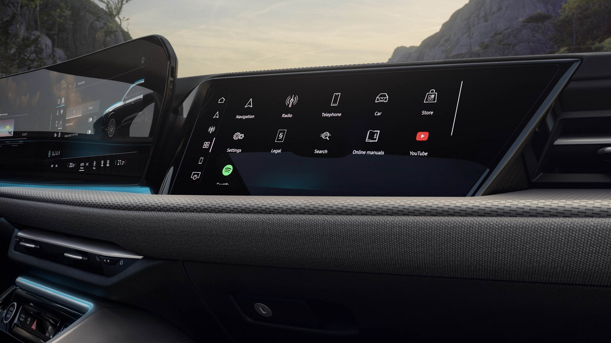 El sistema multimedia del Audi Q5 es uno de sus principales atractivos, especialmente por su integración con Android Automotive OS, lo que permite actualizaciones "over-the-air" y la descarga de aplicaciones directamente en el vehículo, como YouTube. El corazón del sistema es la pantalla MMI touch de 14,5 pulgadas, que junto al Audi Virtual Cockpit de 11,9 pulgadas, forman un conjunto visual curvado e intuitivo, conocido como el MMI panoramic display. Estas pantallas OLED ofrecen gráficos nítidos y un manejo fácil mediante toques y comandos de voz.