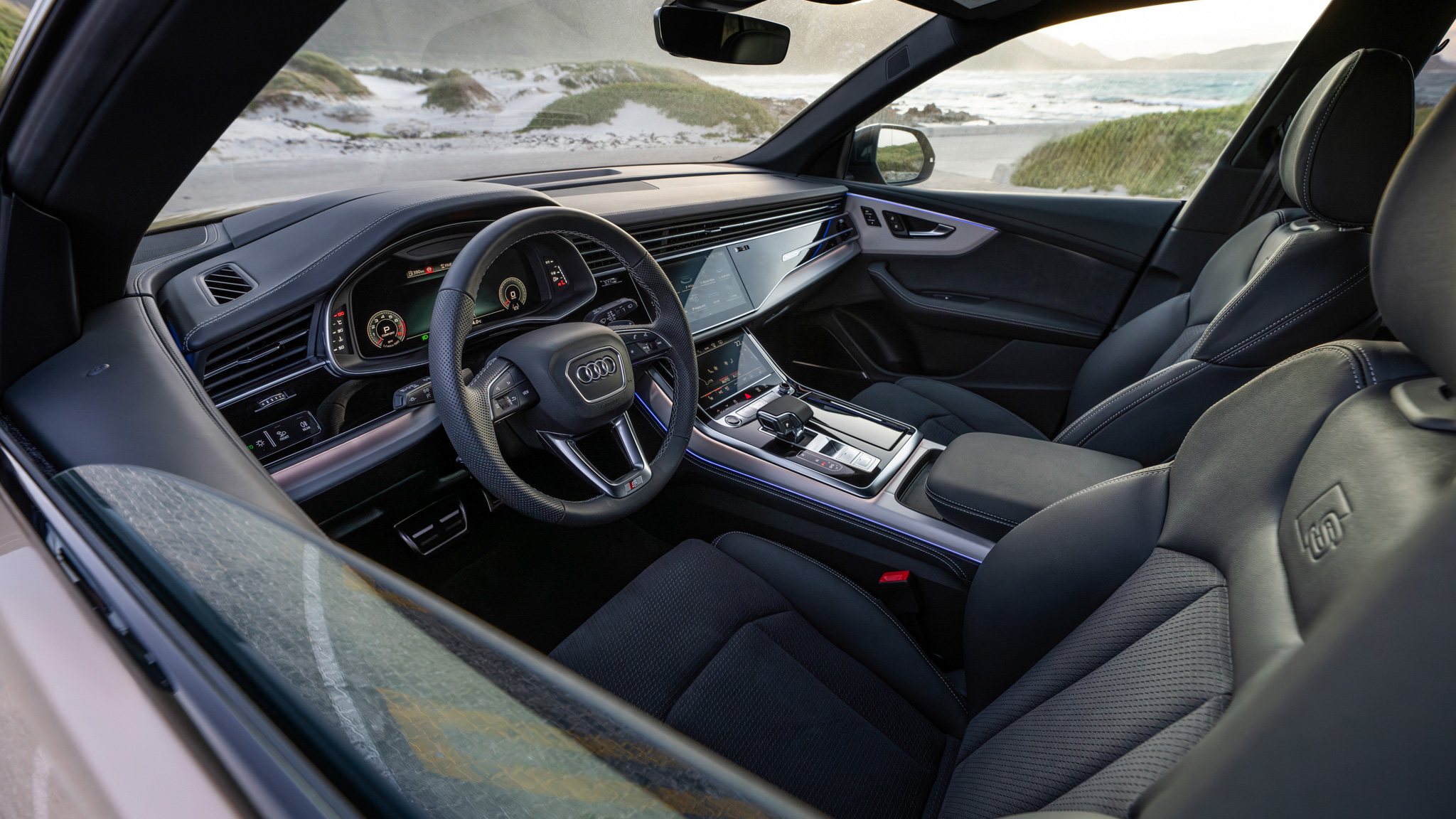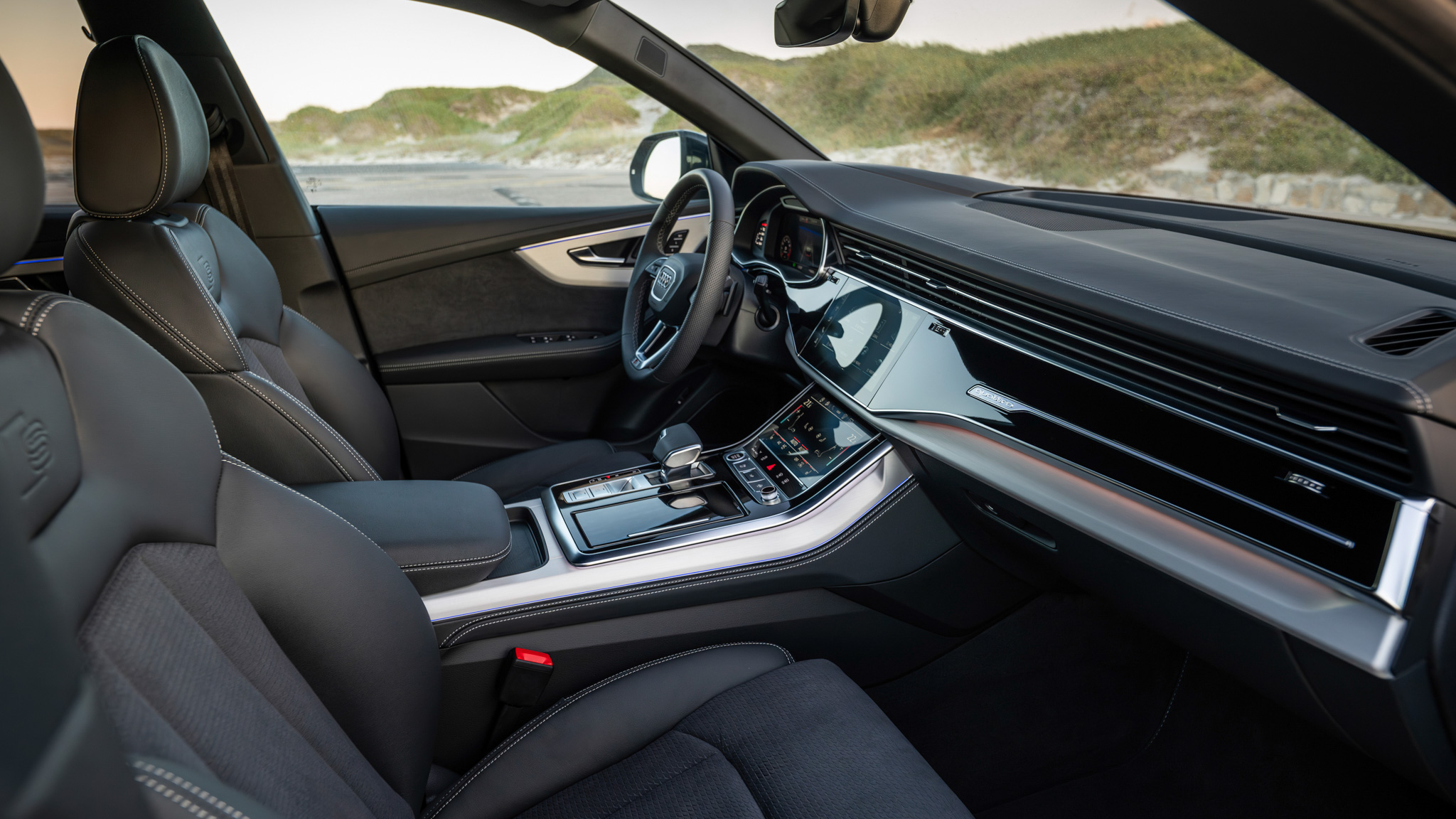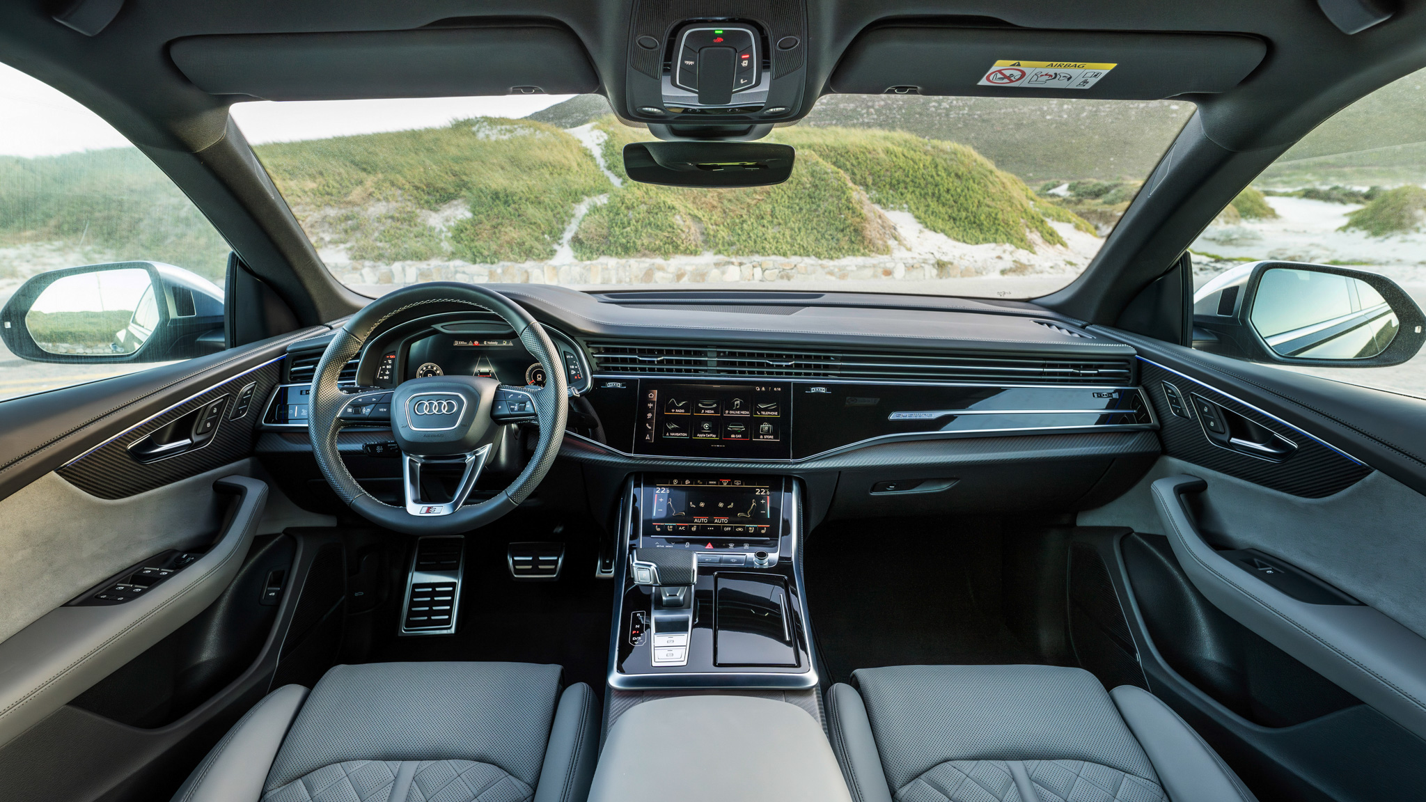 La calidad de ensamblaje en el interior del Q8, refleja el estándar de fabricación que caracteriza a Audi. Es un espacio que combina lujo, tecnología avanzada y una gran atención al detalle. Los materiales empleados son de primera calidad, como cuero, Alcántara, aluminio pulido y madera, disponibles en distintas configuraciones según el acabado. El diseño del habitáculo es minimalista y limpio, con líneas horizontales que acentúan la sensación de amplitud.