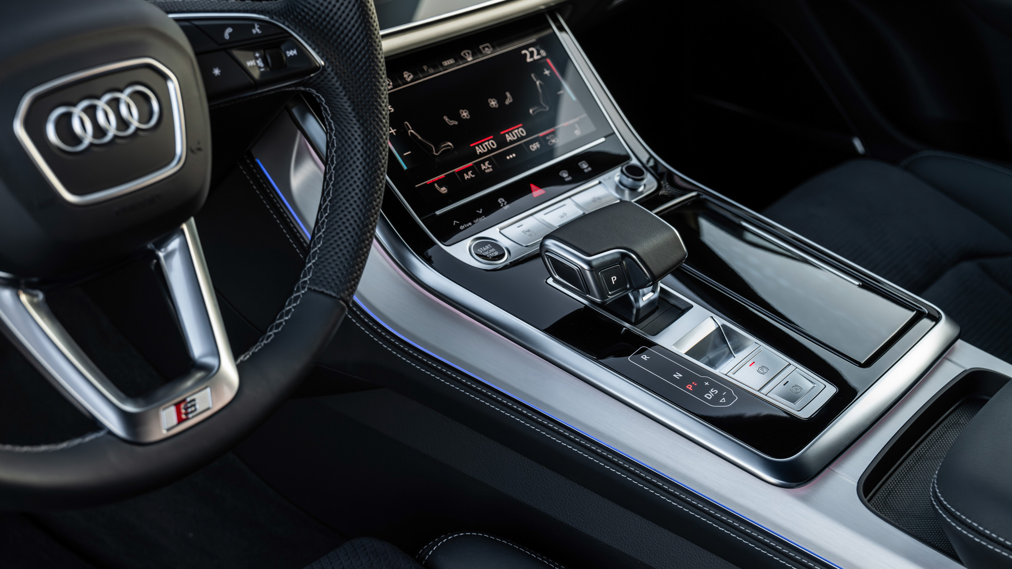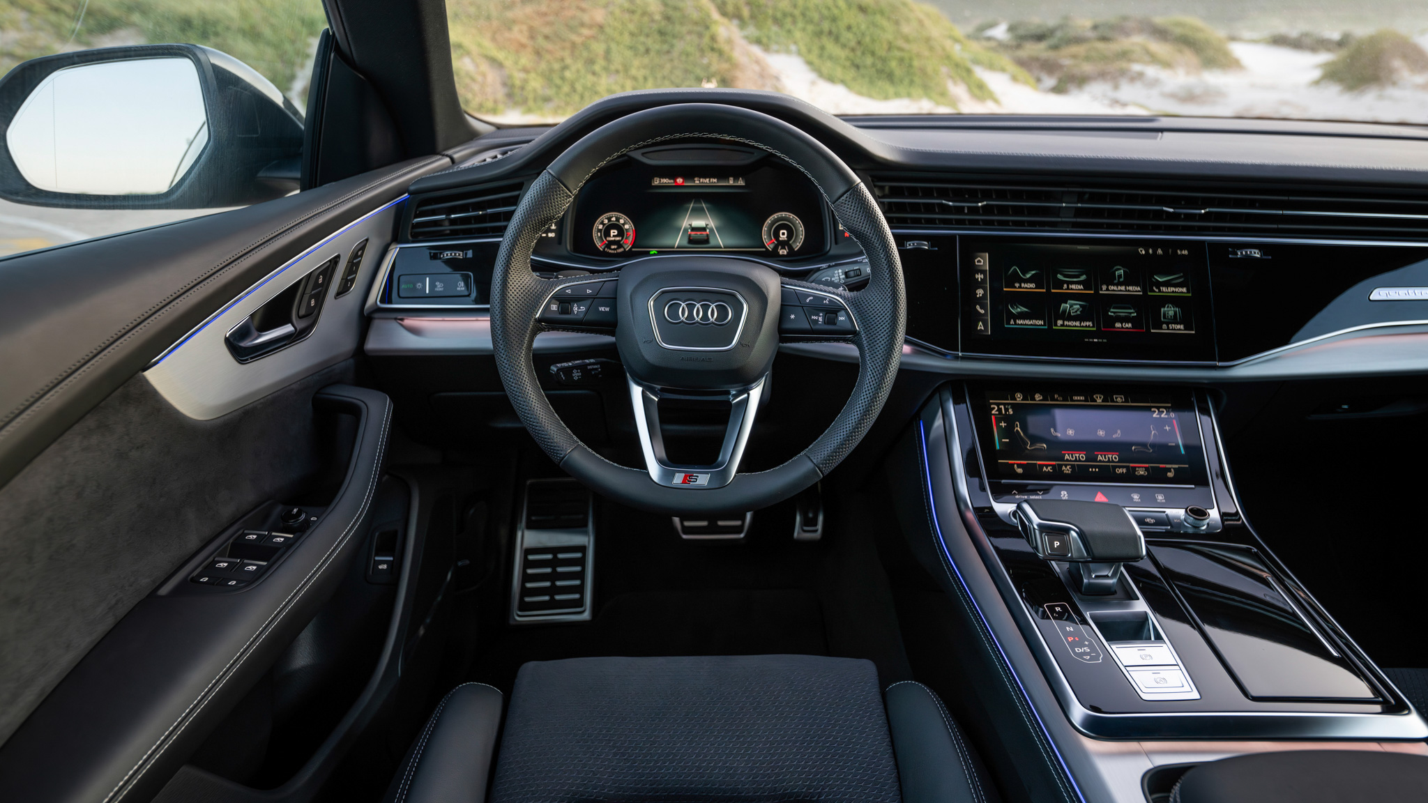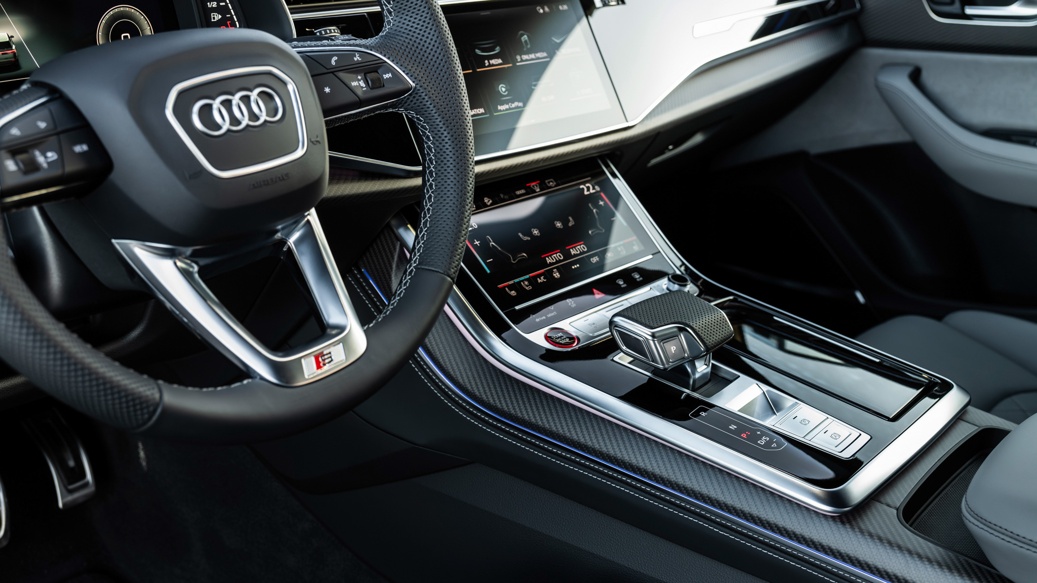 La calidad de ensamblaje en el interior del Q8, refleja el estándar de fabricación que caracteriza a Audi. Es un espacio que combina lujo, tecnología avanzada y una gran atención al detalle. Los materiales empleados son de primera calidad, como cuero, Alcántara, aluminio pulido y madera, disponibles en distintas configuraciones según el acabado. El diseño del habitáculo es minimalista y limpio, con líneas horizontales que acentúan la sensación de amplitud.