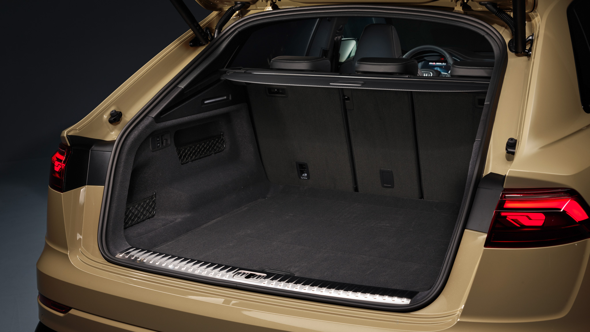 En comparación con rivales como el BMW X6 (580 litros) o el Porsche Cayenne Coupé (625 litros), el Q8 se sitúa en un punto intermedio, ofreciendo una buena combinación de practicidad y diseño coupé. Además, todas las versiones cuentan con un portón trasero eléctrico de serie y la opción de apertura gestual, que permite abrirlo con un simple movimiento del pie bajo el parachoques trasero.
