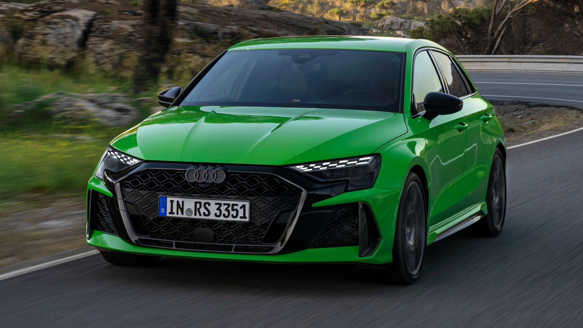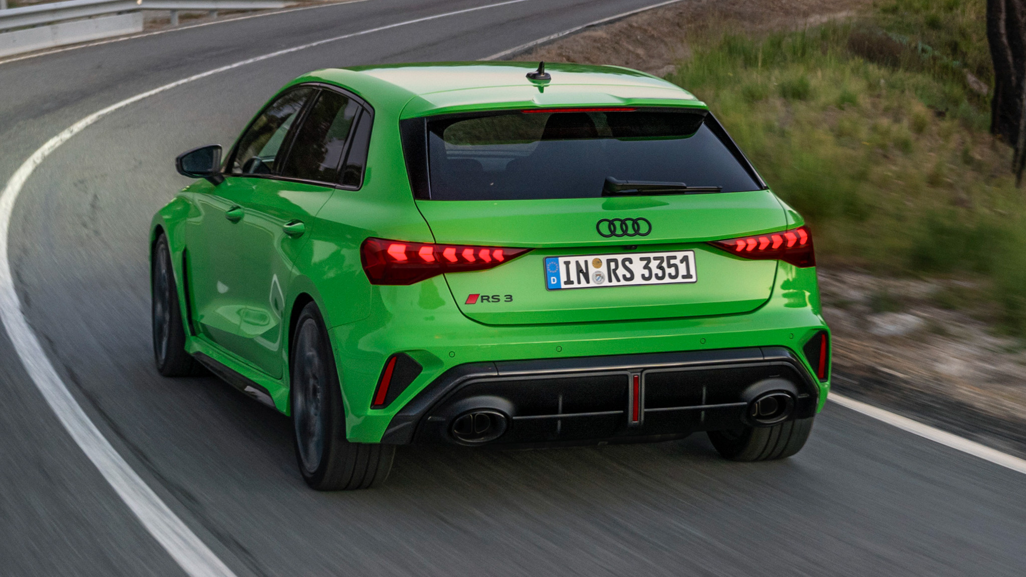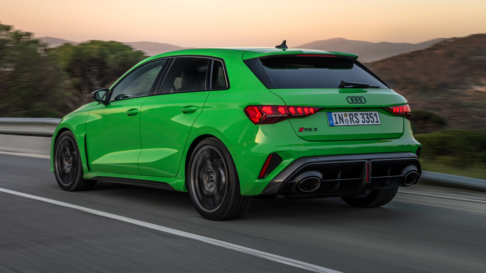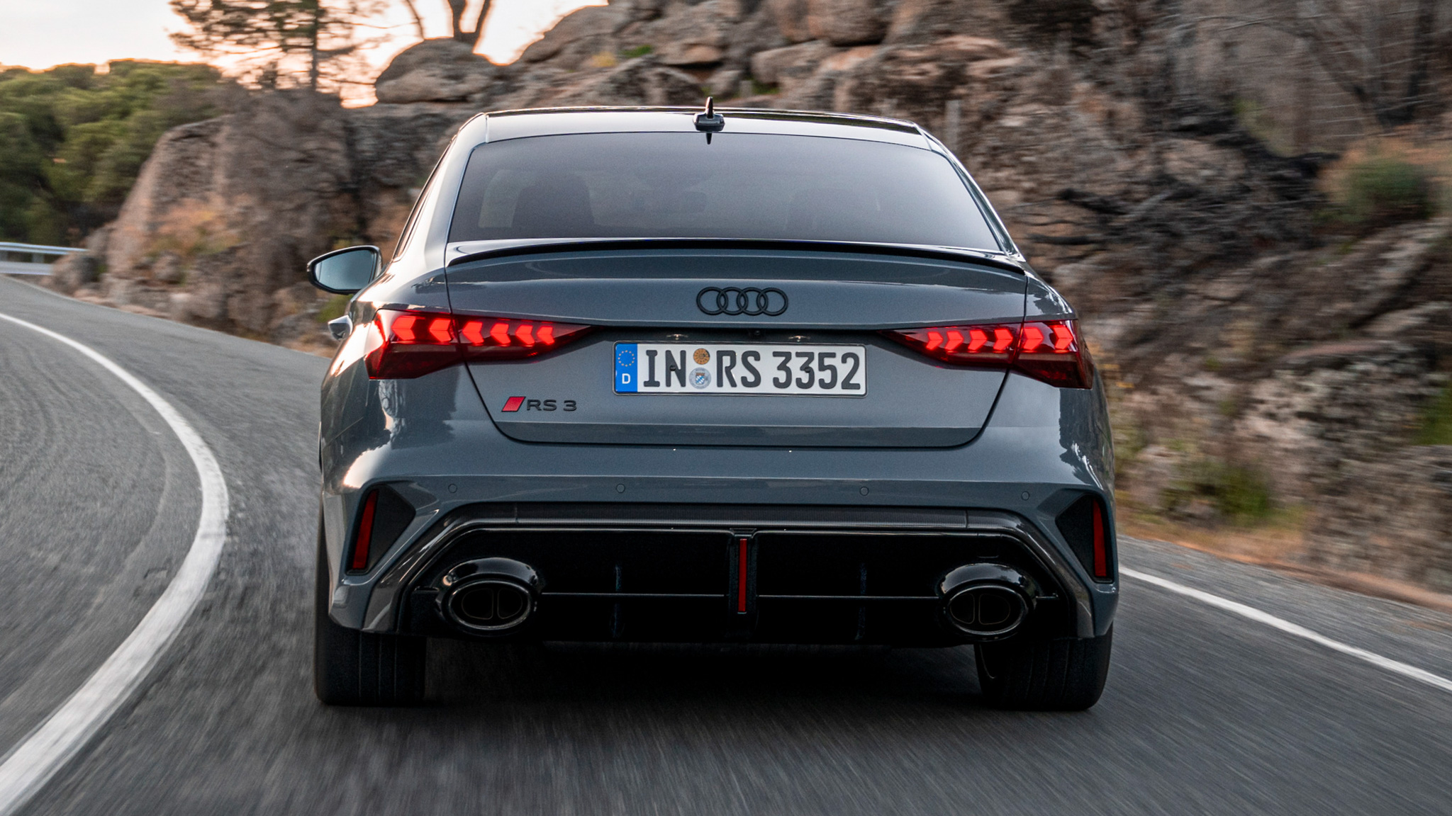 En comparación con su predecesor, el nuevo RS 3 ha logrado reducir su tiempo en el circuito de Nürburgring-Nordschleife en más de cinco segundos, gracias a una optimización del chasis, mejoras en la comunicación entre sistemas electrónicos y la inclusión de un torque splitter que distribuye el par motor de forma totalmente variable entre las ruedas traseras. Este modelo se enfrenta a rivales como el Mercedes-AMG A 45 S y el BMW M2, con los que compite en prestaciones y versatilidad.