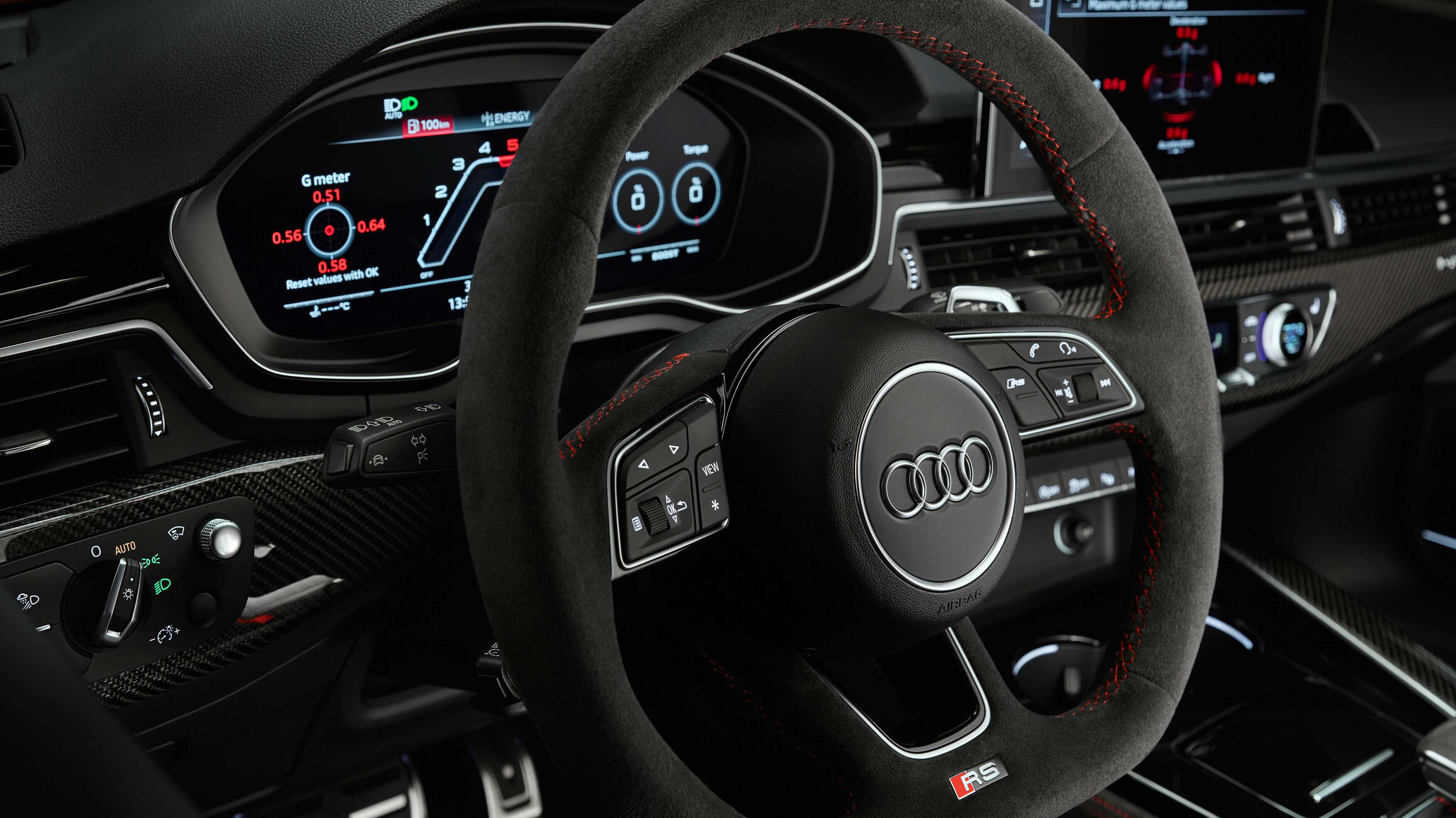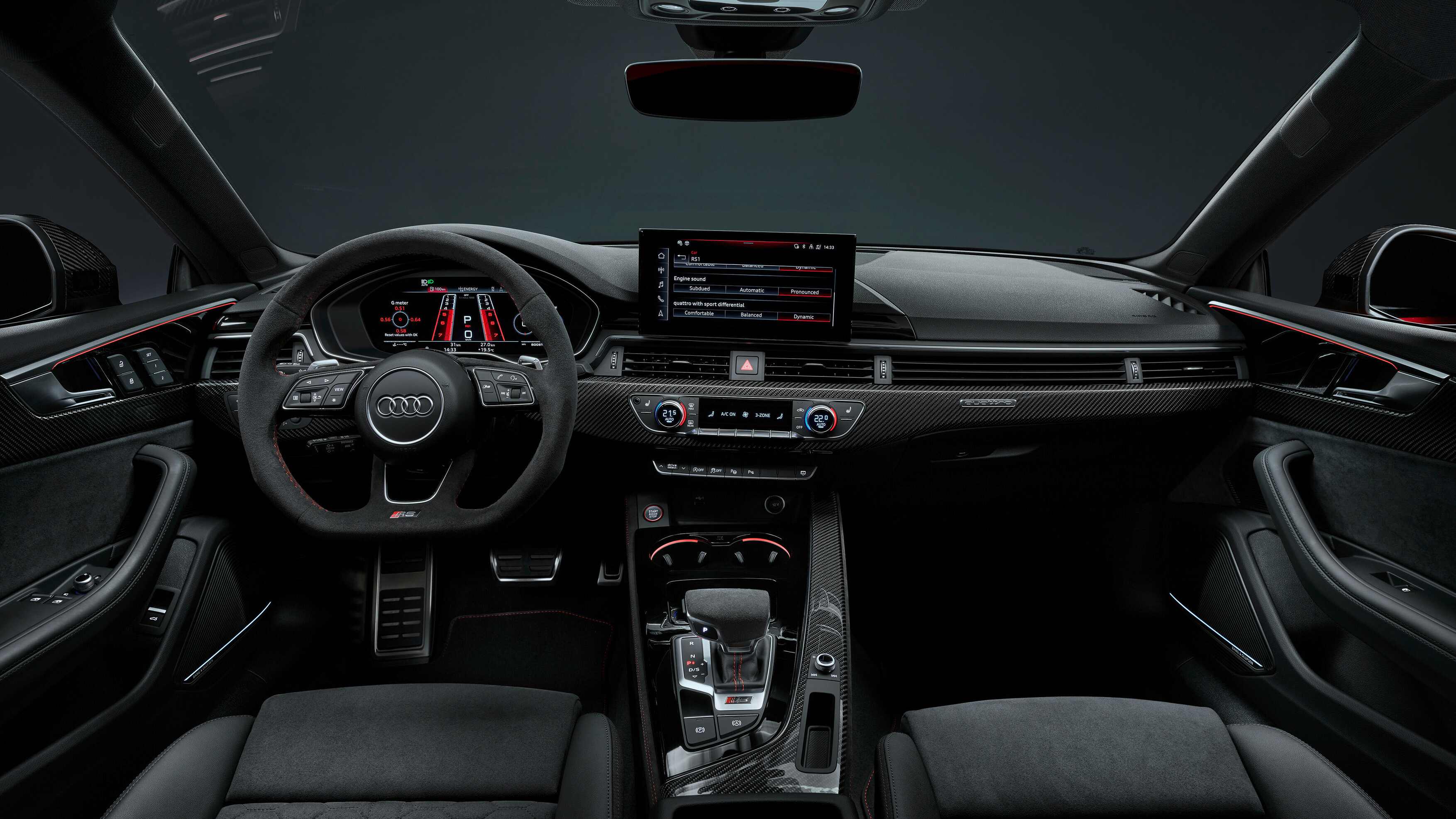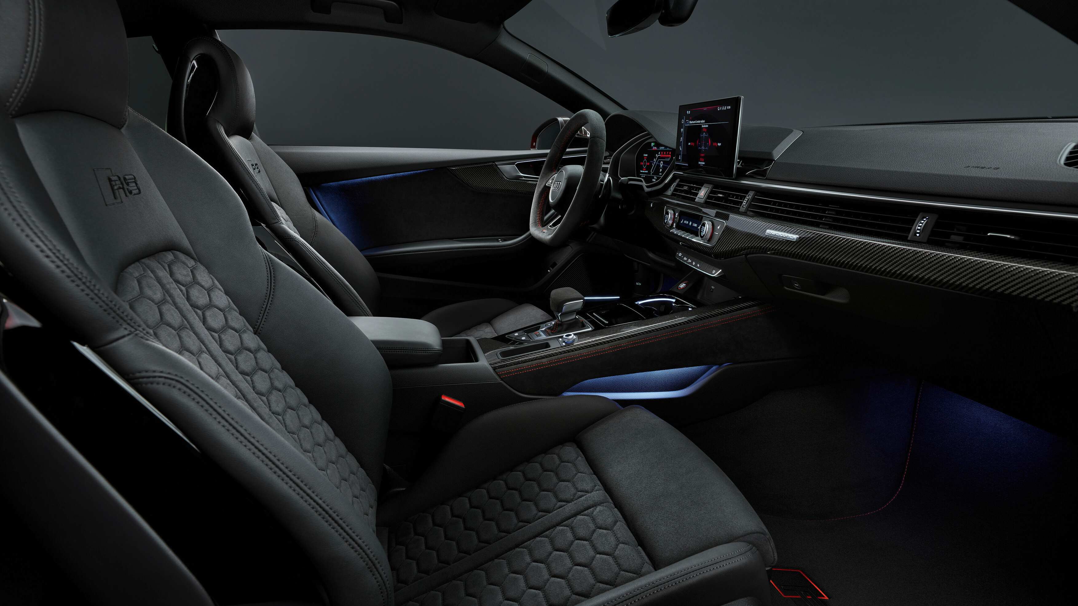 El equipo multimedia va asociado a una pantalla táctil MMI de 10,1 pulgadas con navegador e instrumentación digital configurable (en los RS 5 Competition Plus hay un modo de visualización específico que se llama Runaway). La conectividad con Android Auto y Apple CarPlay, así como el punto inalámbrico de recarga de móviles, son opcionales. El sistema de sonido de serie tiene 10 altavoces, pero si lo prefieres puedes elegir uno de 19 altavoces firmado por Bang&Olufsen (de serie con el Competition Plus).