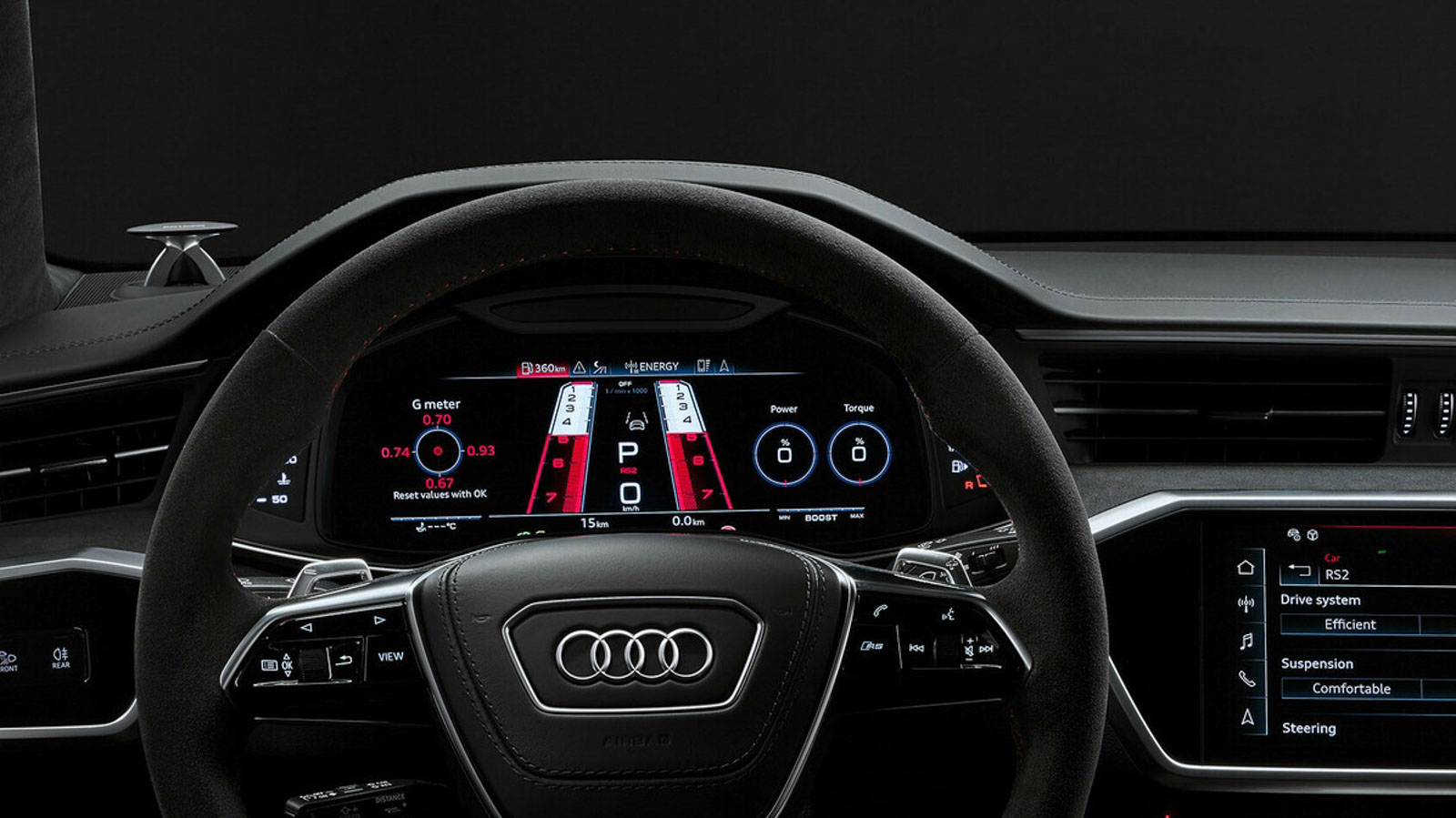 Como en otros modelos RS de la Audi, el sistema multimedia permite guardar y acceder fácilmente a dos configuraciones personales de los parámetros del vehículo (modos RS1 y RS2). En los RS 6 Avant Performance, la instrumentación tiene algunas funciones específicas, como un indicador que ayuda a cambiar de marcha en el momento adecuado o un asistente que permite optimizar la aceleración al máximo con el sistema launch control.