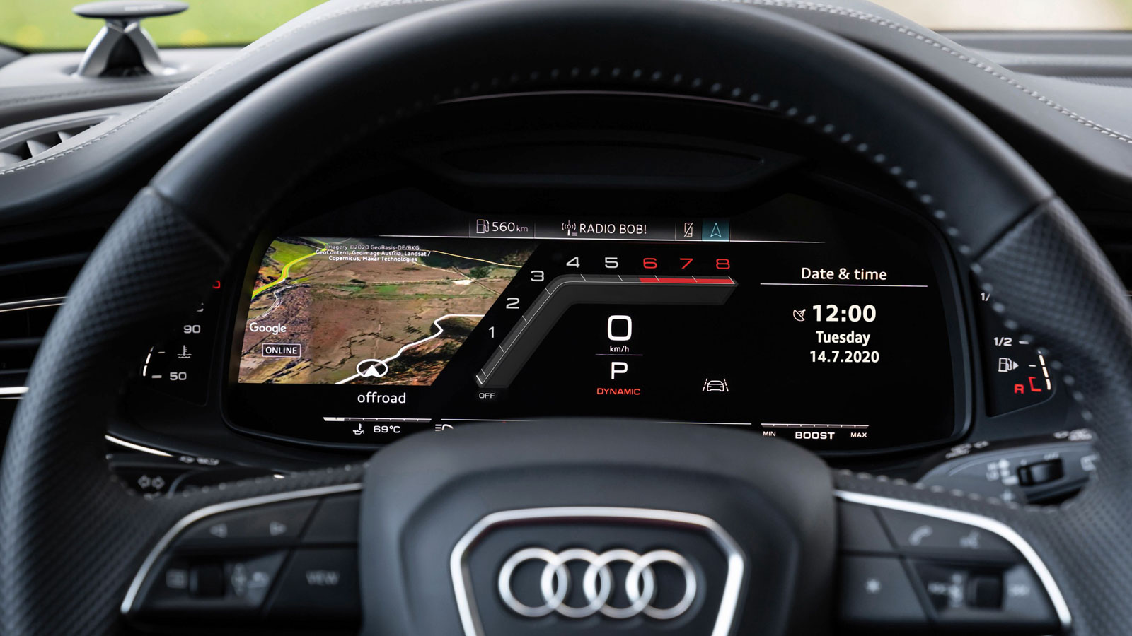 El equipo multimedia se denomina MMI Navegación Plus y se maneja a través de una pantalla táctil de 10,1 pulgadas. De serie es compatible con Android Auto y Apple CarPlay y puede crear una red Wifi para conectar teléfonos móviles. La instrumentación es digital, como en el resto de la gama, pero en este caso tiene un modo de visualización especial con denominación Performance, que muestra el indicador de revoluciones en el centro.