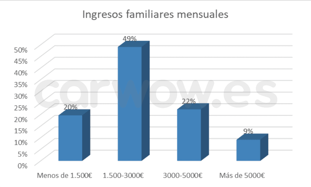 Al analizar los ingresos de los usuarios por unidad familiar, el barómetro desprende que el 49% de los encuestados tiene unos ingresos mensuales totales de entre 1.500 y 3.000 euros, frente a aquellos que perciben entre 3.000 y 5.000 euros al mes (22%) o los que reciben menos de 1.500 euros (20%) en el mismo lapso. En cuanto a la actividad profesional, destaca que el 55% son trabajadores por cuenta ajena, el 18% por cuenta propia y el 23% jubilados.