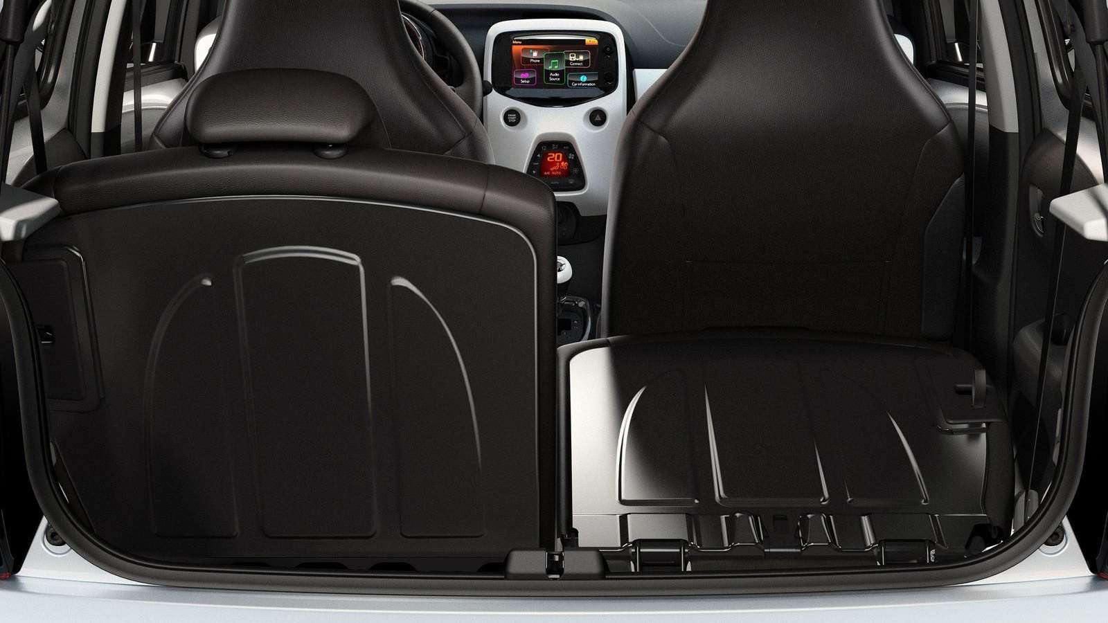 Las recatadas dimensiones del Peugeot 108 provocan que, al abatir los asientos traseros, la capacidad del maletero no mejore tanto en proporción a lo que sí lo hacen otros coches con carrocerías y distancia entre ejes mayores.