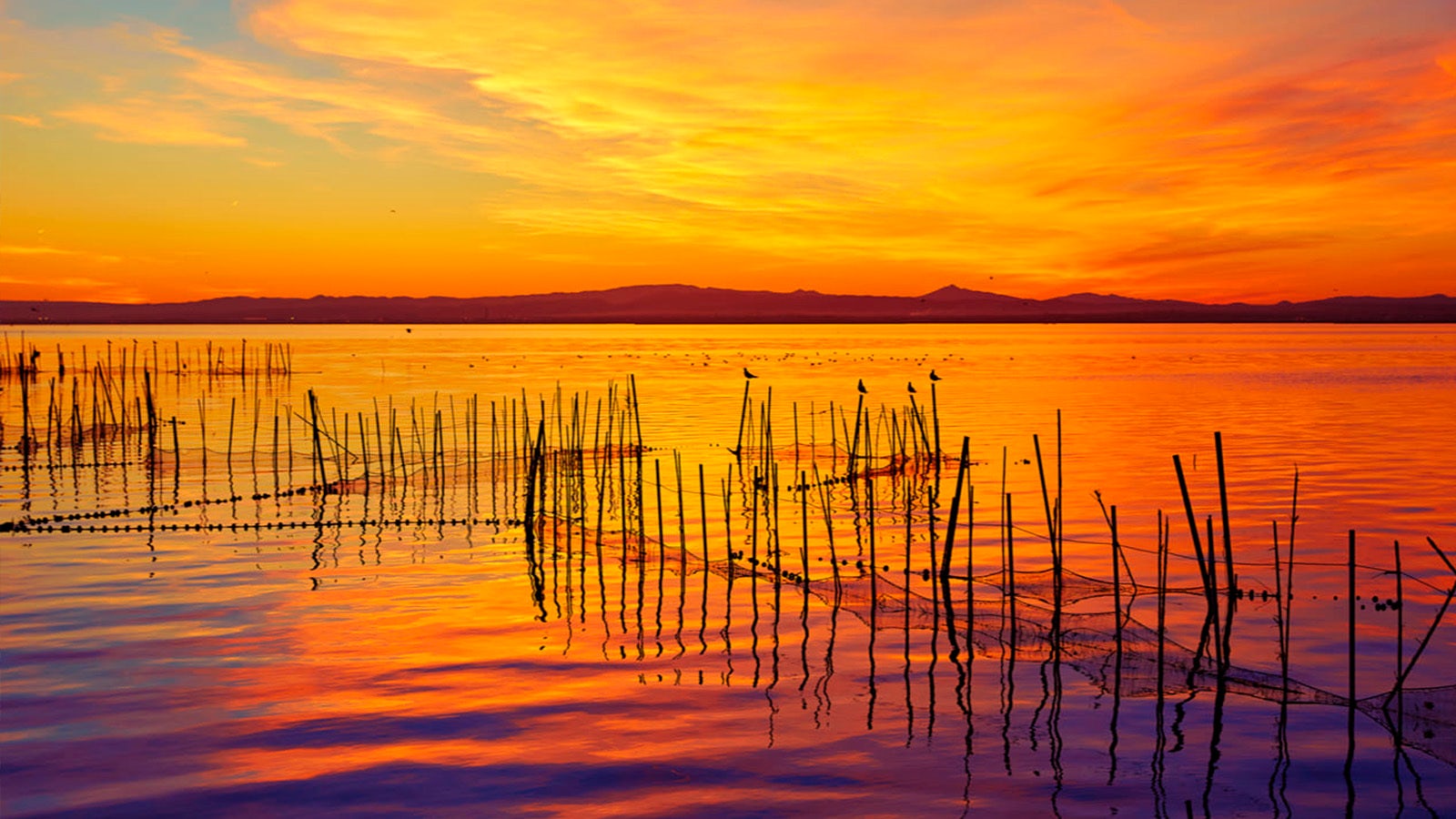 Una vez pasemos la urbanización de Les Gavines, pararemos en el mirador que queda a la derecha y podremos dar un paseo en barca. Esto es especialmente recomendable al atardecer, ya que la puesta de Sol desde este punto resulta llamativa: la estrella se refleja en el agua y se pone tras las montañas de poniente iluminando el cielo de un color anaranjado. De vuelta en el embarcadero, seguimos conduciendo hacia el sur y nos desviamos en la primera salida de la rotonda hacia El Palmar. Tras pasar por una carretera con unos puentes muy estrechos (cuidado con las preferencias), llegamos a la población donde se cree que nació la receta de la auténtica paella valenciana. Aquí hay muchos restaurantes especializados en su elaboración tradicional.