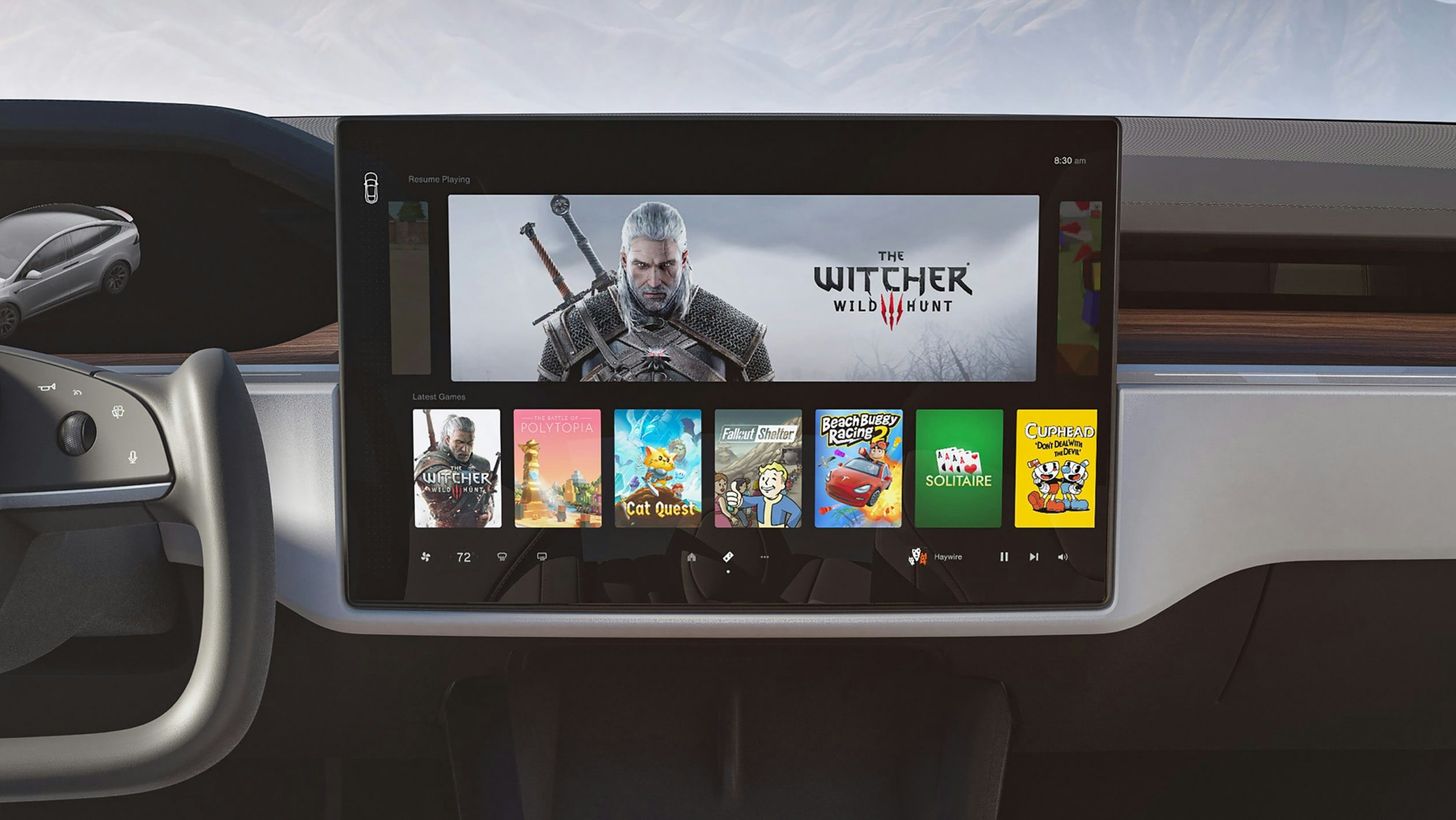 En esta línea, el habitáculo presenta ahora tres pantallas. Las dos primeras se encuentran en el salpicadero (una detrás del volante, para el cuadro de instrumentos, y otra que hace de consola central, para el sistema multimedia, ambos horizontales y de 12” y 17” respectivamente), mientras que la tercera y más pequeña se sitúa entre las butacas delanteras, aunque orientada a los pasajeros traseros a fin de su entretenimiento. Todas tienen, según la compañía, una gran resolución y velocidad de procesamiento que les hacen aptas, entre otras funciones, para usarse con videojuegos mediante un mando inalámbrico.