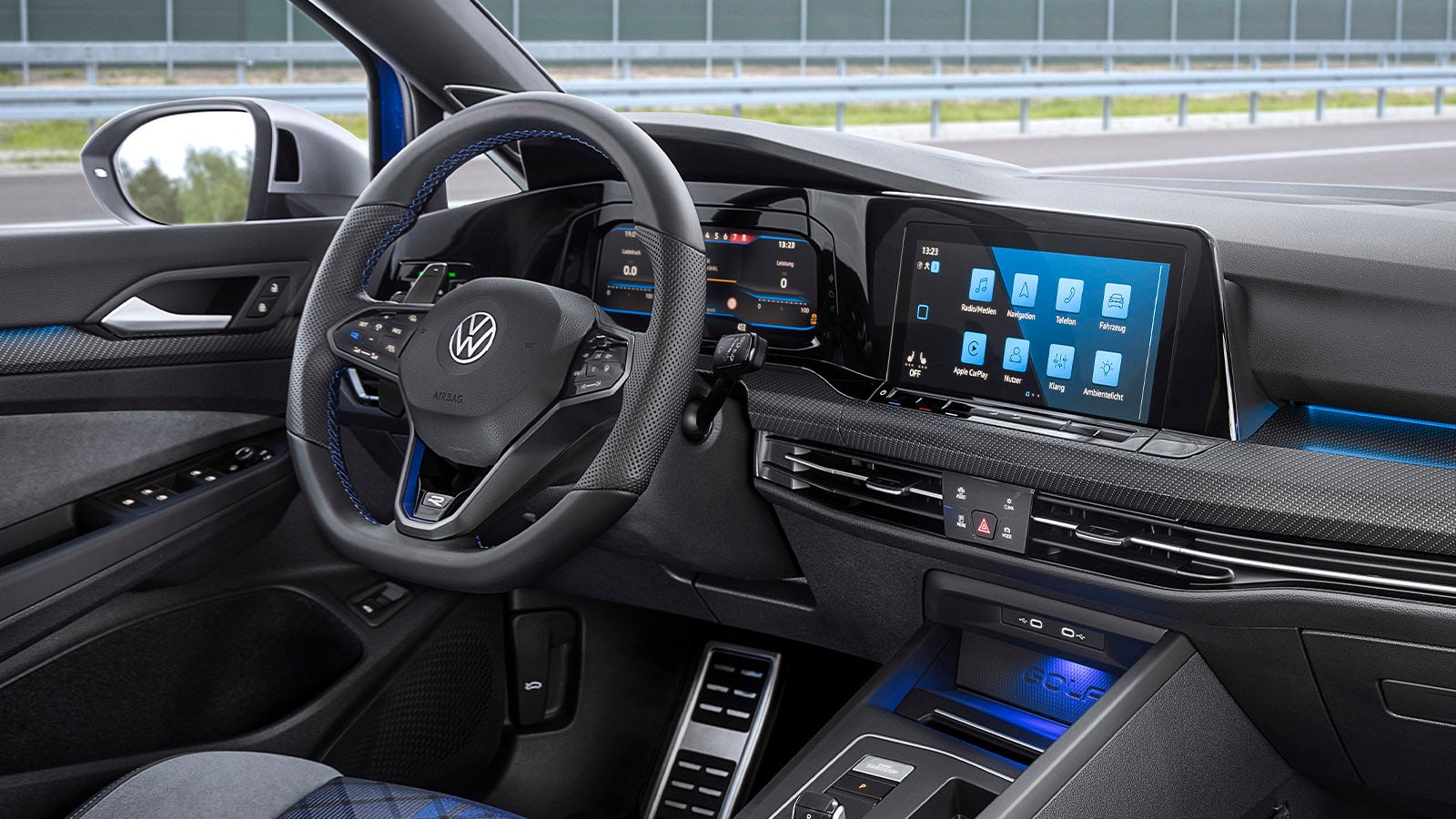 Por el contrario, la suspensión adaptativa, los discos de frenos delanteros perforados de 357 mm de diámetro con pinzas de cuatro pistones, los asientos deportivos con reposacabezas integrado y tapicería de tela con detalles azules, el portón trasero con accionamiento eléctrico, el Head-Up Display, las pantallas de gran tamaño para el sistema multimedia de última generación (compatible con Android Auto y Apple CarPlay) y para el cuadro de instrumentos, así como los botones hápticos del volante multifunción forrado en cuero, forman parte del equipamiento estándar en ambos modelos (corto y familiar). No así el sistema de escape deportivo, desarrollado por el especialista Akrapovic, que tiene un sobrecoste de casi 4.000 euros. Volkswagen vende otro deportivo compatible con la vida familiar, el Arteon R Shooting Brake, que es todavía más grande (4,86 m de largo) y tiene el mismo tren propulsor.