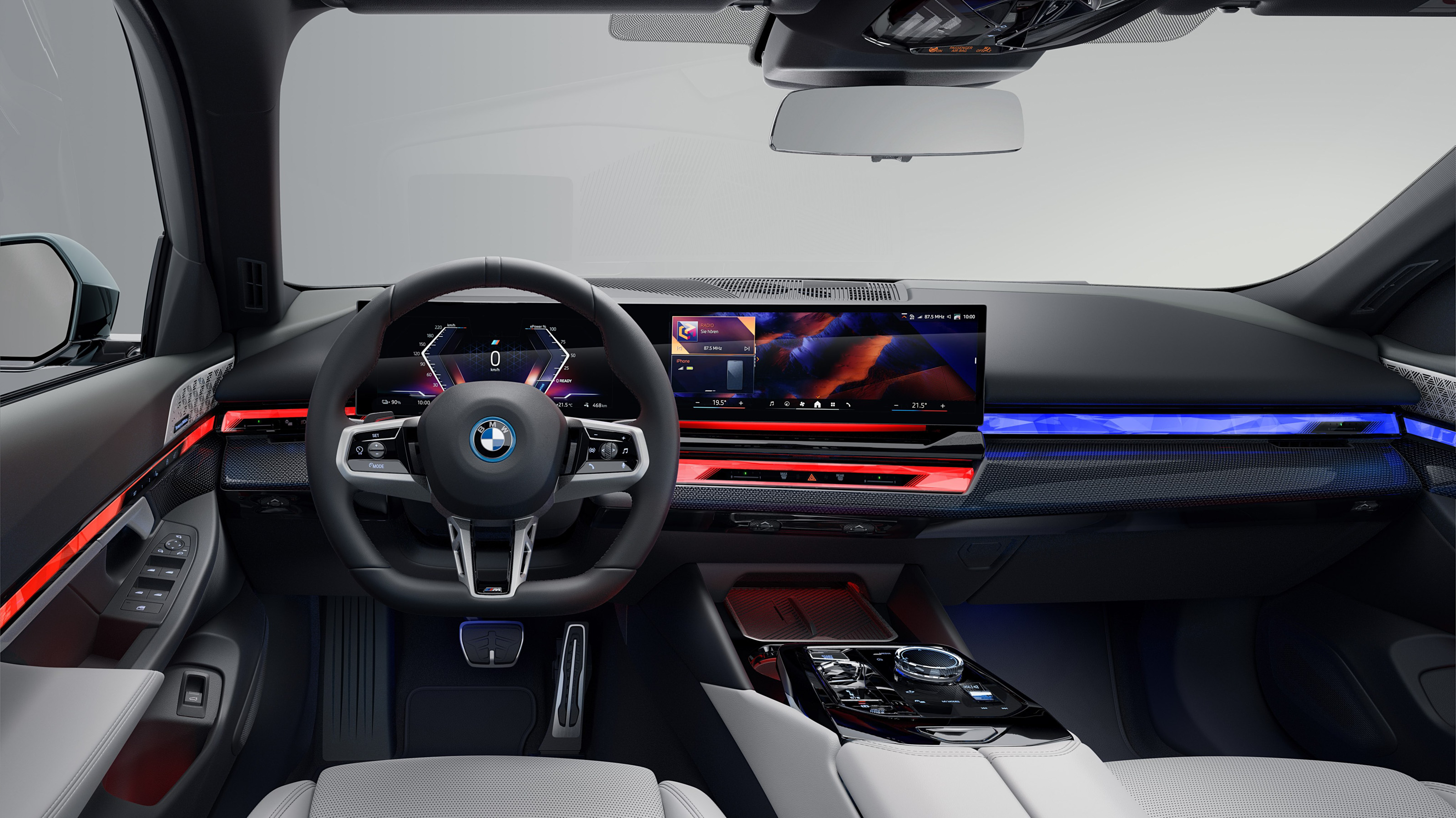 El i5 tiene acabados de buena calidad y un equipamiento moderno, a la última en sistemas de ayuda a la conducción y confort. En el interior destaca el nuevo sistema multimedia, con dos pantallas curvas de gran tamaño y una superficie táctil que recorre el salpicadero y las puertas de lado a lado.