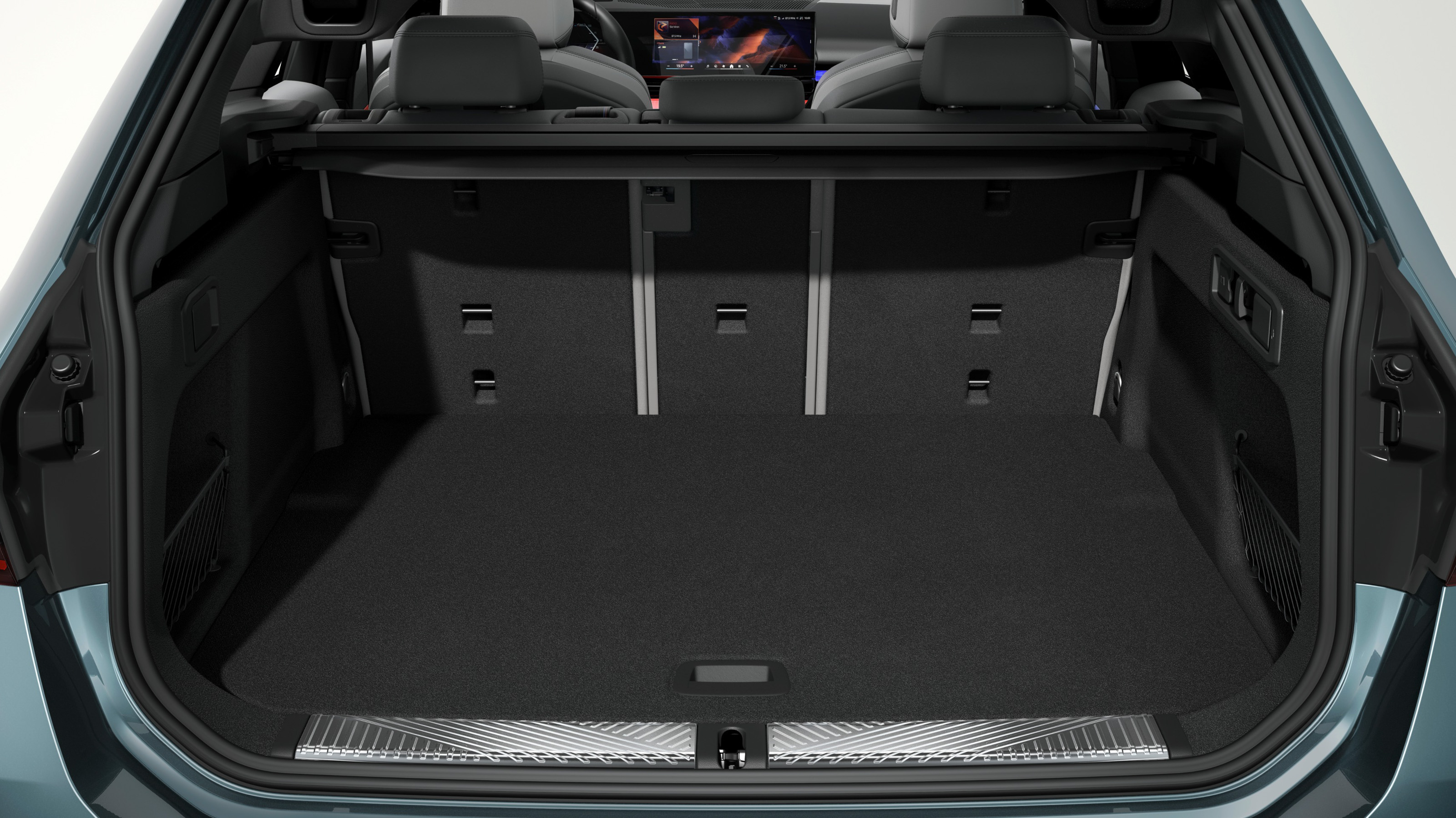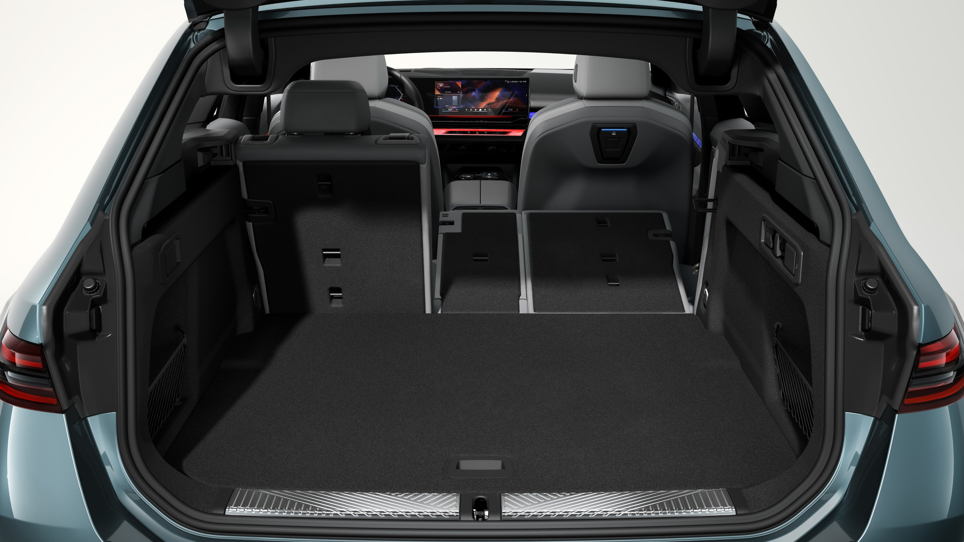 El maletero del i5 es idéntico al de cualquier Serie 5 Touring: tiene 570 litros de capacidad, 80 más que la berlina. Los respaldos de los asientos traseros se pueden abatir desde unos botones en el lateral del maletero, y así se consiguen hasta 1700 litros de volumen en la zona de carga. Con los asientos plegados, queda una ligera pendiente, aunque está enrasada con la superficie del maletero, por lo que resulta sencillo introducir o sacar objetos largos.
