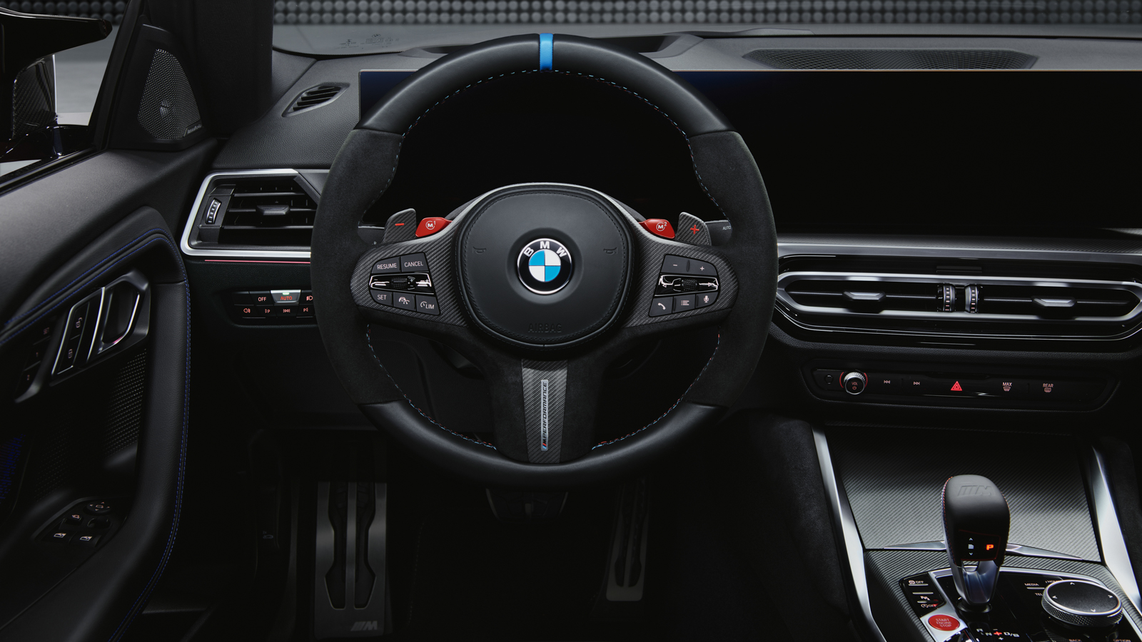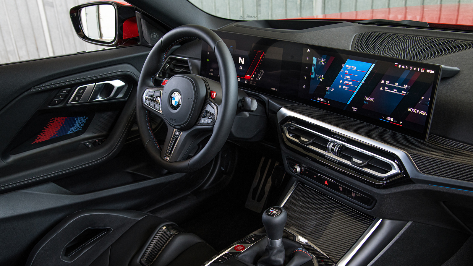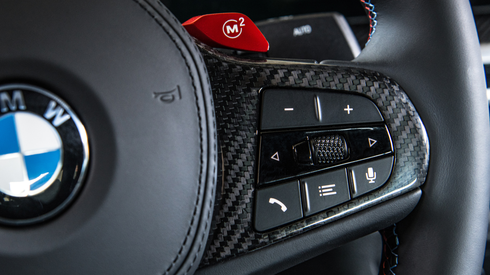 Además, en el interior nos encontramos con molduras de fibra de carbono, un volante específico M, con levas en el volante y botones para acceder rápidamente a los modos de conducción guardados, y varios emblemas M que nos recuerdan que vamos sentados en un coche especial.