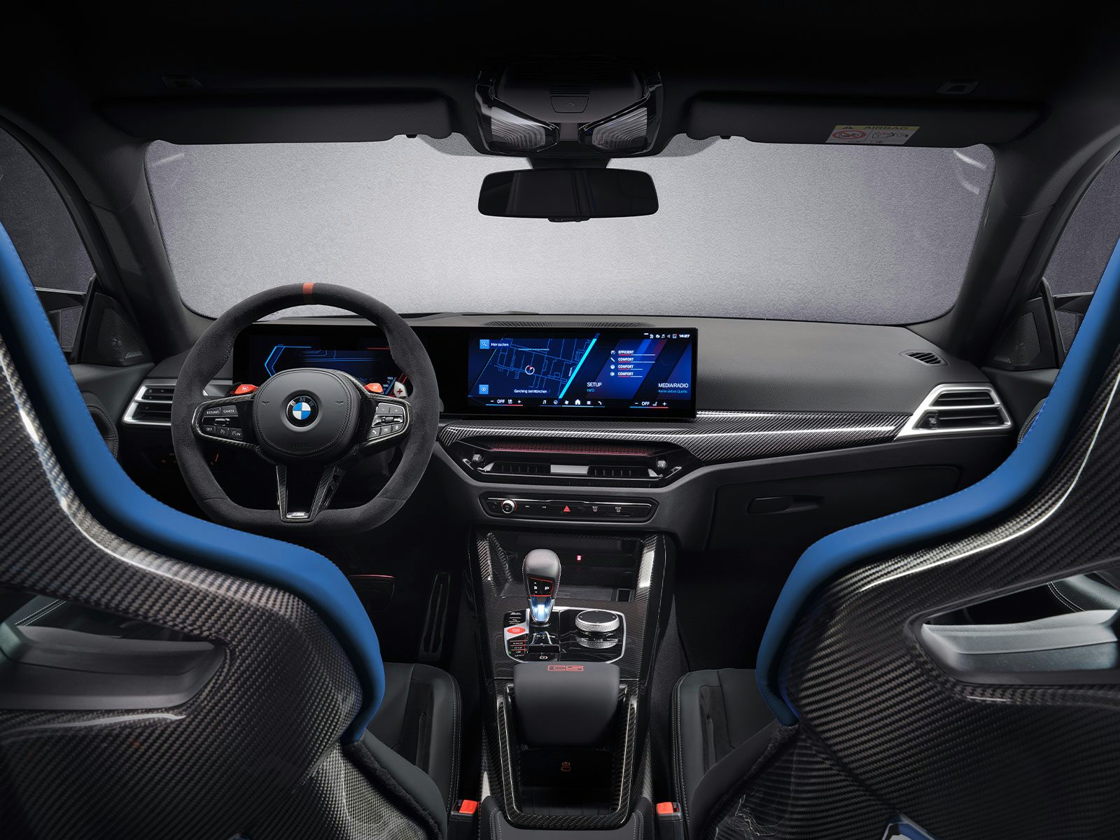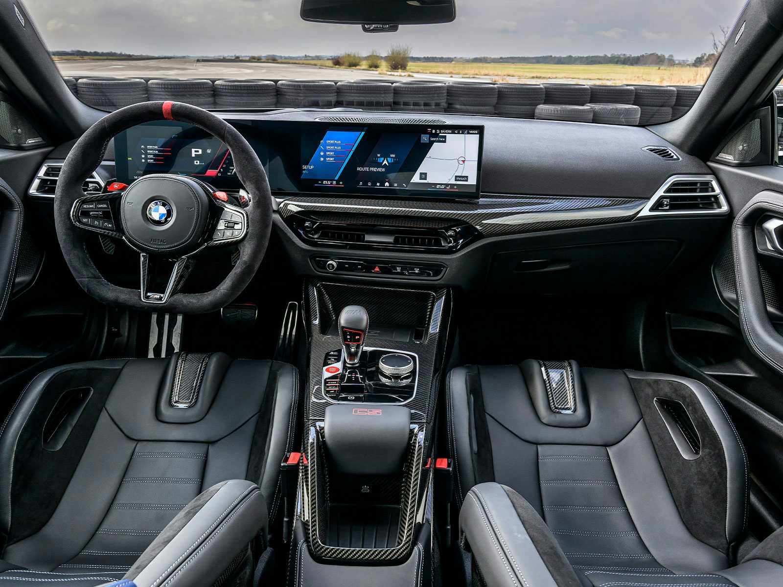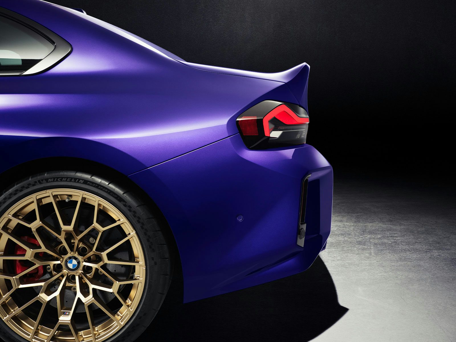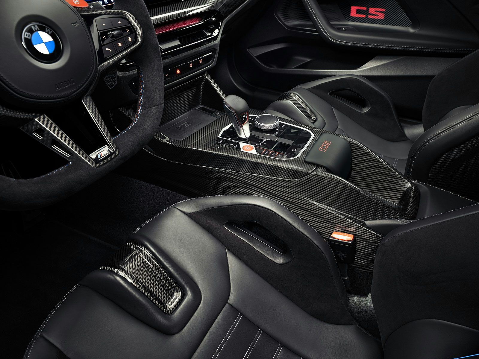 El coche incluye elementos exclusivos como un alerón trasero tipo ducktail, difusor y splitter en fibra de carbono (CFRP), y llantas forjadas M en acabado bronce mate. El coche está aligerado en 30 kg de la versión M “normal” y cuenta con detalles exclusivos, una carrocería más ancha o su spoiler trasero de “cola de pato”.