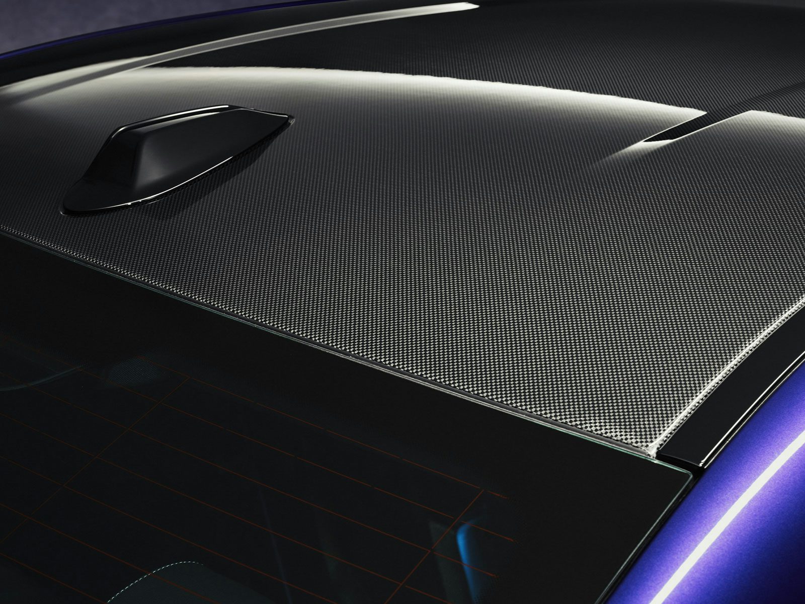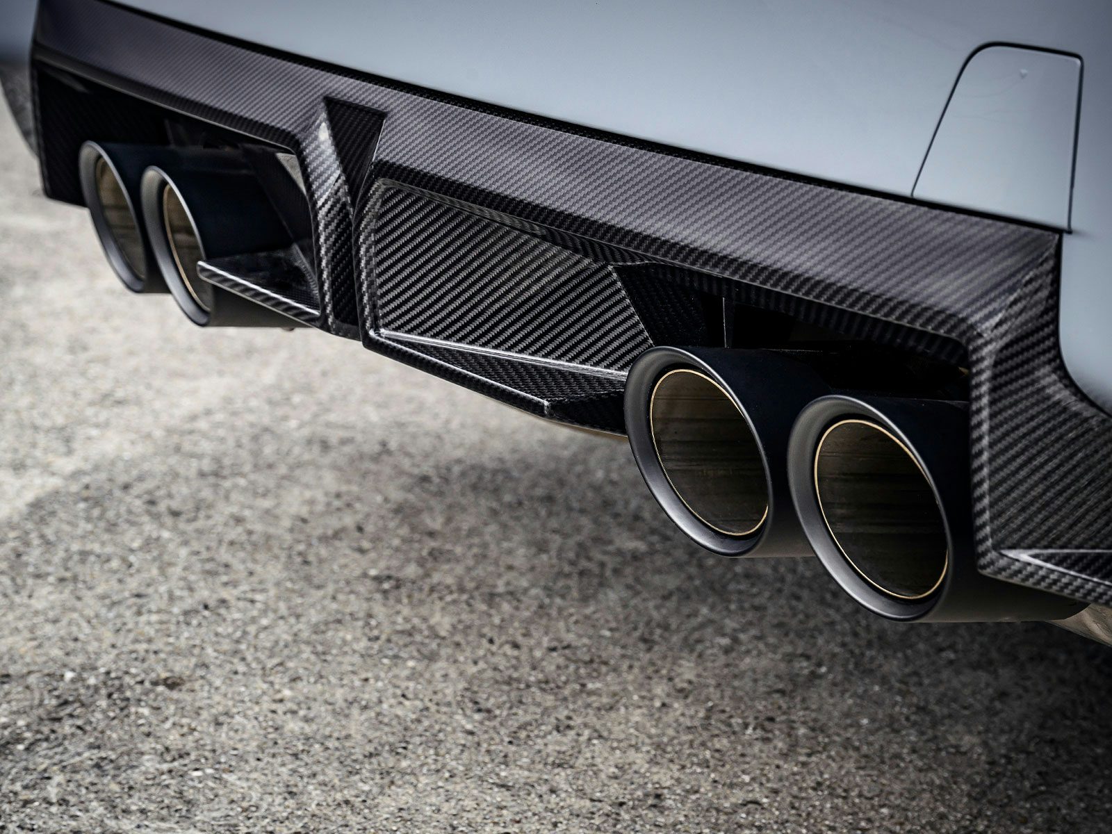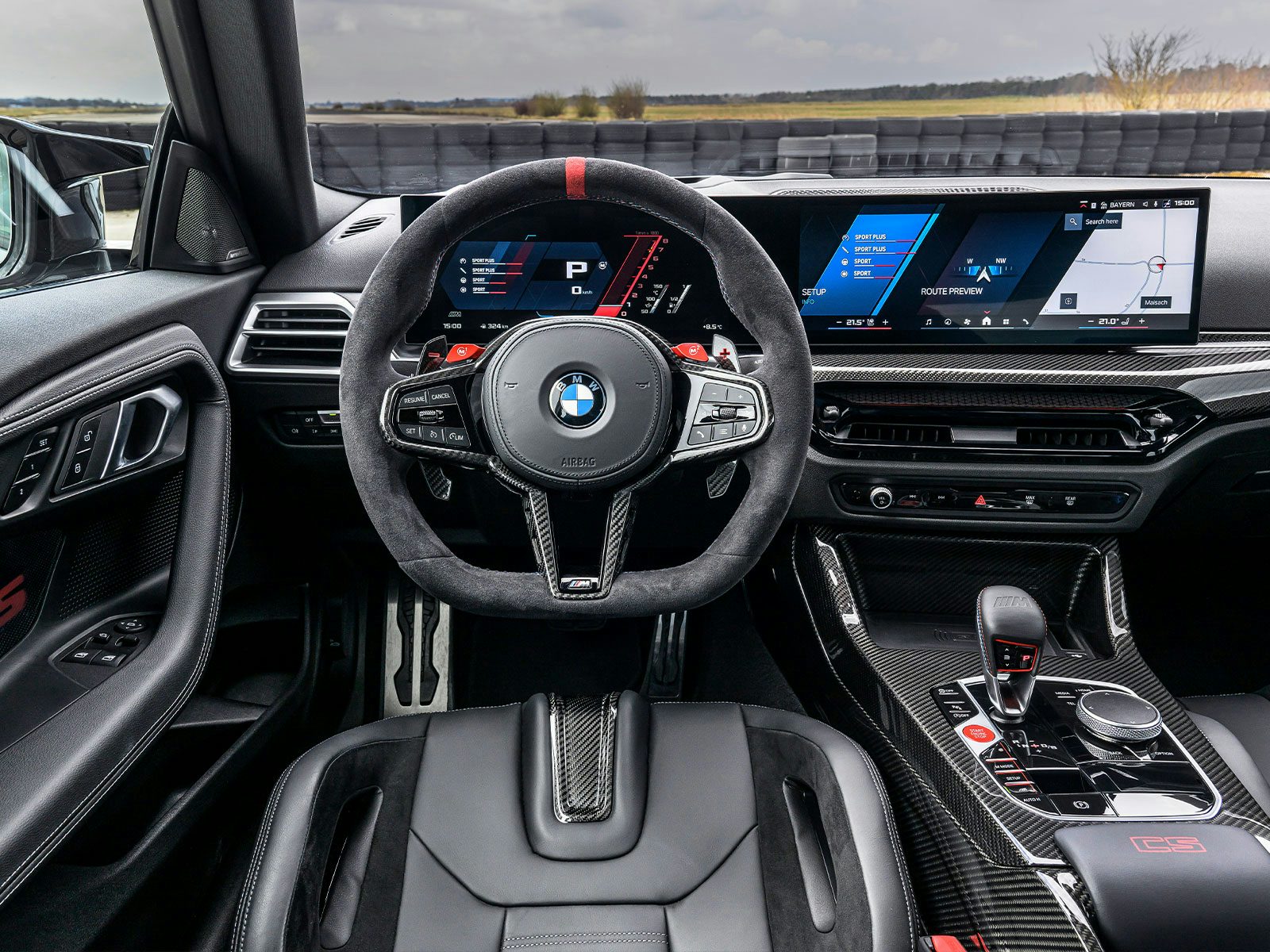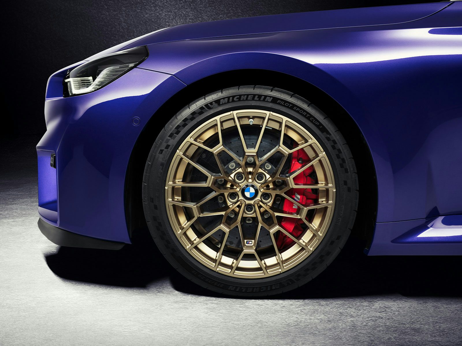 El coche incluye elementos exclusivos como un alerón trasero tipo ducktail, difusor y splitter en fibra de carbono (CFRP), y llantas forjadas M en acabado bronce mate. El coche está aligerado en 30 kg de la versión M “normal” y cuenta con detalles exclusivos, una carrocería más ancha o su spoiler trasero de “cola de pato”.