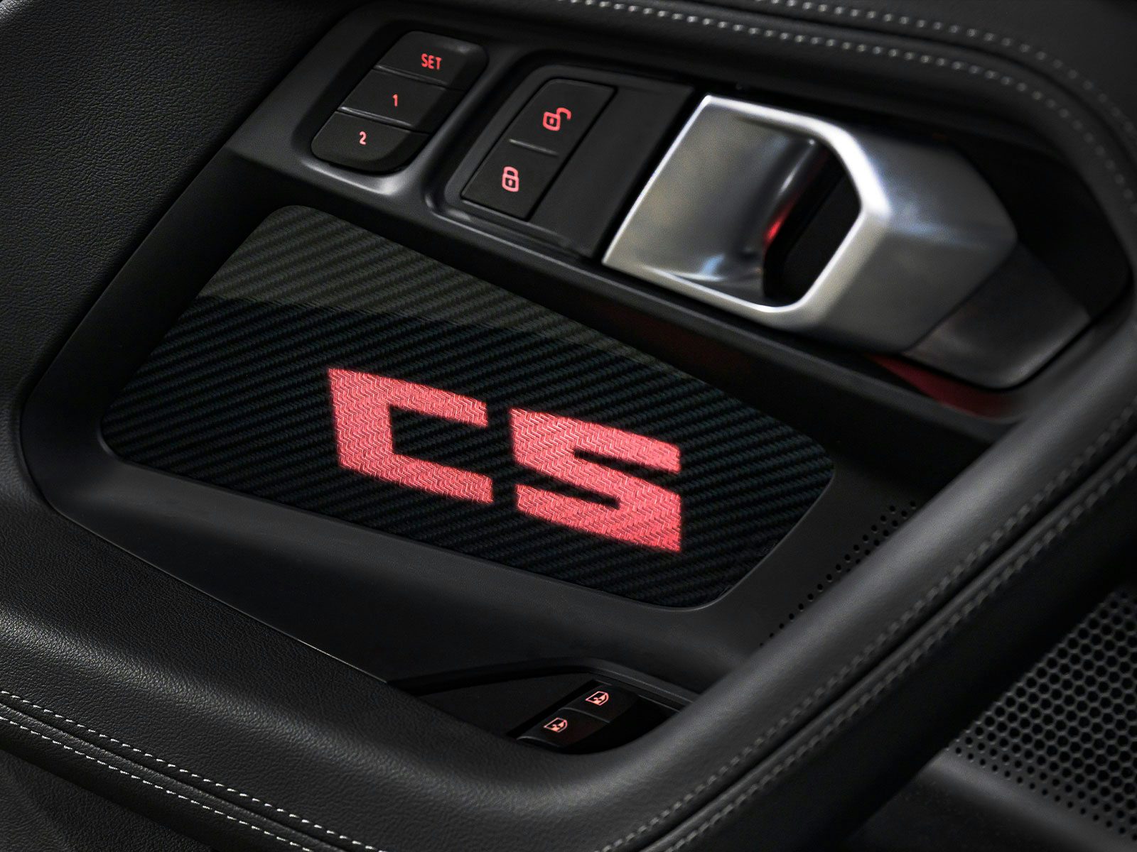 En el interior, aunque enfocado al circuito, no se ha escatimado. Incluye asientos tipo bucket con estructura de CFRP, tapizados en cuero Merino y con calefacción. El panel central y varios elementos del habitáculo también están fabricados en fibra de carbono.