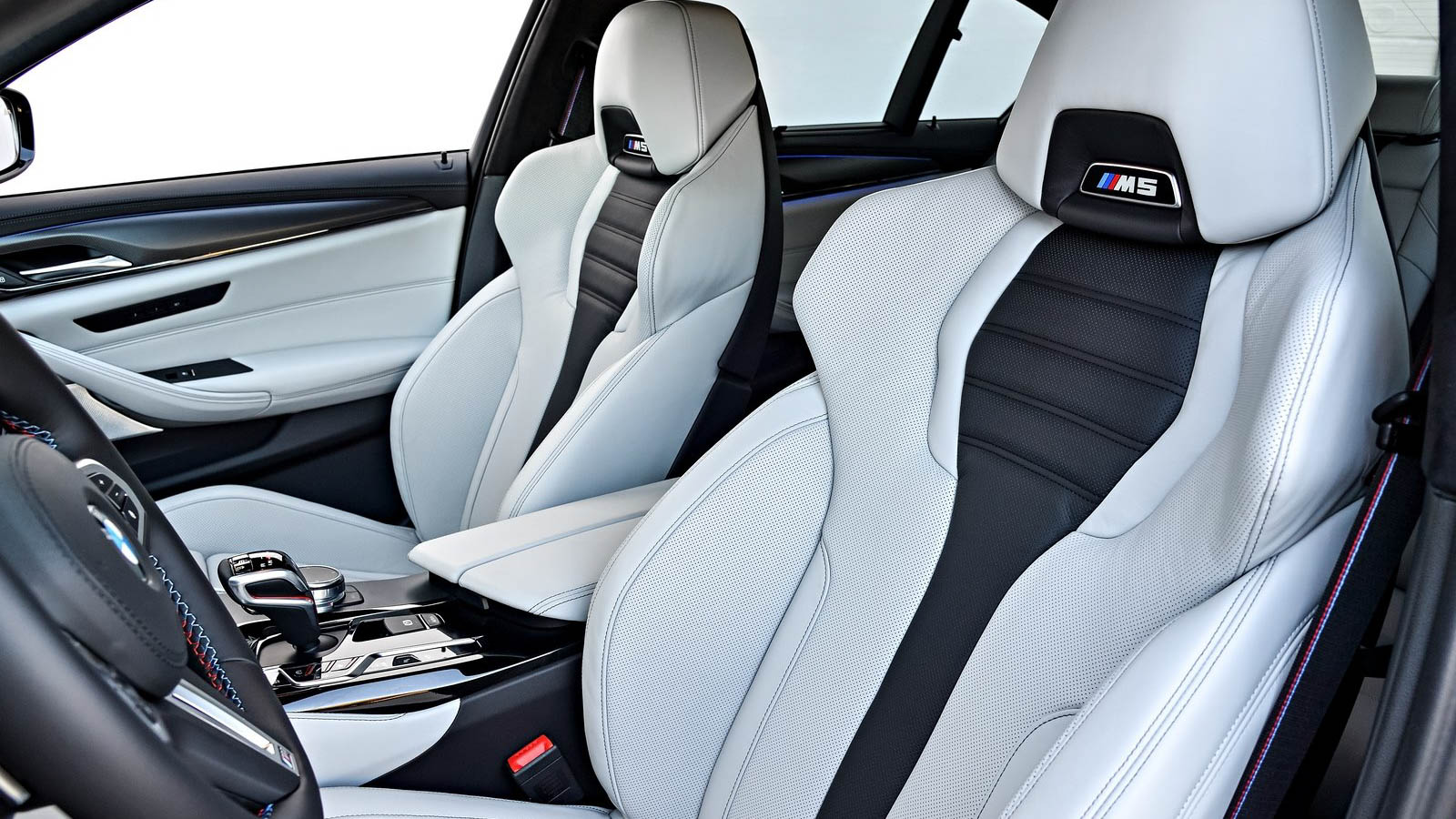 El equipamiento del BMW M5 es muy completo, como es lógico en un modelo que es tope de gama y buque insignia de su categoría. Entre su dotación de serie está un gran número de asistentes avanzados a la conducción como el asistente de mantenimiento y centrado en el carril, el asistente de conducción en autopista, la alerta de colisión con frenado de emergencia, etc. La versión CS incluye un paquete de elementos destinados a reducir el peso total del vehículo y mejorar así su comportamiento deportivo, con unas llantas específicas y un mayor uso de aleaciones ligeras y fibra de carbono en su carrocería y asientos.