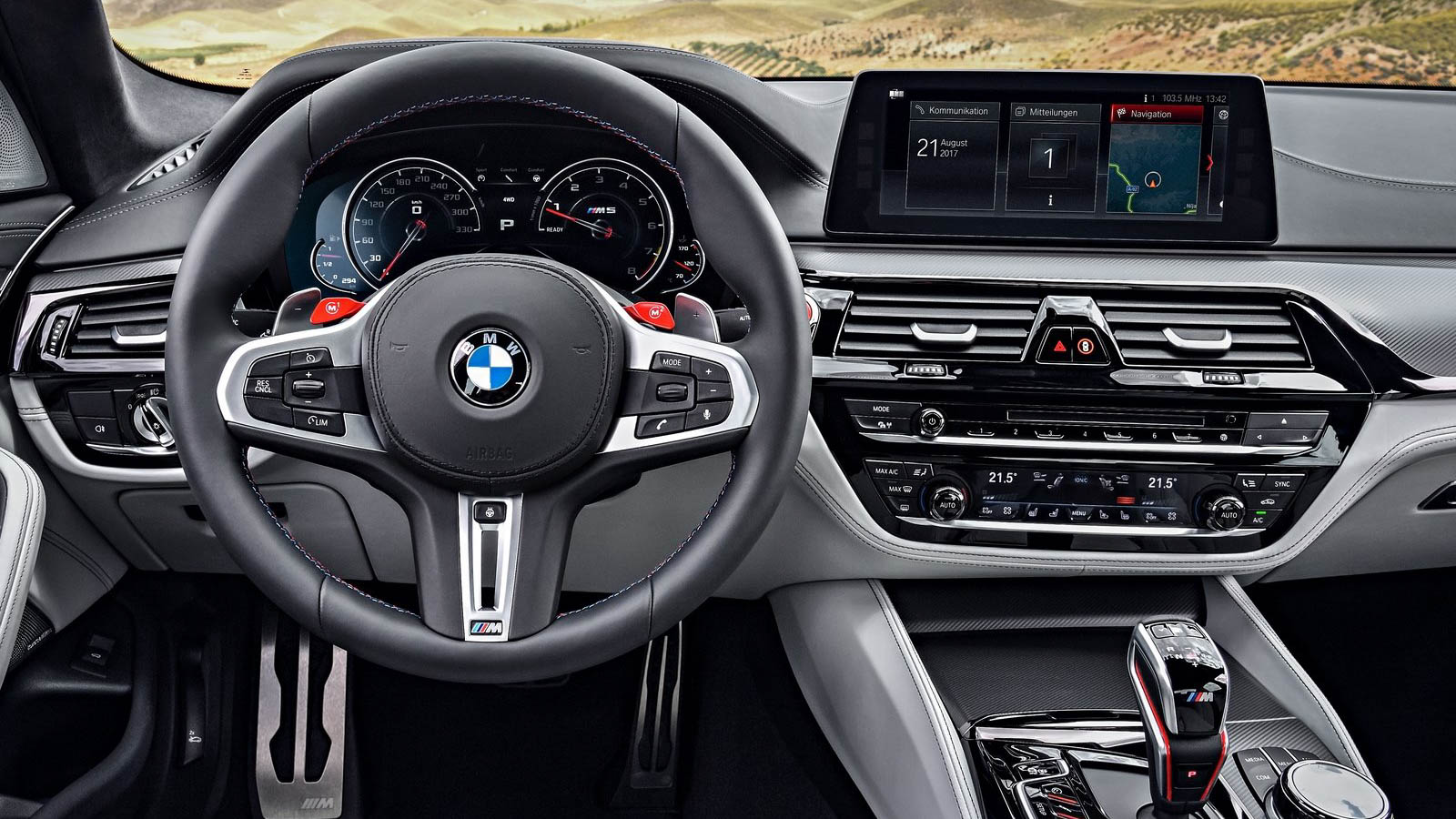 El BMW M5 equipa un moderno sistema de infoentretenimiento de última generación, compatible con Apple CarPlay y Android Auto inalámbricos, el asistente virtual de inteligencia artificial de BMW y las funciones de la aplicación de BMW Connect que permite conocer desde la geolocalización del vehículo hasta otorgar permisos para abrir y cerrar el coche sin llave, a través del teléfono. El cuadro de instrumentos es completamente digital y con varios formatos para mostrar la información.