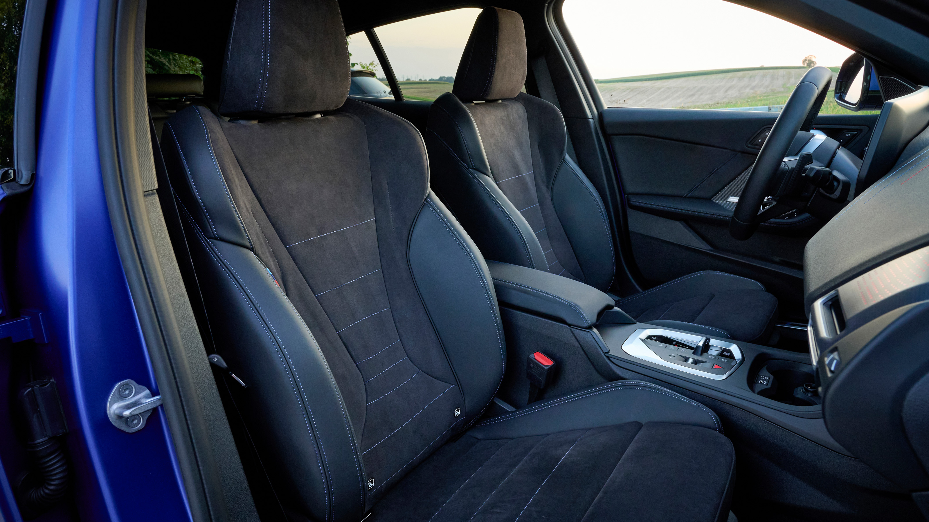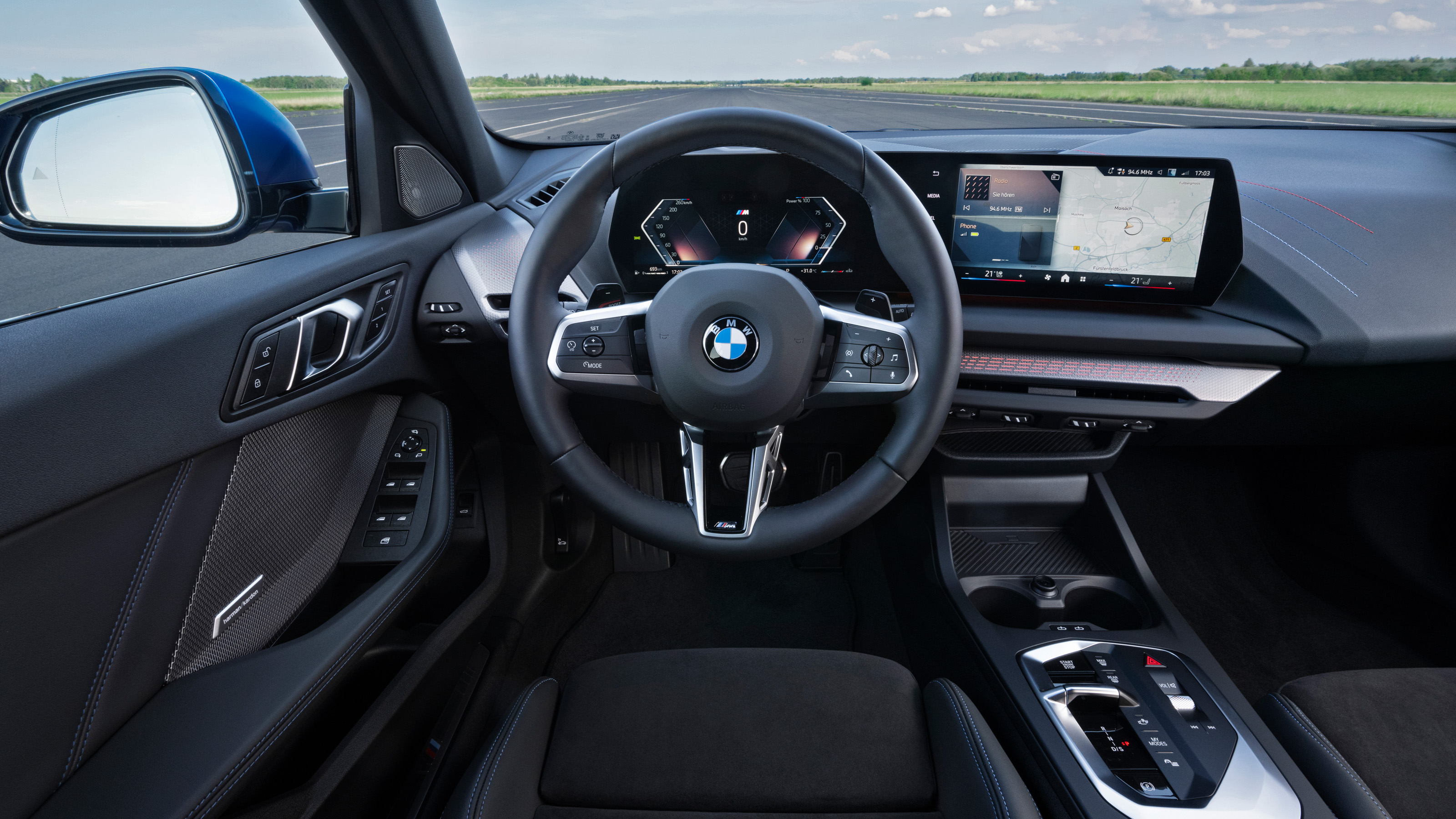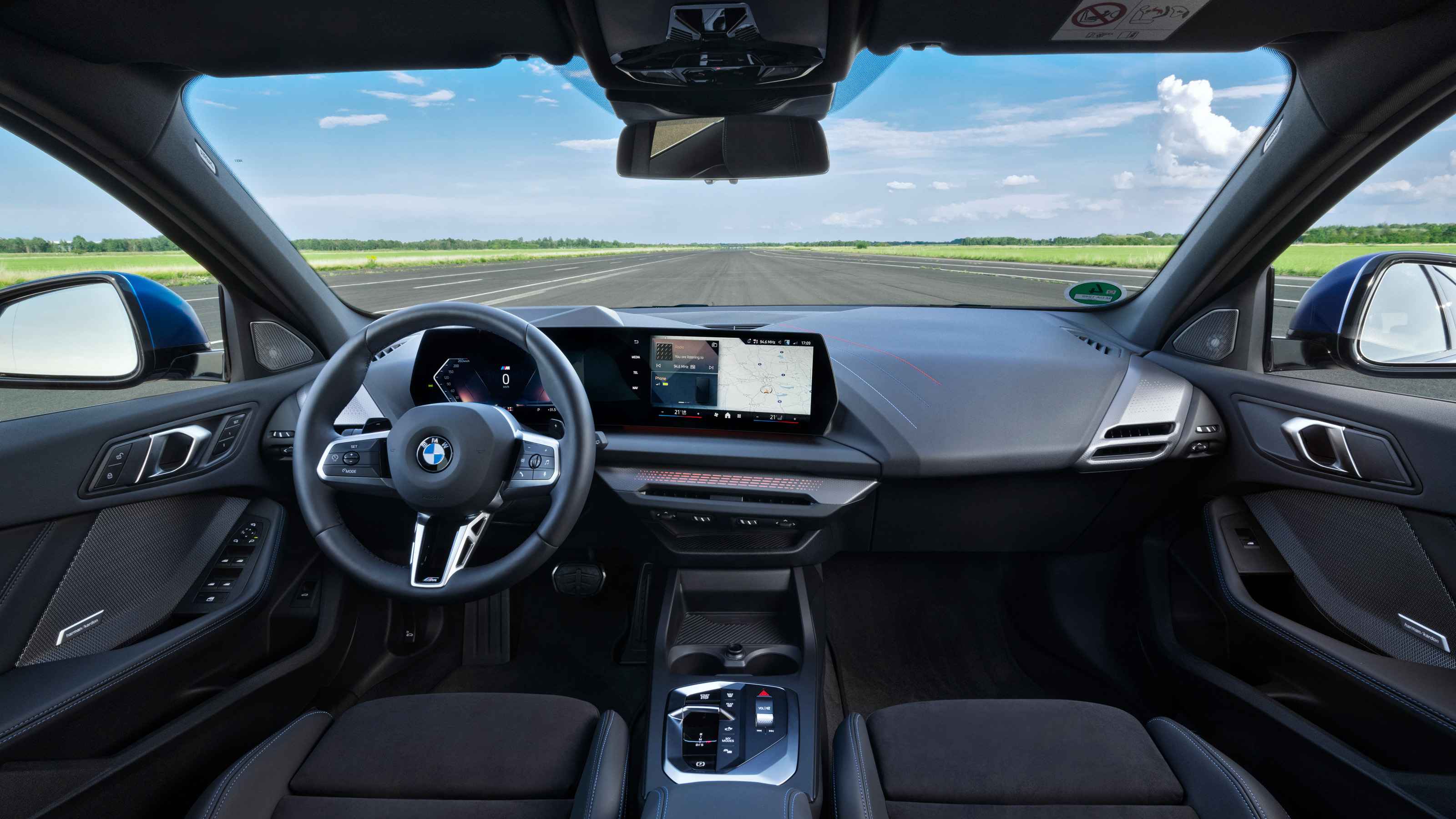El interior del BMW Serie 1 (2024) ha sido completamente renovado para ofrecer un entorno moderno y tecnológico, con un enfoque en la calidad y la conectividad. Destaca por su diseño minimalista, dominado por una pantalla curva que combina el cuadro de instrumentos digital de 10.25 pulgadas con la pantalla central de 10.7 pulgadas para el sistema de infoentretenimiento. Este diseño reduce el número de botones físicos, dando paso a controles digitales, aunque algunos usuarios pueden encontrar menos intuitiva la gestión del sistema tras la eliminación del controlador iDrive rotativo.