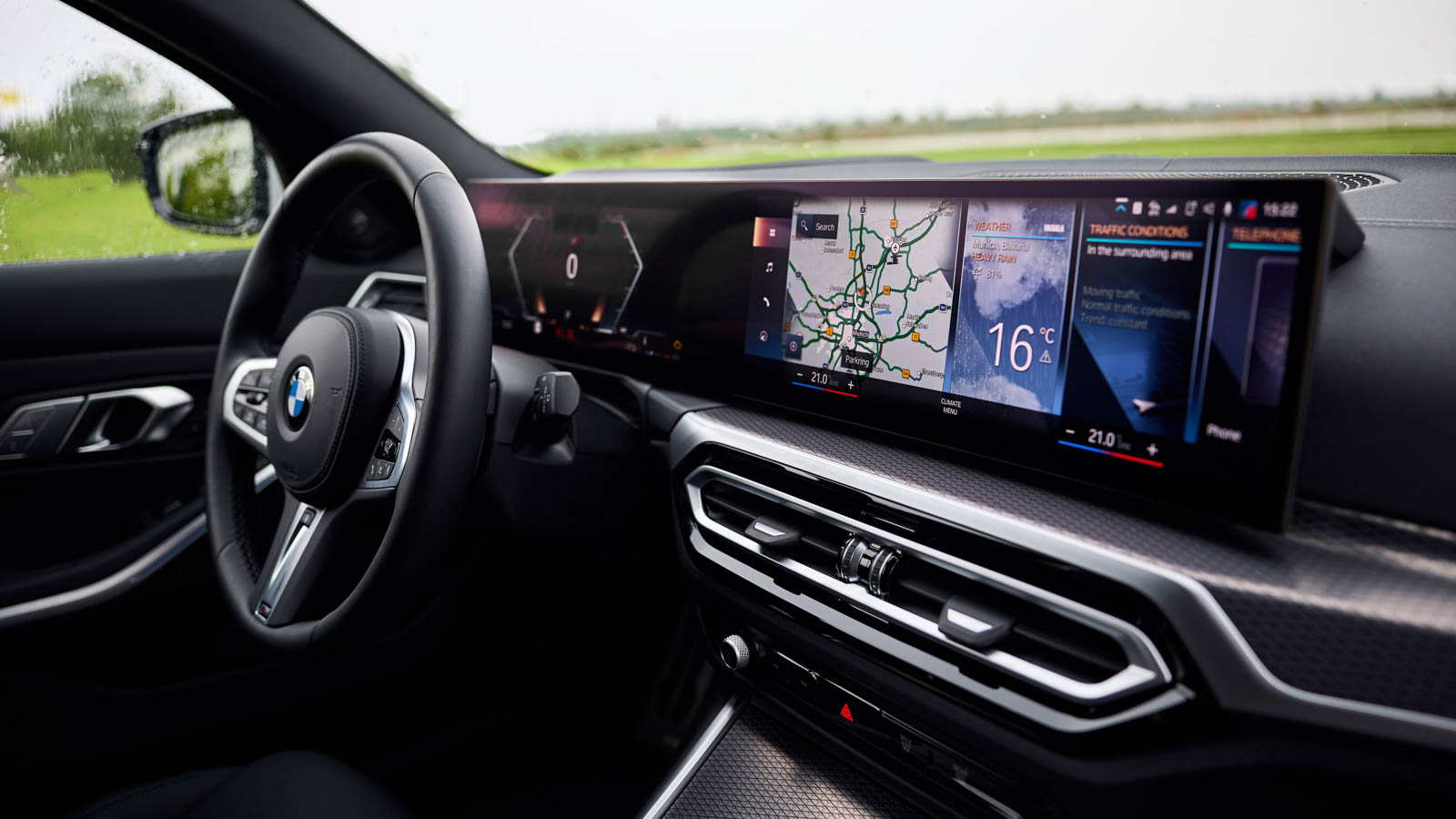 El equipamiento multimedia del BMW Serie 3 Touring es similar al de la berlina, del que tienes información aquí. Pero queremos remarcar que encontrarás el sistema operativo 7.0 de la marca, que cuenta con funciones digitales. Puede llegar a tener cuadro de mandos digital -de 12,3 pulgadas- en opción más la del salpicadero -de 10,25 pulgadas-, ambas personalizables. Es importante resaltar que puedes manejar la del salpicadero con mando satélite, de manera táctil, con los botones del volante o por voz.