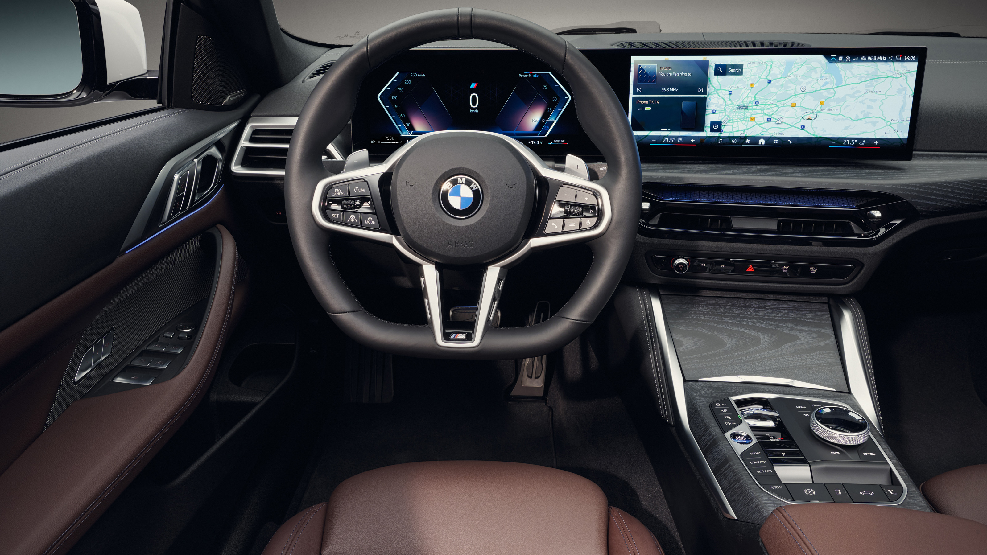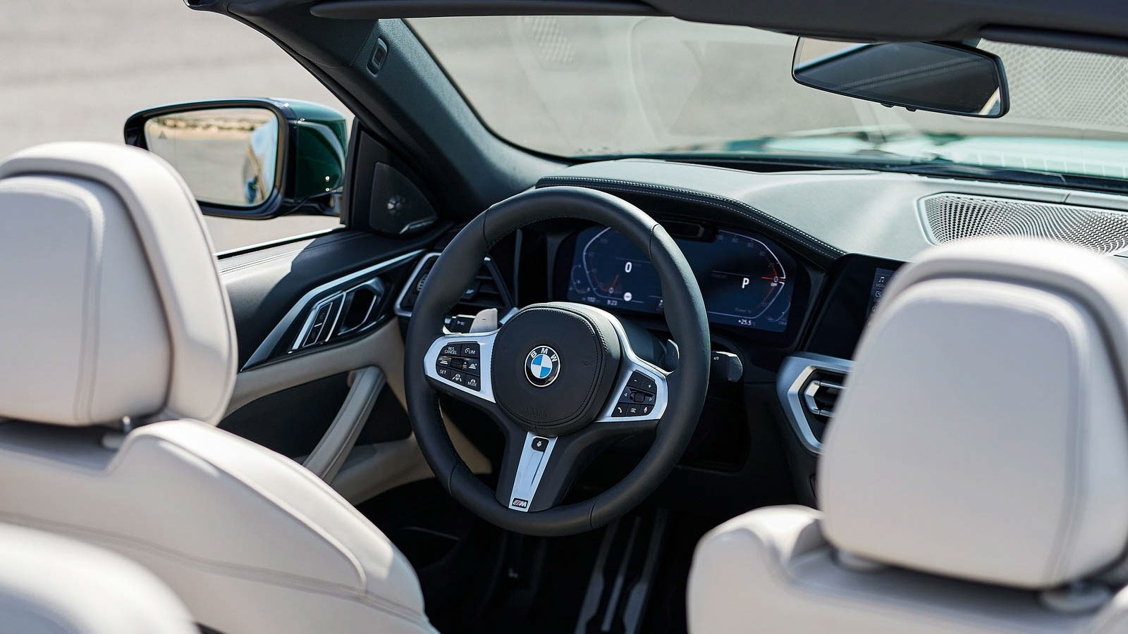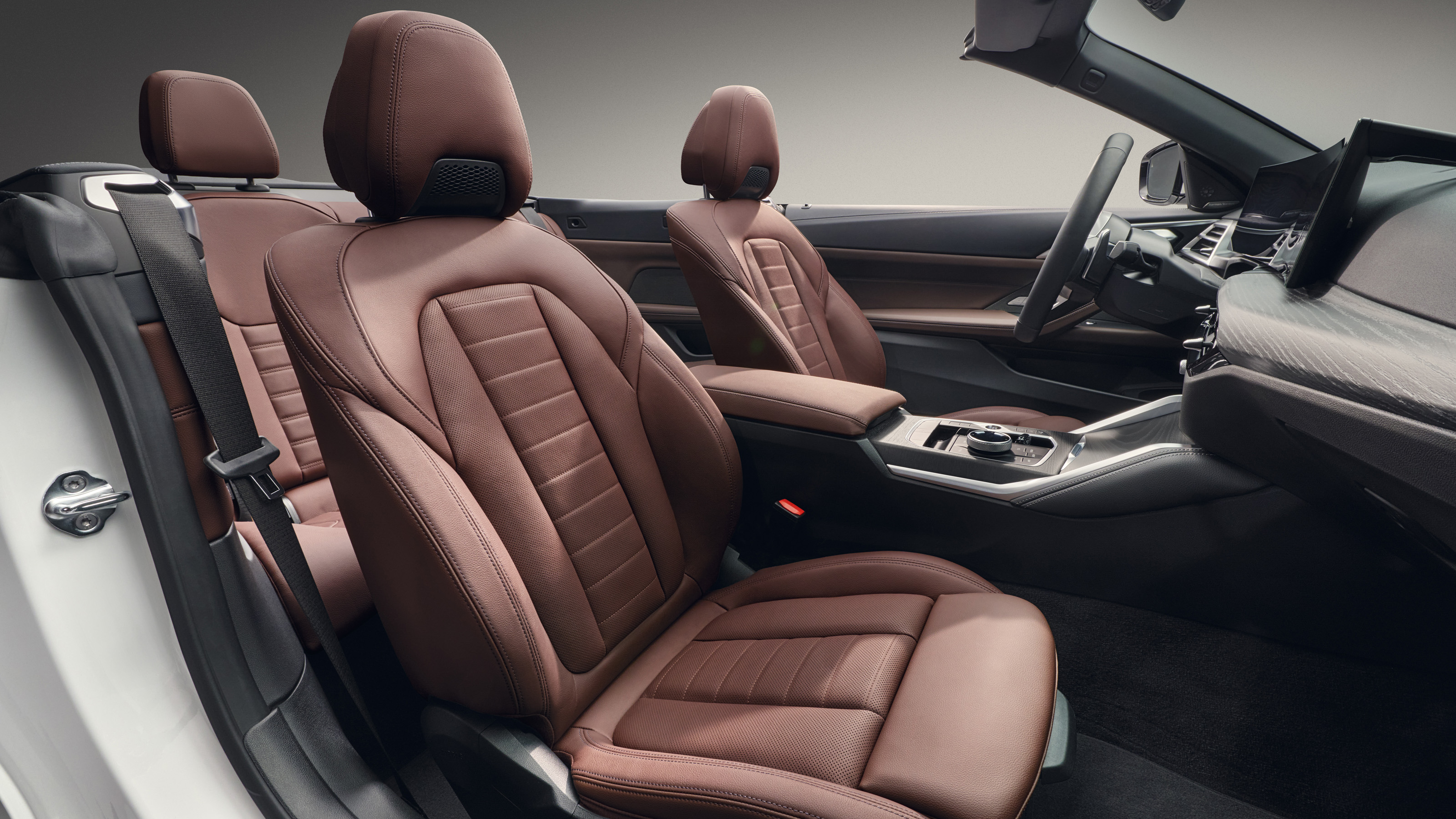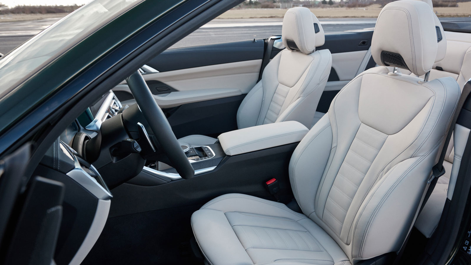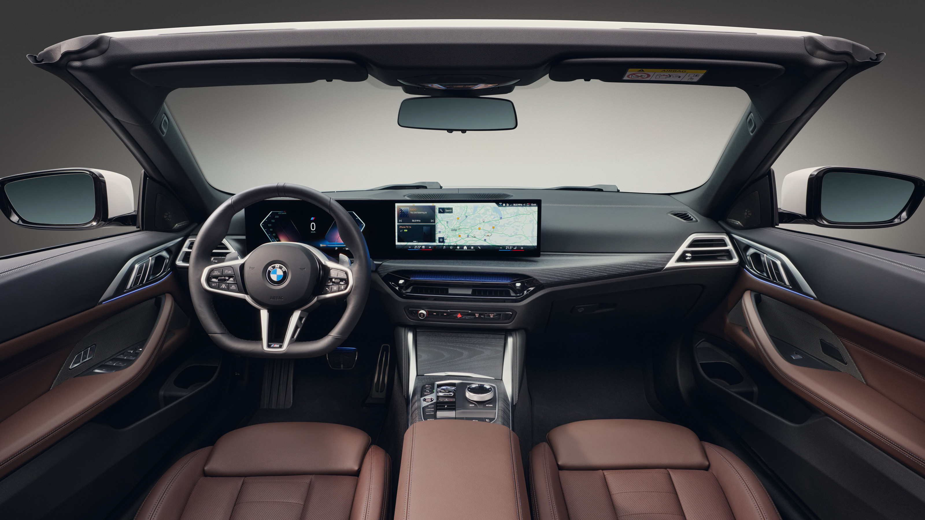 En términos de equipamiento, el Serie 4 Cabrio de 2024 recibe importantes actualizaciones. Se incluyen de serie asientos deportivos, ahora con opciones de tapicería de cuero Vernasca o el innovador material M Performtex, que debuta en este modelo. También se ofrece una mayor personalización con nuevas molduras interiores en madera noble y fibra de carbono. La iluminación ambiental ajustable, así como el climatizador digital de tres zonas y los nuevos volantes con levas de cambio de serie son otras de las novedades,