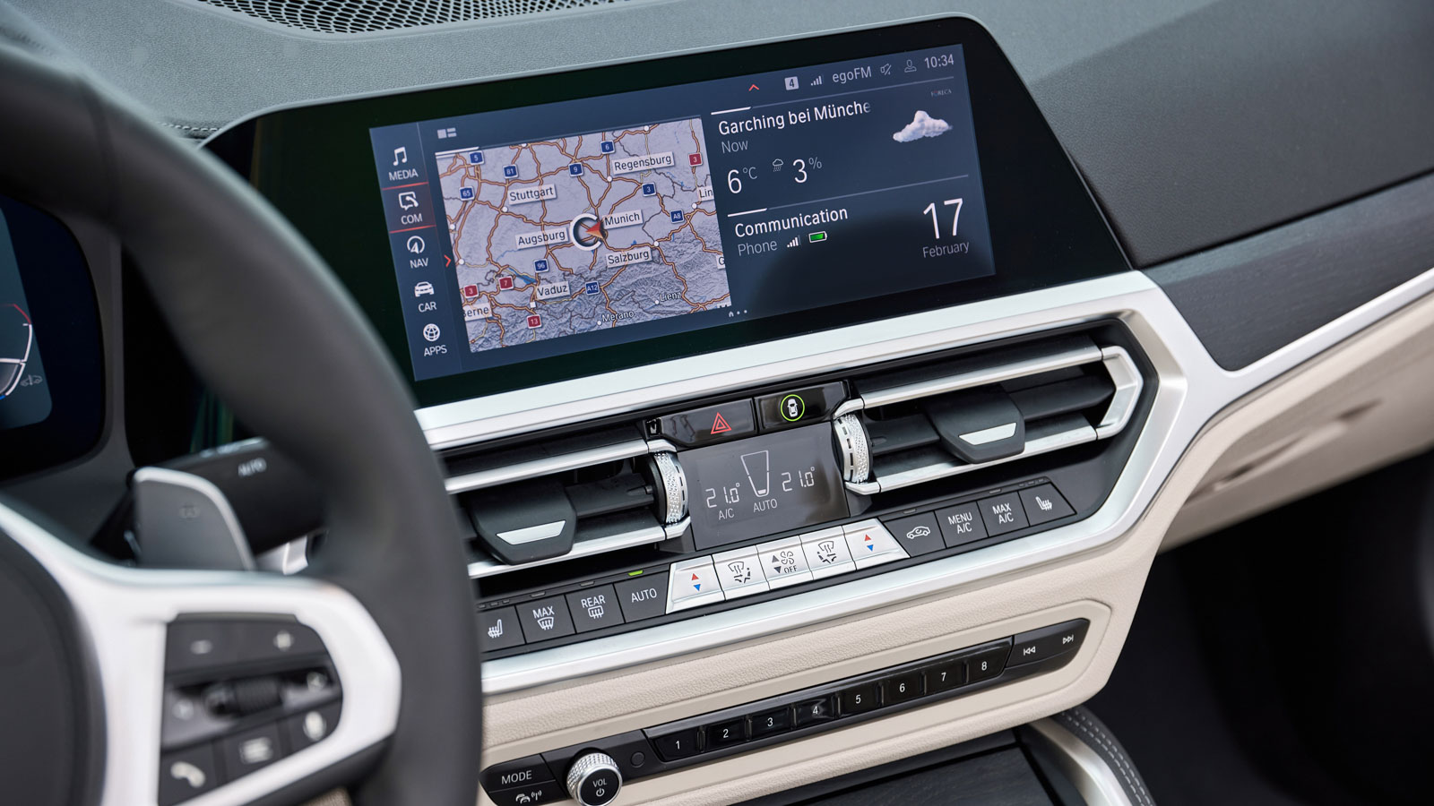 El BMW Serie 4 Cabrio monta de serie “Live Cockpit Plus” con el sistema operativo BMW 7.0 como, por ejemplo, el BMW Z4. Tiene cuadro de mandos analógico con pantalla central a color de 5,1 pulgadas. En el salpicadero encontramos una pantalla de 8,8 pulgadas con el sistema multimedia y de navegación, dos puertos USB y acceso Bluetooth y WiFi. Tiene tarjeta SIM incorporada con conectividad 4G LTE y también es de serie el “Connected Package Professional” que permite, entre otros, el uso del asistente personal inteligente BMW (Intelligent Personal Assistant).