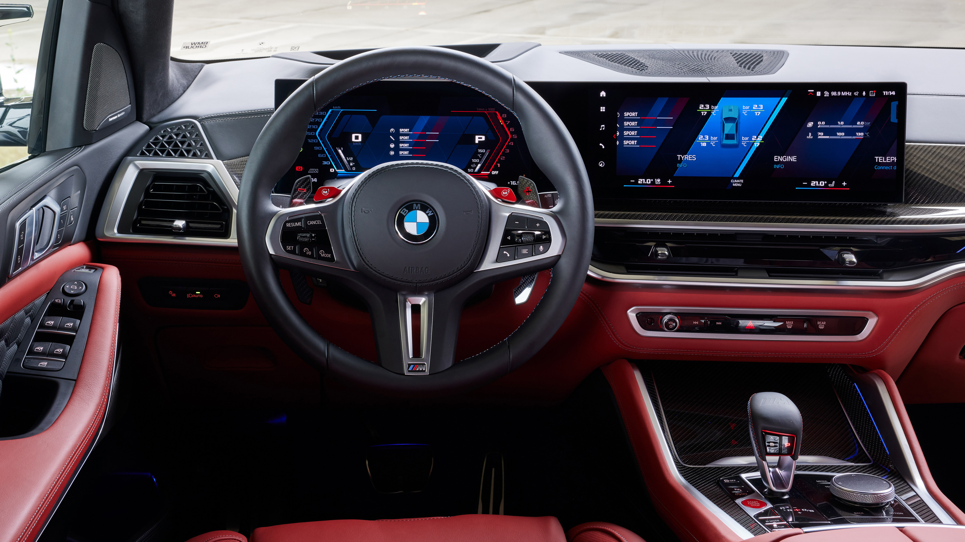 Al tratarse de la versión deportiva del X5, BMW ha añadido un menú específico, habitual en las versiones M de la marca, que permite configurar la dureza de la dirección, cómo de rápido reacciona la caja de cambios y la respuesta de los frenos, entre otras cosas. El sistema multimedia te deja guardar tus configuraciones favoritas y acceder a ellas desde unos botones rojos ubicados en el volante.