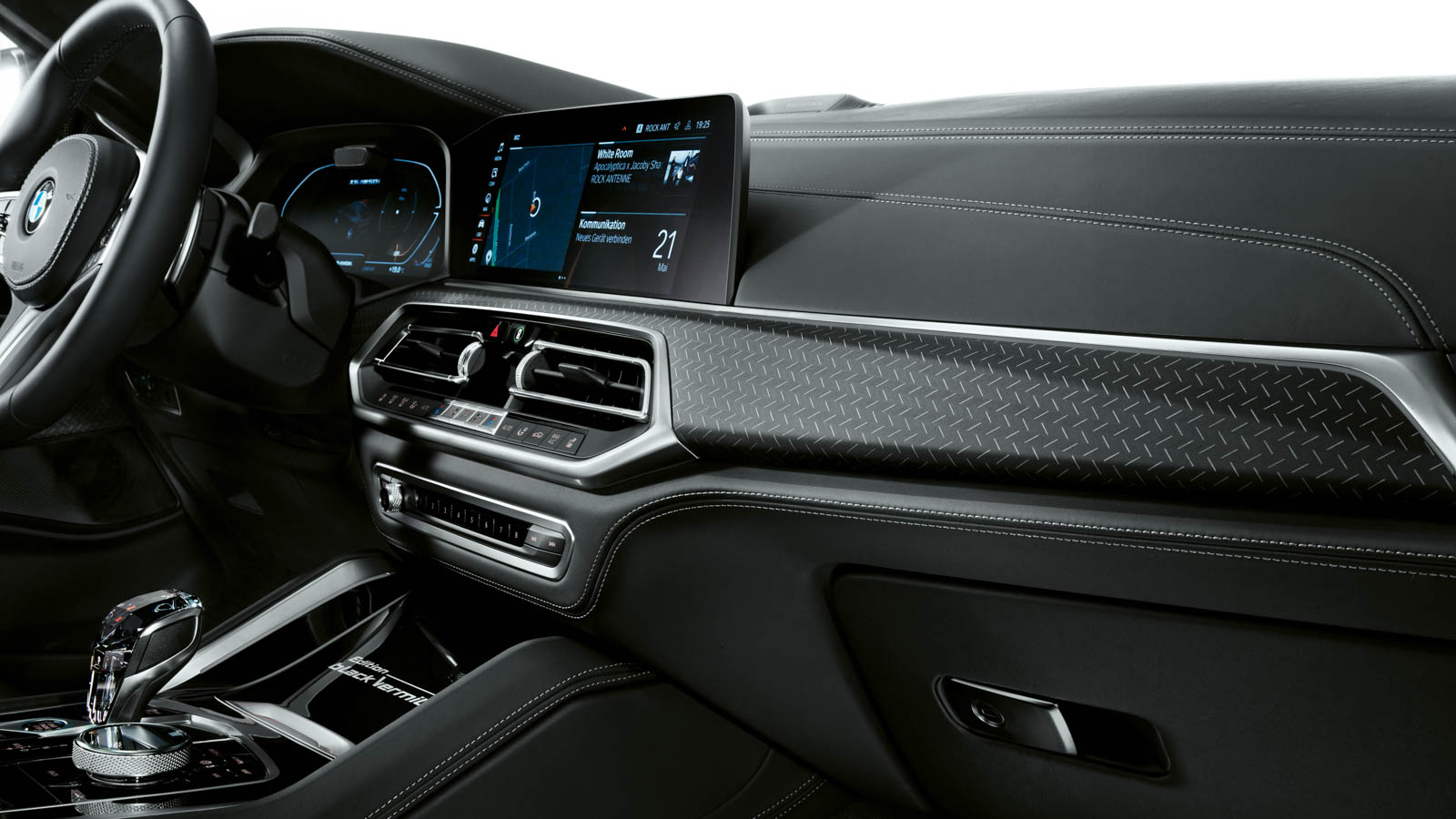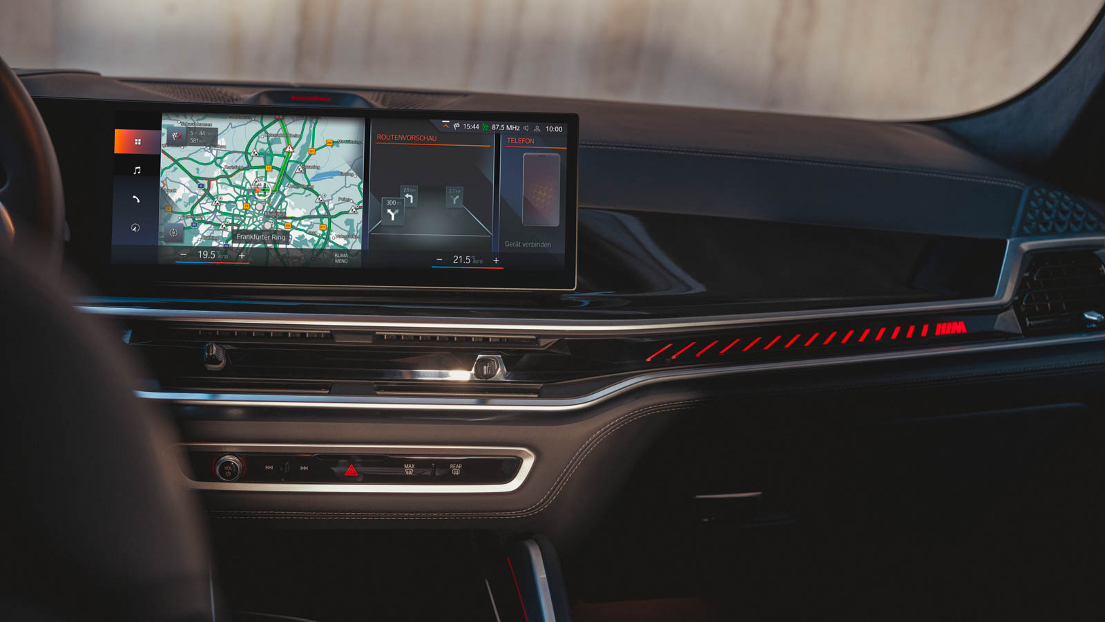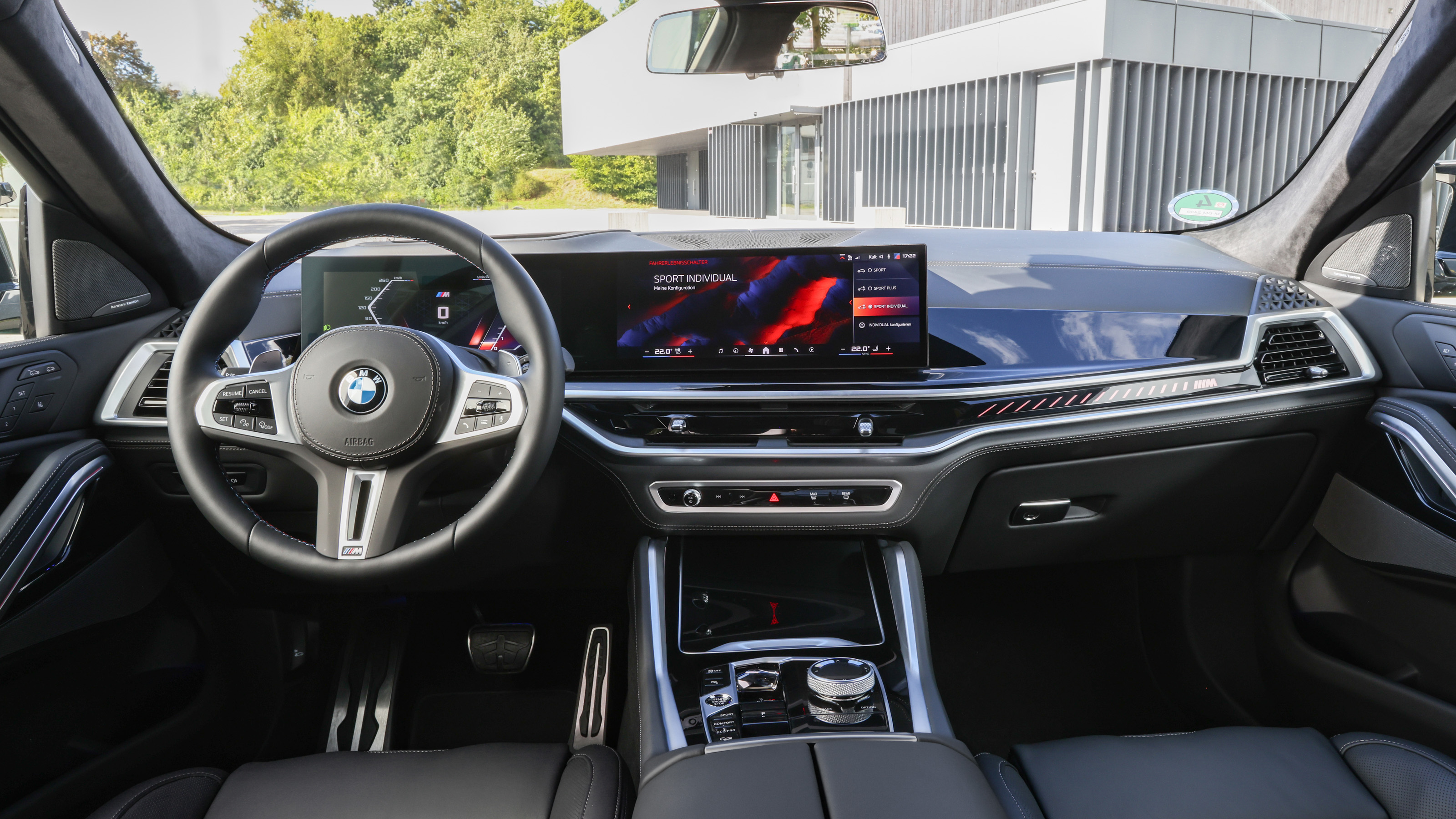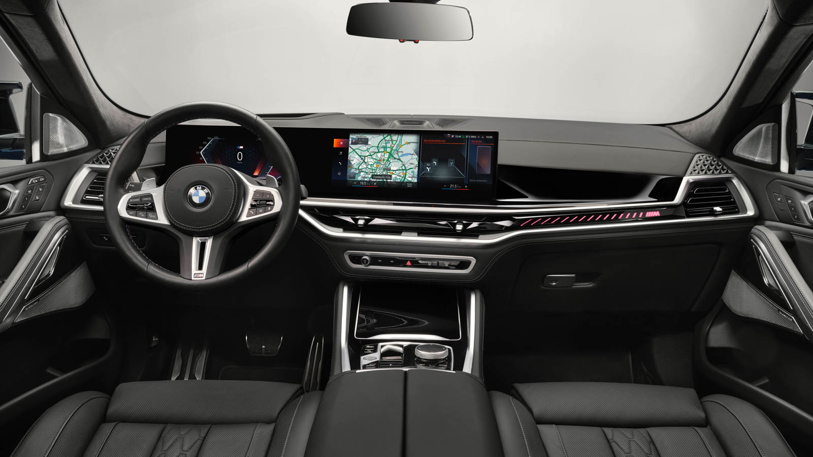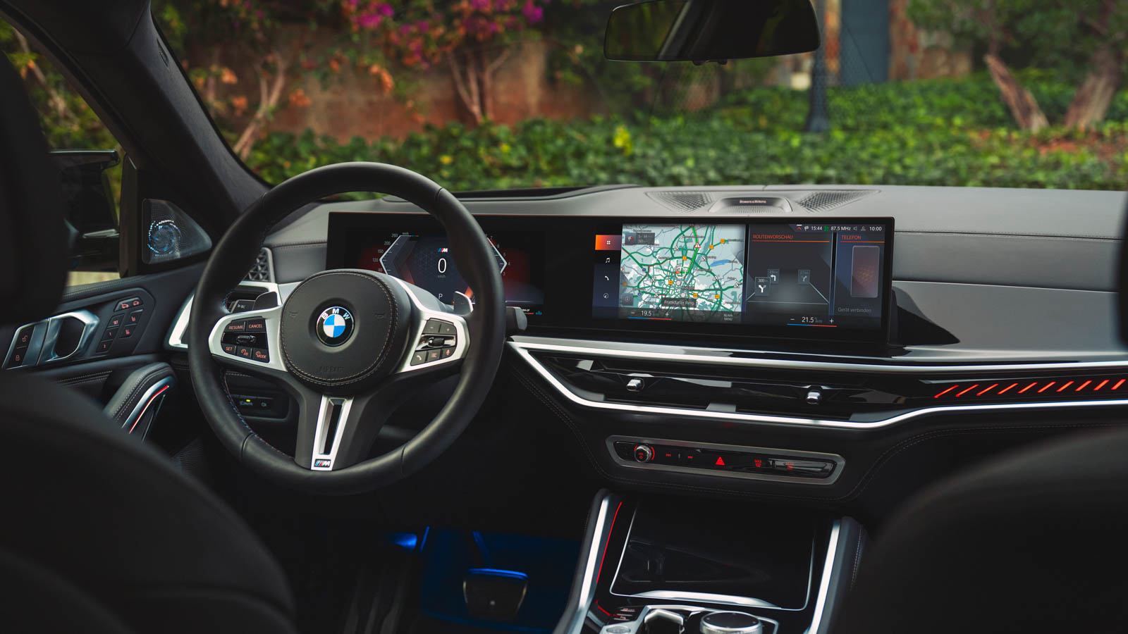 Siguiendo la corriente de diseño de una larga pantalla horizontal que une el cuadro de relojes y la pantalla multimedia del salpicadero propiamente dicha, en el BMW X6 esta se sigue con dos pantallas unidas en forma curva. La de la instrumentación tiene 12,3 pulgadas, mientras que la de multimedia sube a 14,9. Son dos pantallas distintas pero tiene la apariencia de una sola.