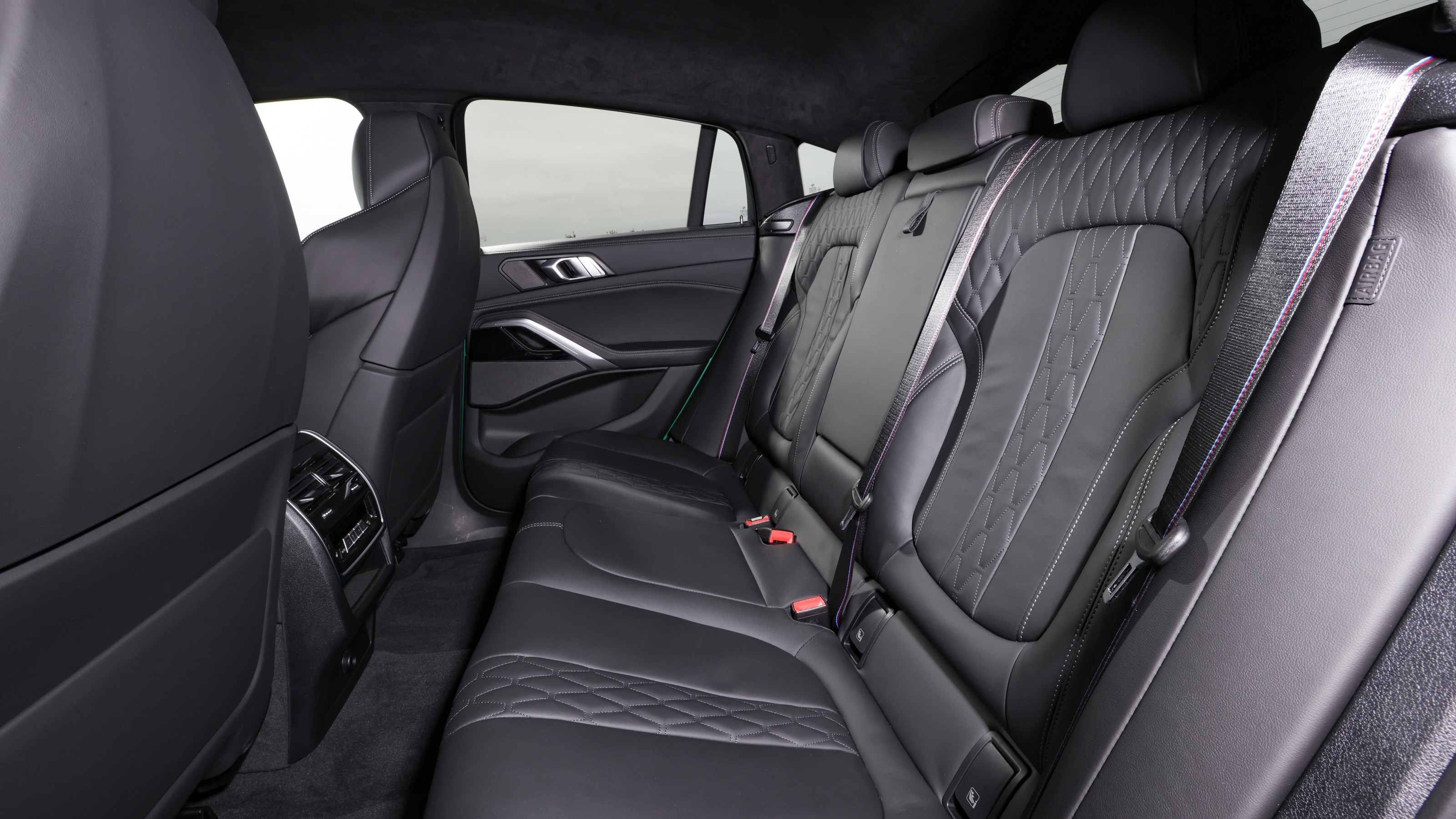 No vamos a decir que viajes con una sensación de interior angosto, pero sí que la forma y estilo de su carrocería penalizan la habitabilidad. Al comparar las medidas del BMW X6 con las de sus rivales principales, notamos que el X6 es uno de los vehículos con más espacio longitudinal en ambas filas de asientos.