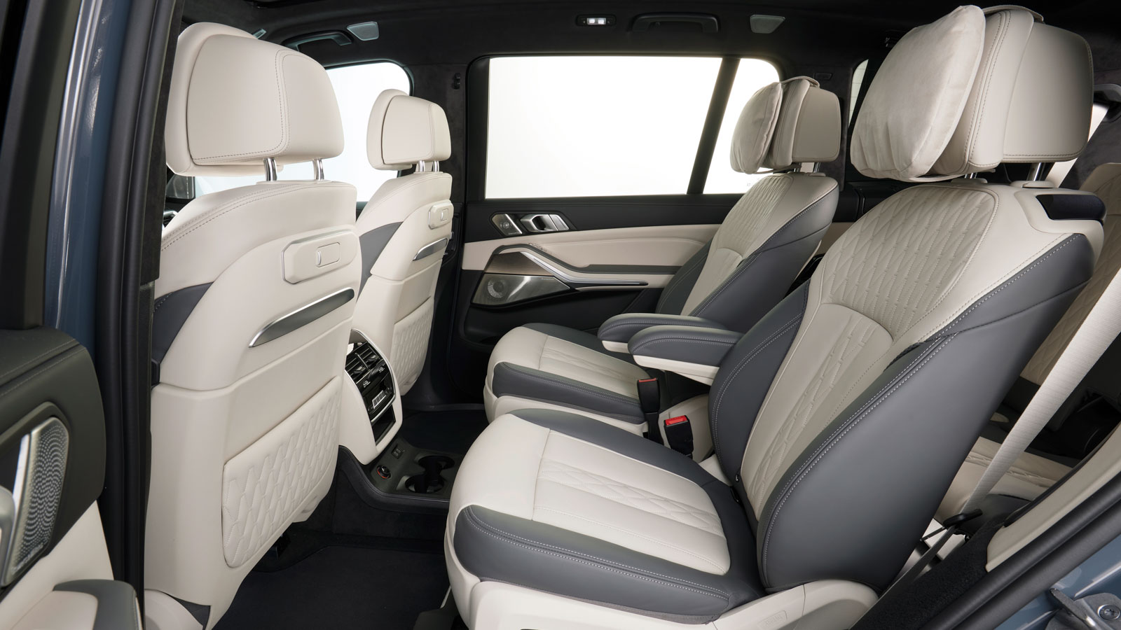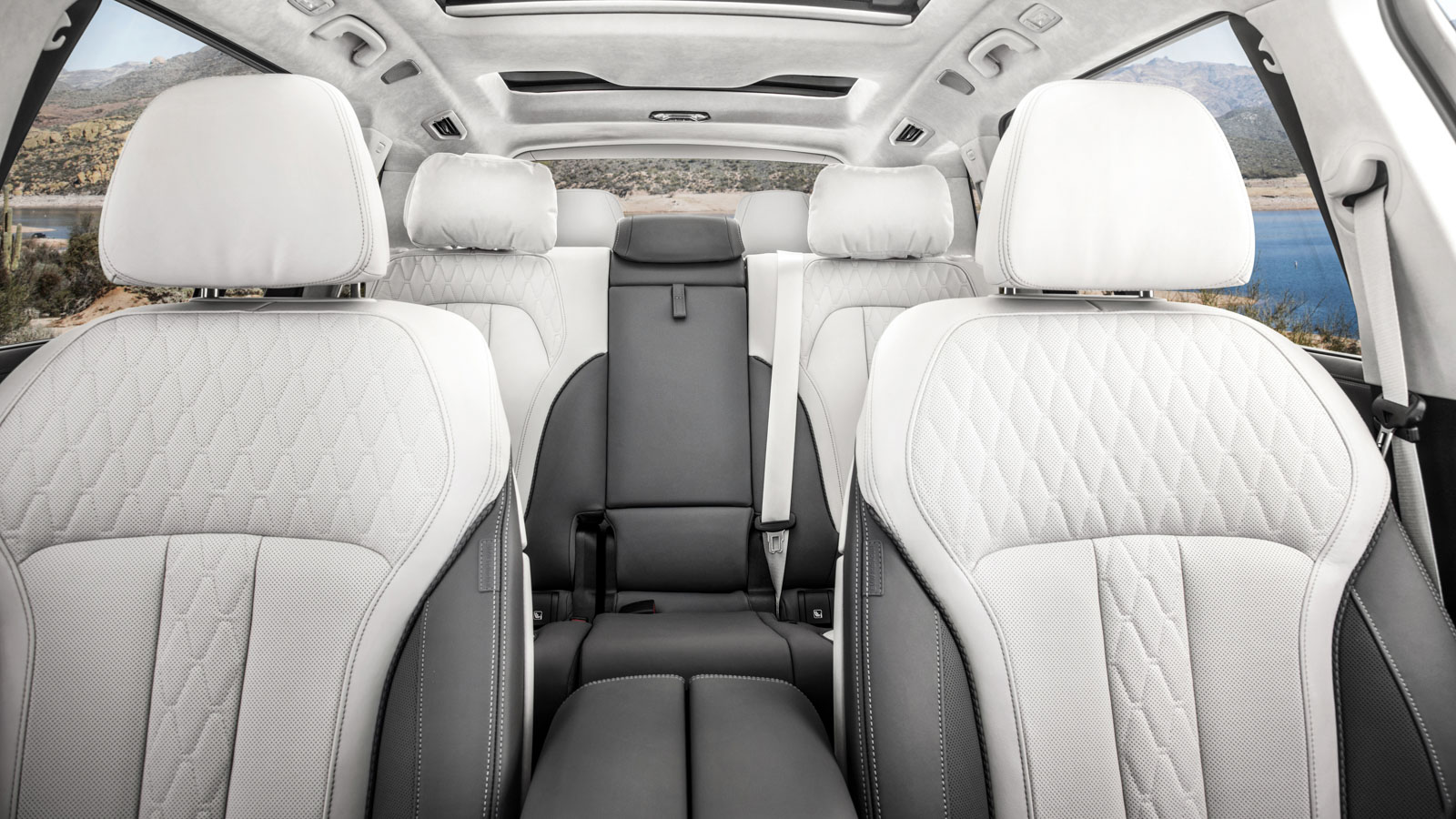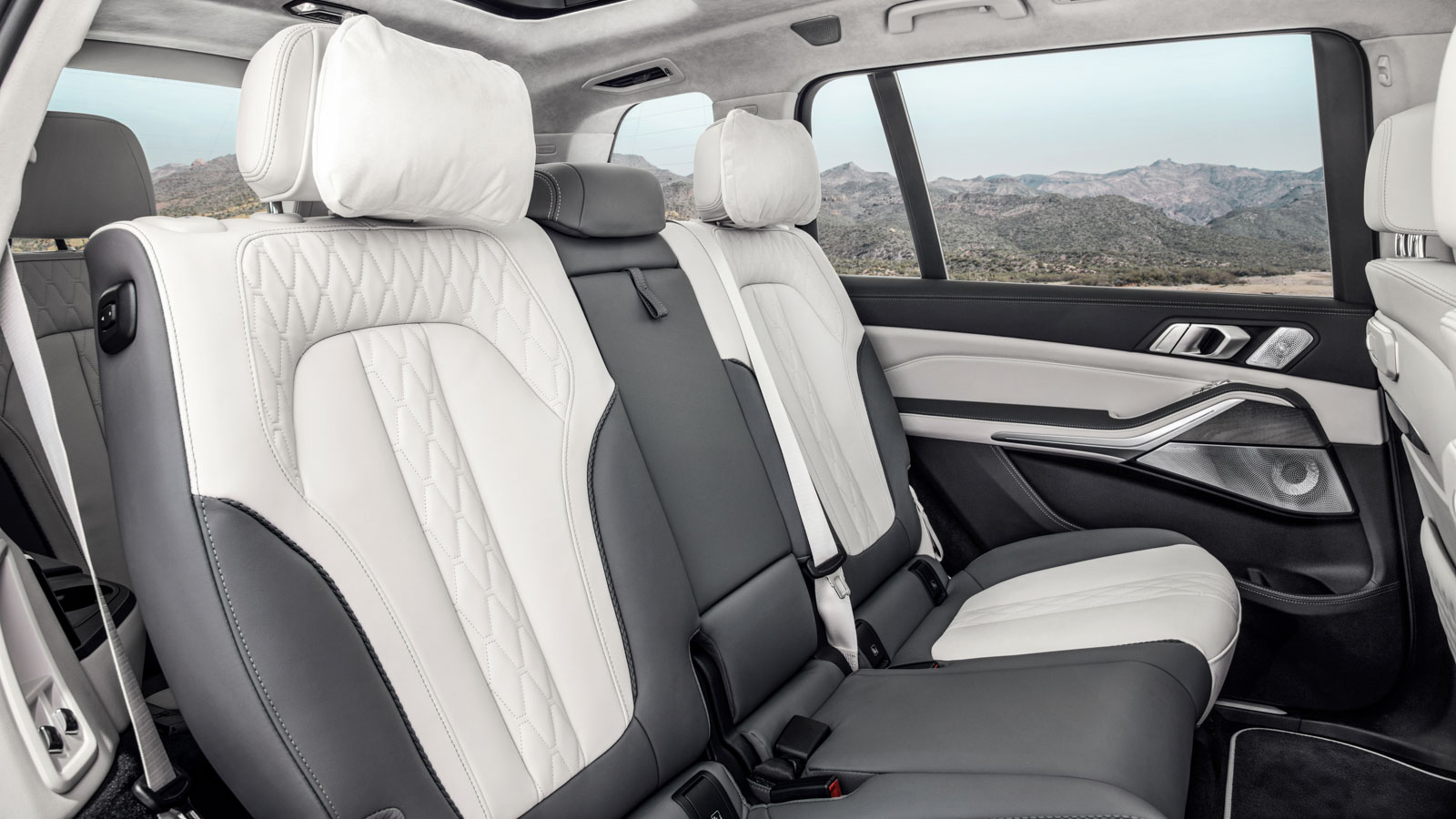 El BMW X7 tiene un interior espacioso y confortable. Cinco pasajeros viajan con mucho confort y también los dos pasajeros adicionales de las plazas traseras gozan de más espacio del habitual en este tipo de modelos. El problema es el acceso a esta tercera fila de asientos. Aunque la puerta es amplia y los asientos de la segunda fila tienen un mecanismo eléctrico para abatirse, su maniobra es lenta y tampoco dejan un espacio suficientemente cómodo. Los asientos son muy confortables y cuentan con varios reglajes y climatización. La calidad de acabados y ajustes es buena y existen muchas opciones de personalización para hacerse con un BMW X7 a la medida y gustos del cliente.