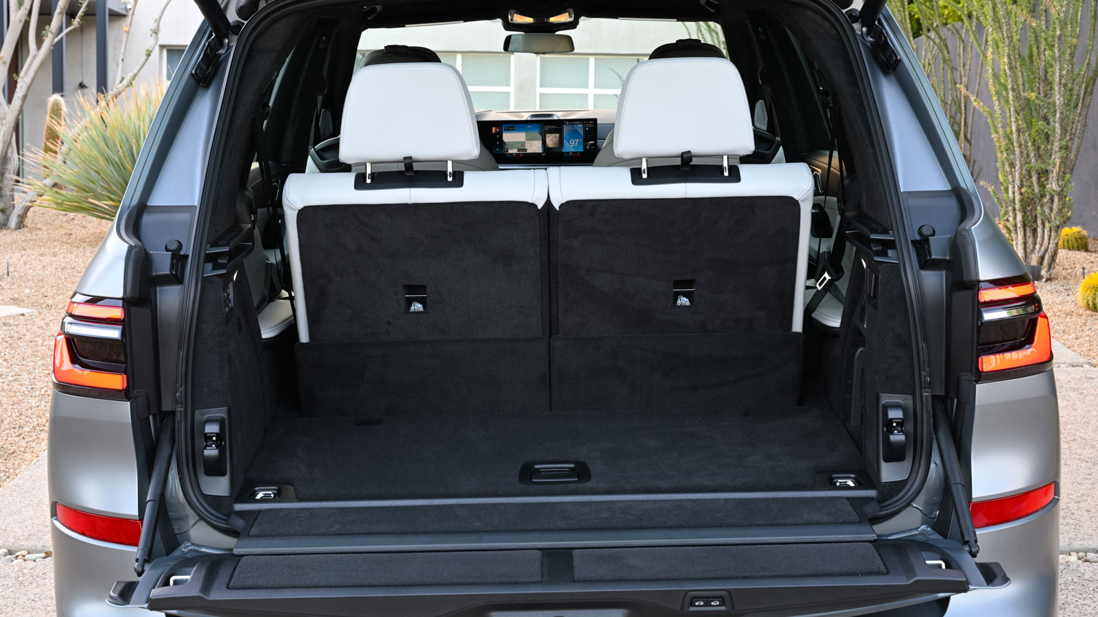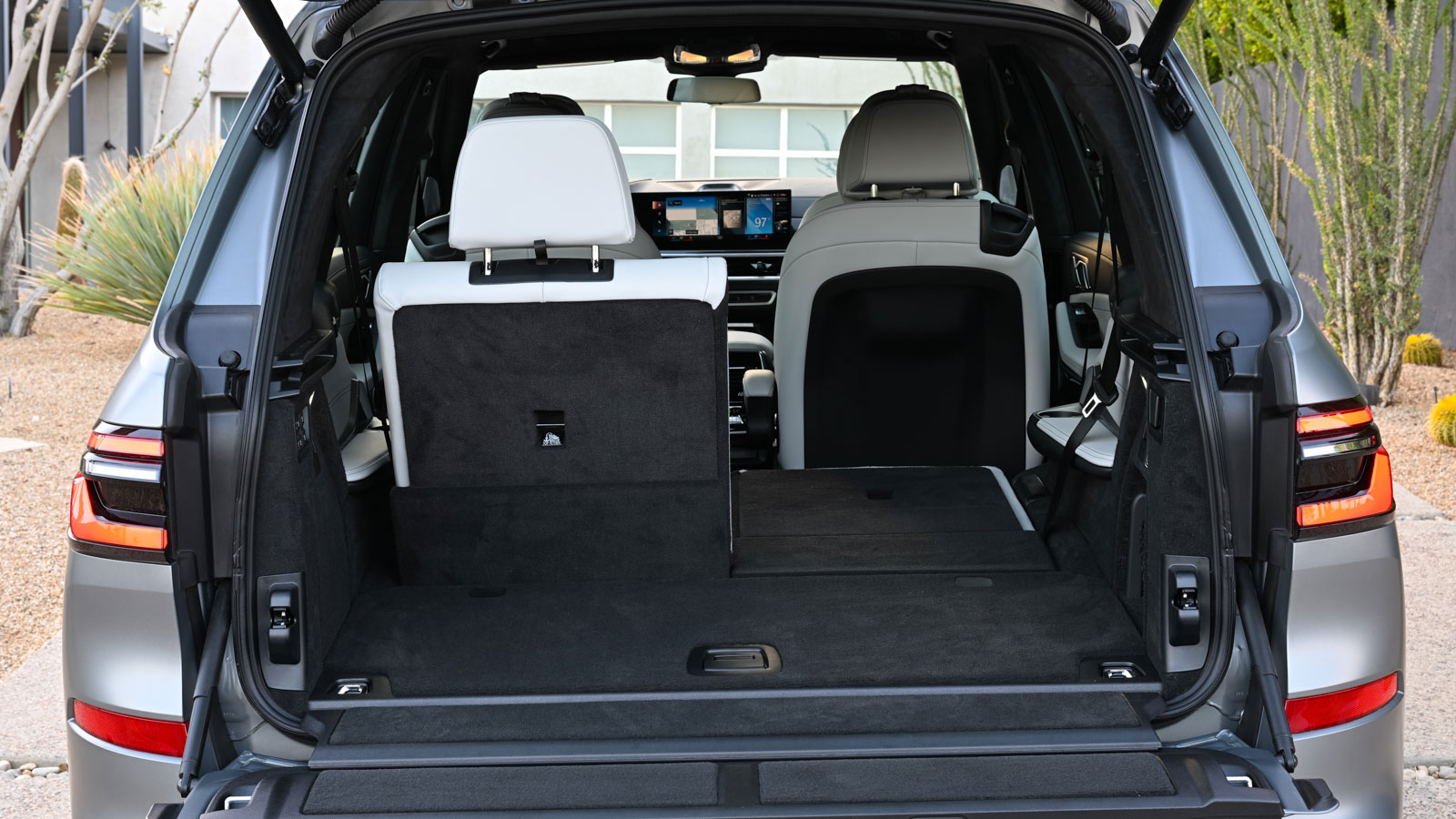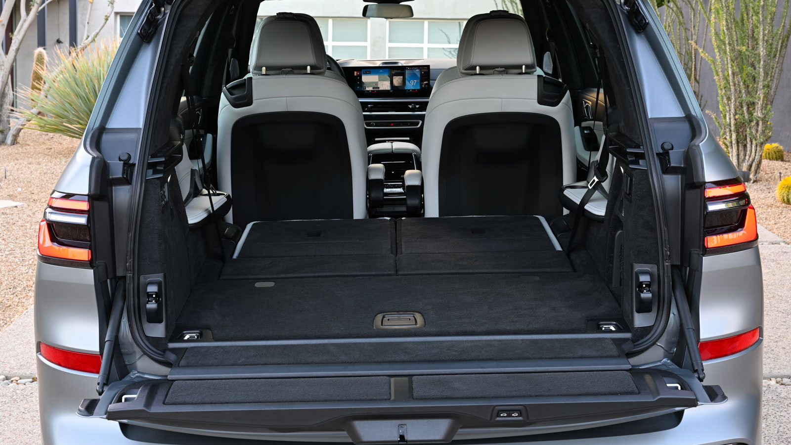 El maletero del BMW X7 es muy amplio cuando no desplegamos todos los asientos. Con 5 plazas disfrutamos de un volumen de 750 litros con formas muy prácticas, argollas para fijar la carga y un acceso cómodo a través de su gran portón trasero de apertura eléctrica. Si desplegamos las 7 plazas el volumen de carga se reduce hasta los 326 litros. Si podemos prescindir de las dos filas traseras, el volumen de carga del BMW X7 puede llegar hasta los 2.120 litros.