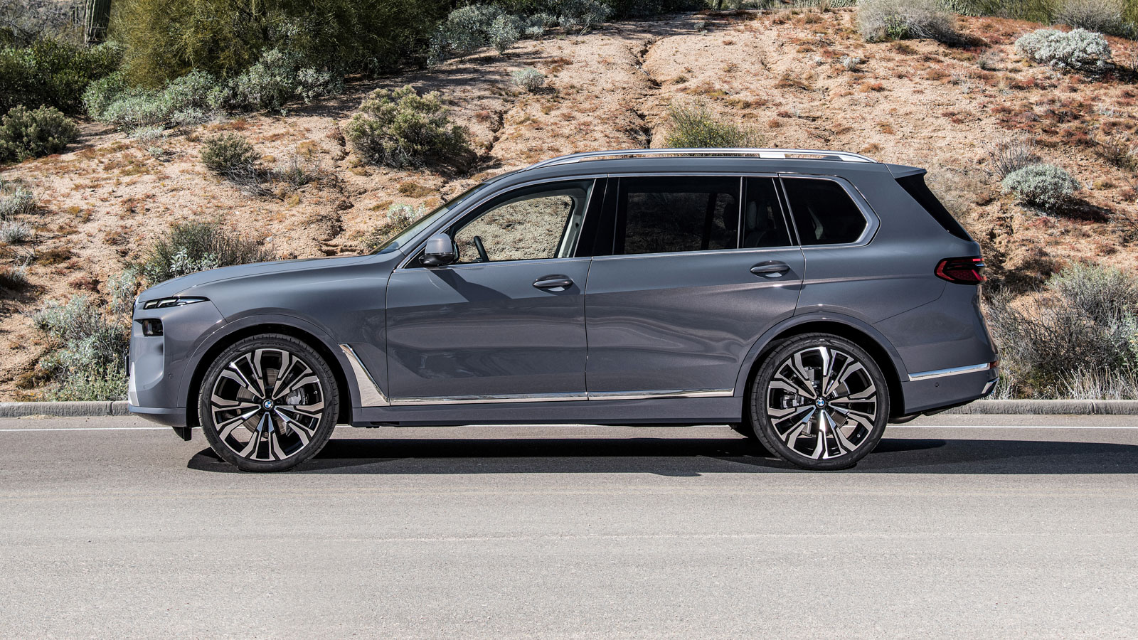 El BMW X7 es un SUV de gran lujo y familiar que, gracias a unas dimensiones con casi 5,2 m de largo, ofrece espacio hasta para 7 pasajeros en sus tres filas de asientos.