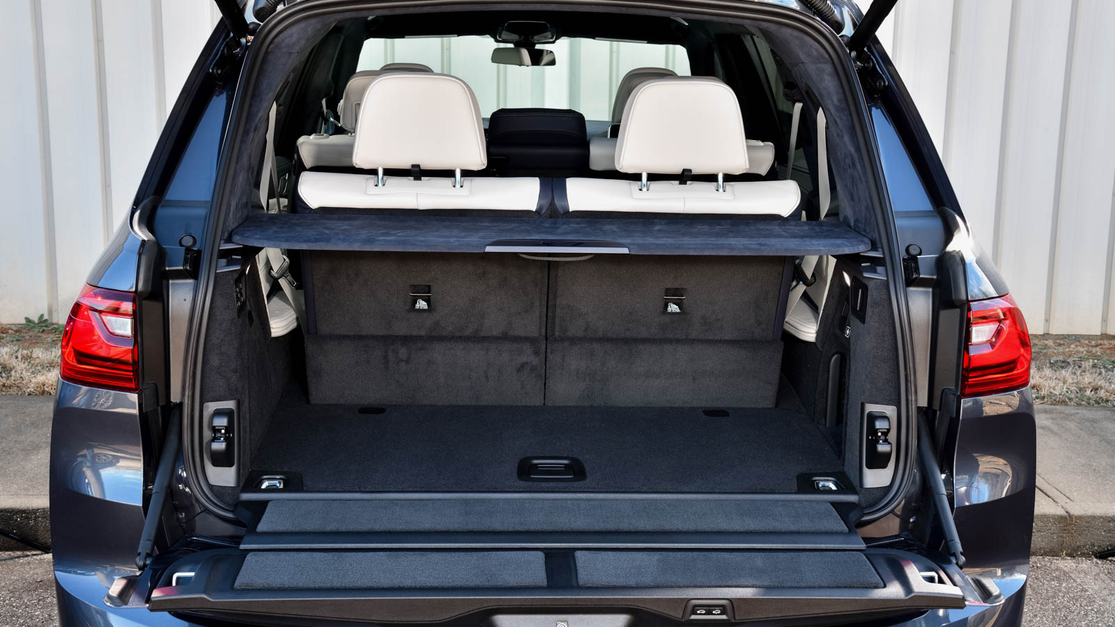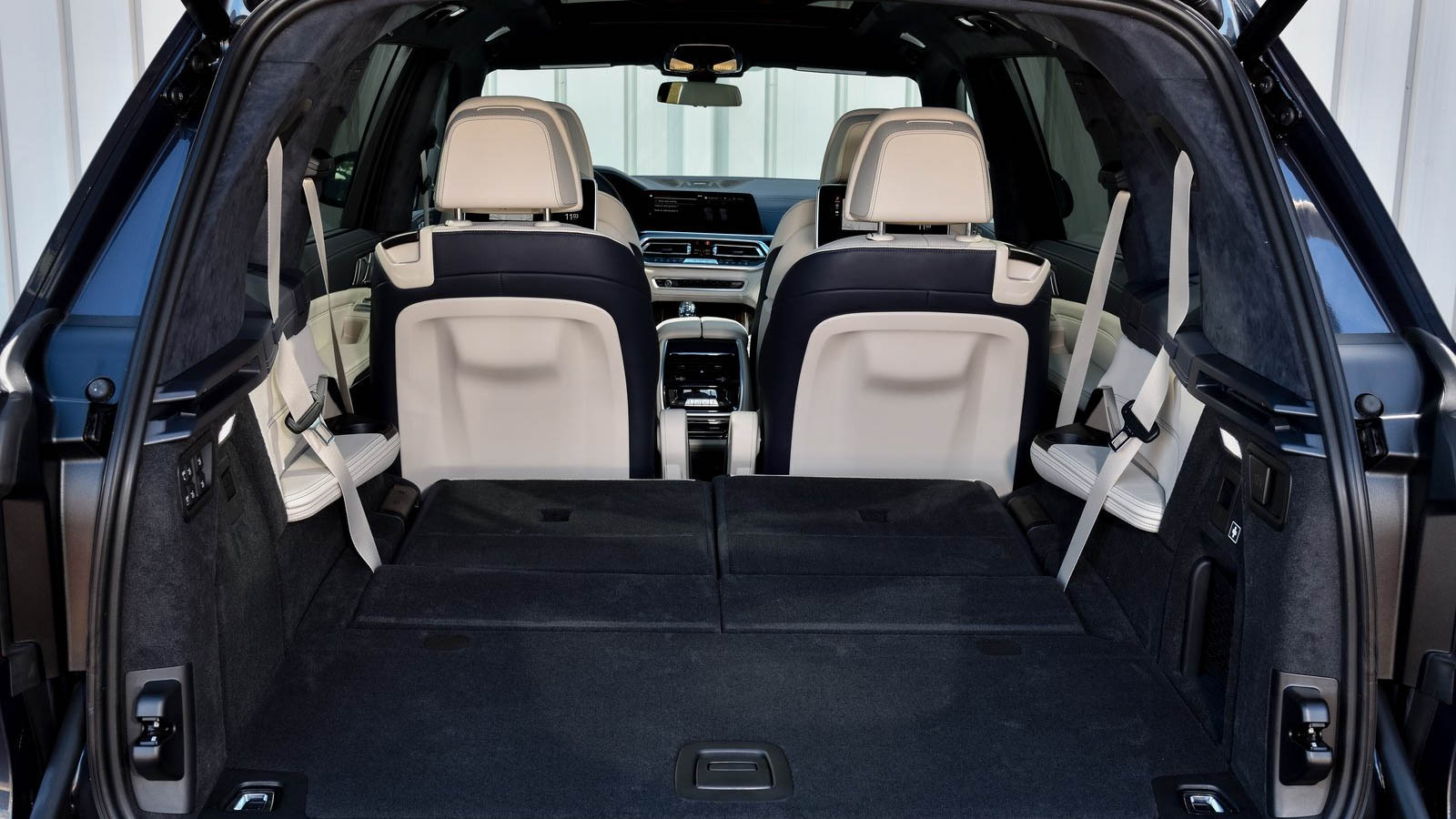 El maletero del BMW X7 llega a los 750 litros si se despliegan 5 plazas. Sus formas son muy cúbicas y utilizables, cuenta con varios puntos de anclaje y es muy modulable al poder abatir 5 de sus 7 plazas de forma individual.
