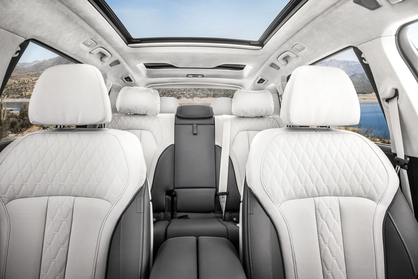 Podemos decir que si el coche va utilizado por cinco ocupantes, dos en las plazas delanteras (lógicamente) y tres en las traseras, y dejamos sin utilizar la tercera fila de asientos, todos los ocupantes tendrán muy buenas cotas de amplitud. En general, es uno de los coches más amplios del mundo. La “cosa” cambia para los pasajeros de la última fila de asientos, que siempre va a estar configurada para dos plazas. No tiene una cota longitudinal especialmente elevada y estos pasajeros necesitarán que los de la segunda fila se echan bastante para delante con lo cual le robará espacio y harán que, seguramente, que rocen sus piernas con los respaldos delanteros. Eso si en esta última fila de asientos los pasajeros son tratados con prácticamente los mismos lujos que el resto ya que aunque sea de manera opcional pueden tener asientos calefactables y regulables eléctricamente tomas USB climatizador independiente para ellos con la regulación de temperatura y caudal de aire y hasta un pequeño techo solar.