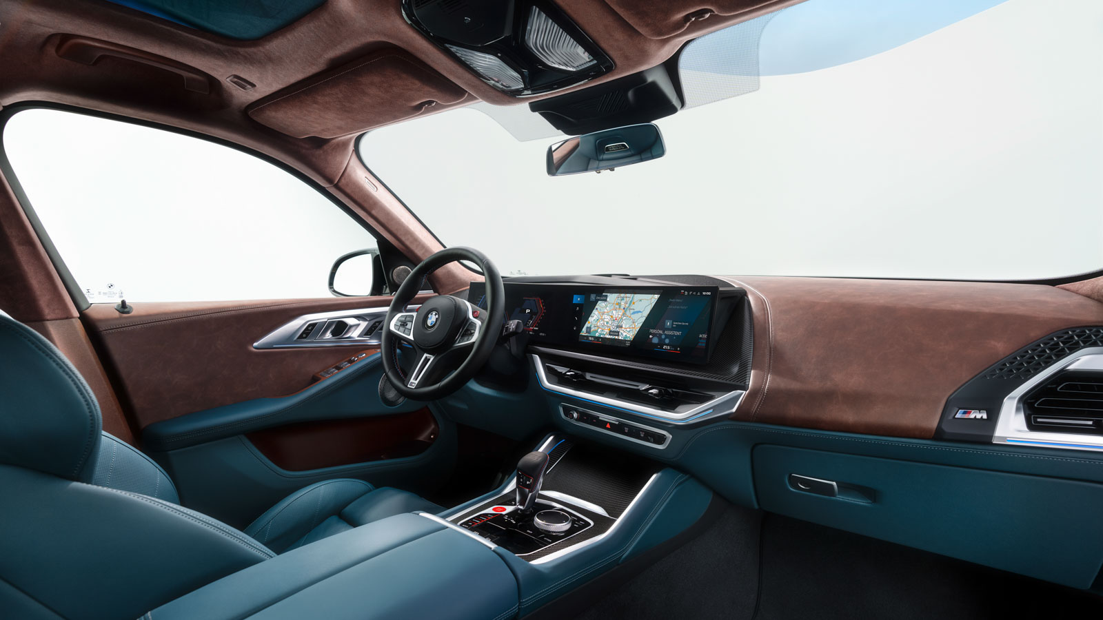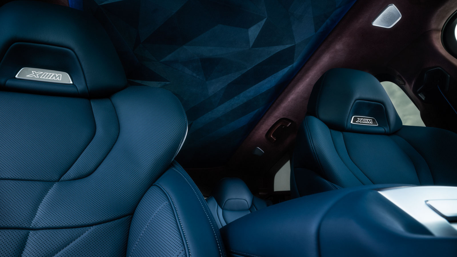 El BMW XM tiene un interior muy lujoso y amplio para sus 5 pasajeros. BMW M ofrece multitud de opciones para las tapicerías, colores y decoración interior de modo que es prácticamente un modelo hecho a medida del cliente. Las plazas delanteras tienen unos cómodos asientos envolventes con multitud de reglajes y climatizados. Las plazas traseras son muy espaciosas y en ellas pueden viajar tres adultos con suficiente holgura y confort. Uno de los detalles más llamativos del interior del BMW XM es el techo con más de 100 led iluminándolo o el tapizado de aspecto retro de los paneles de puerta y salpicadero.