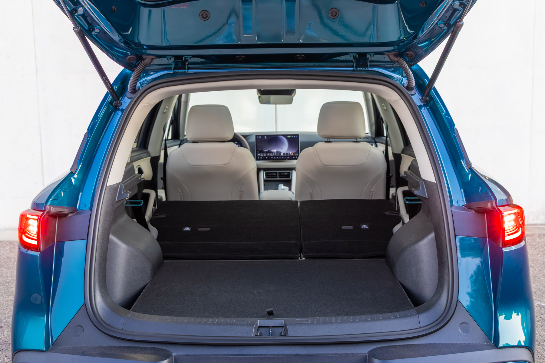 En el interior, el habitáculo destaca por un maletero con una capacidad de 425 litros, ampliable a 1.335 litros si se abaten los respaldos traseros. Tecnológicamente, incorpora de serie una instrumentación digital de 8,8 pulgadas y una pantalla táctil central de 12,8 pulgadas que integra el software propio de la marca con asistente de voz y conectividad inalámbrica para dispositivos móviles.