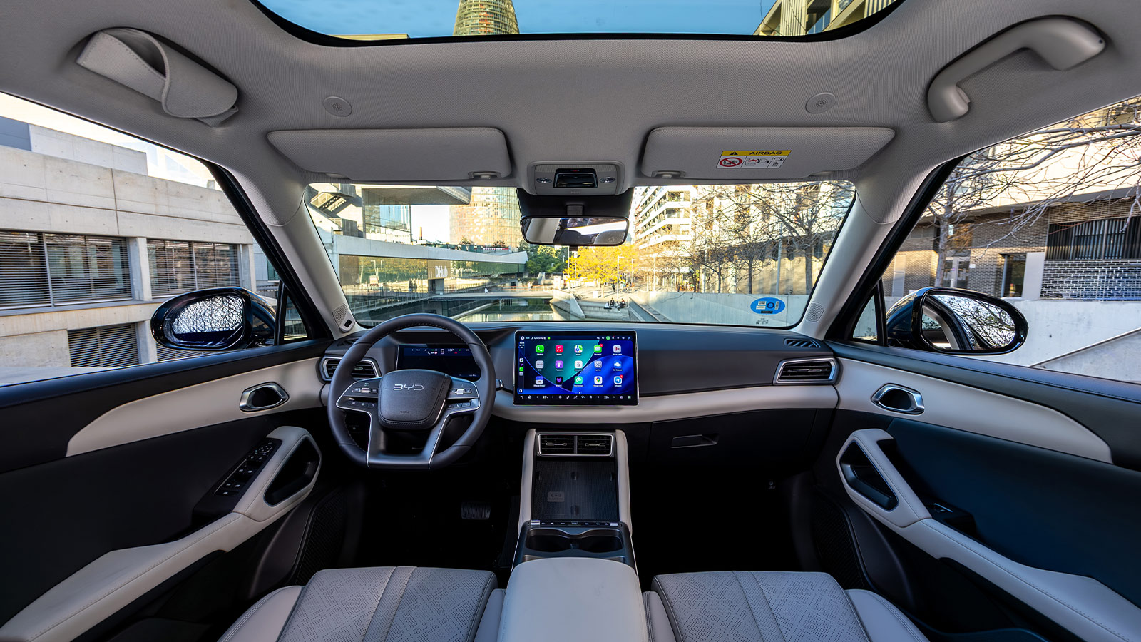 La gran protagonista sigue siendo la pantalla giratoria de 12,8 pulgadas, acompañada por un cuadro digital de 8,8 pulgadas. El sistema introduce mejoras de software y un asistente por voz mucho más natural gracias a modelos de IA generativa. Basta decir “Hi BYD” para pedir desde la climatización hasta funciones del navegador.