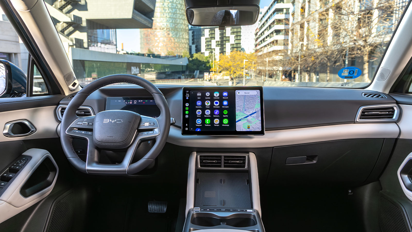 Dentro, el ATTO 2 DM-i da un salto en funcionalidad. Mantiene buenos materiales y el estilo atractivo de BYD, pero suma detalles que no tiene la versión eléctrica:
