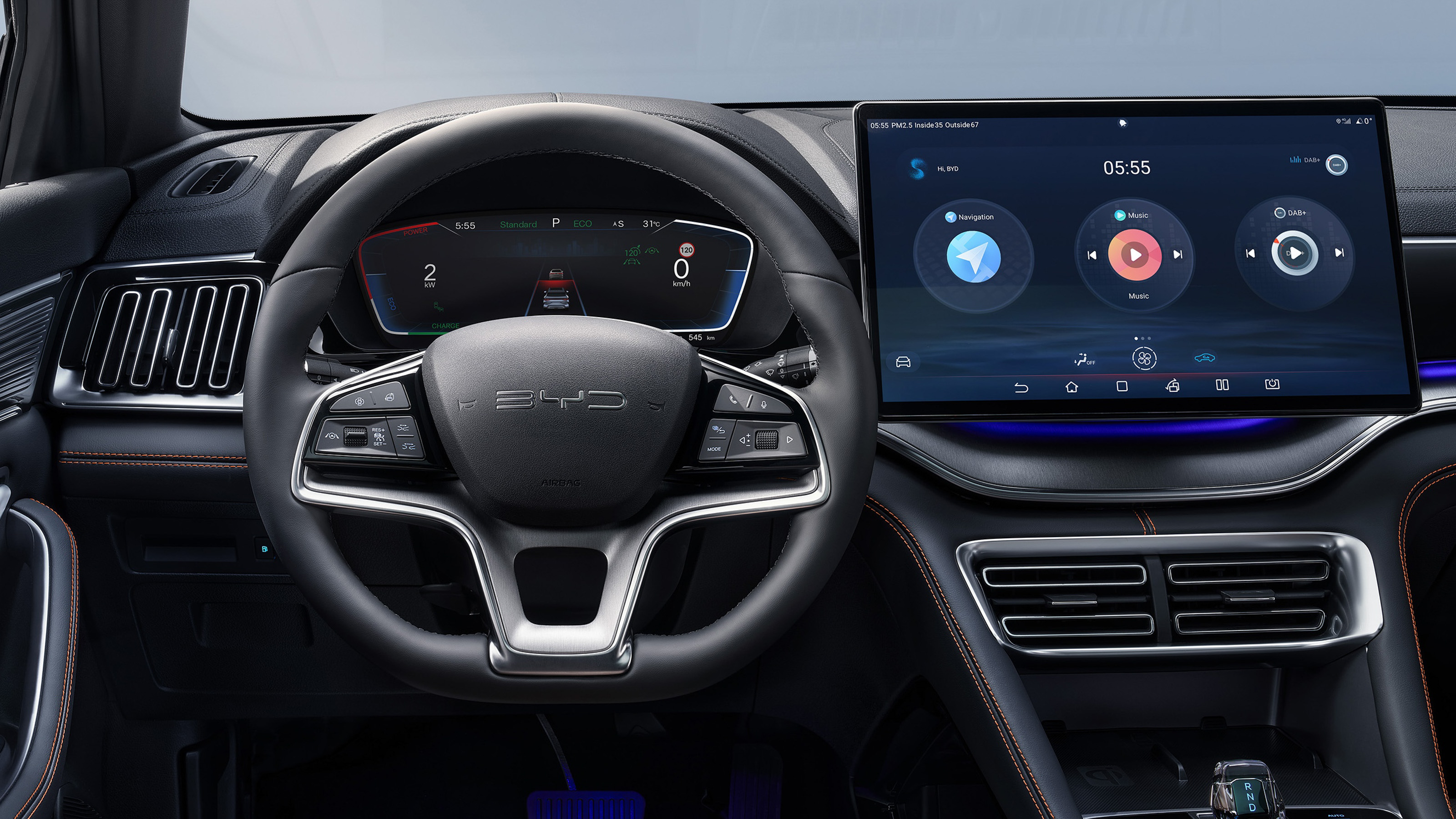 El BYD Seal U, perteneciente a la Serie Ocean de BYD, tiene un interior que combina cierta elegancia con practicidad. Esto es debido a que ha sido diseñado con superficies suaves al tacto y una tapicería que transmite buena sensación de calidad. La mayoría de funciones se manejan a través del "Ocean heart", como BYD denomina a la consola central y su generosa pantalla multimedia (de tipo LCD giratoria y 15,6 pulgadas), que funciona en combinación con la pantalla de instrumentación. Los asientos tienen un acolchado con diseño de diamante que, según BYD, "subrayan el enfoque en el confort y la elegancia".