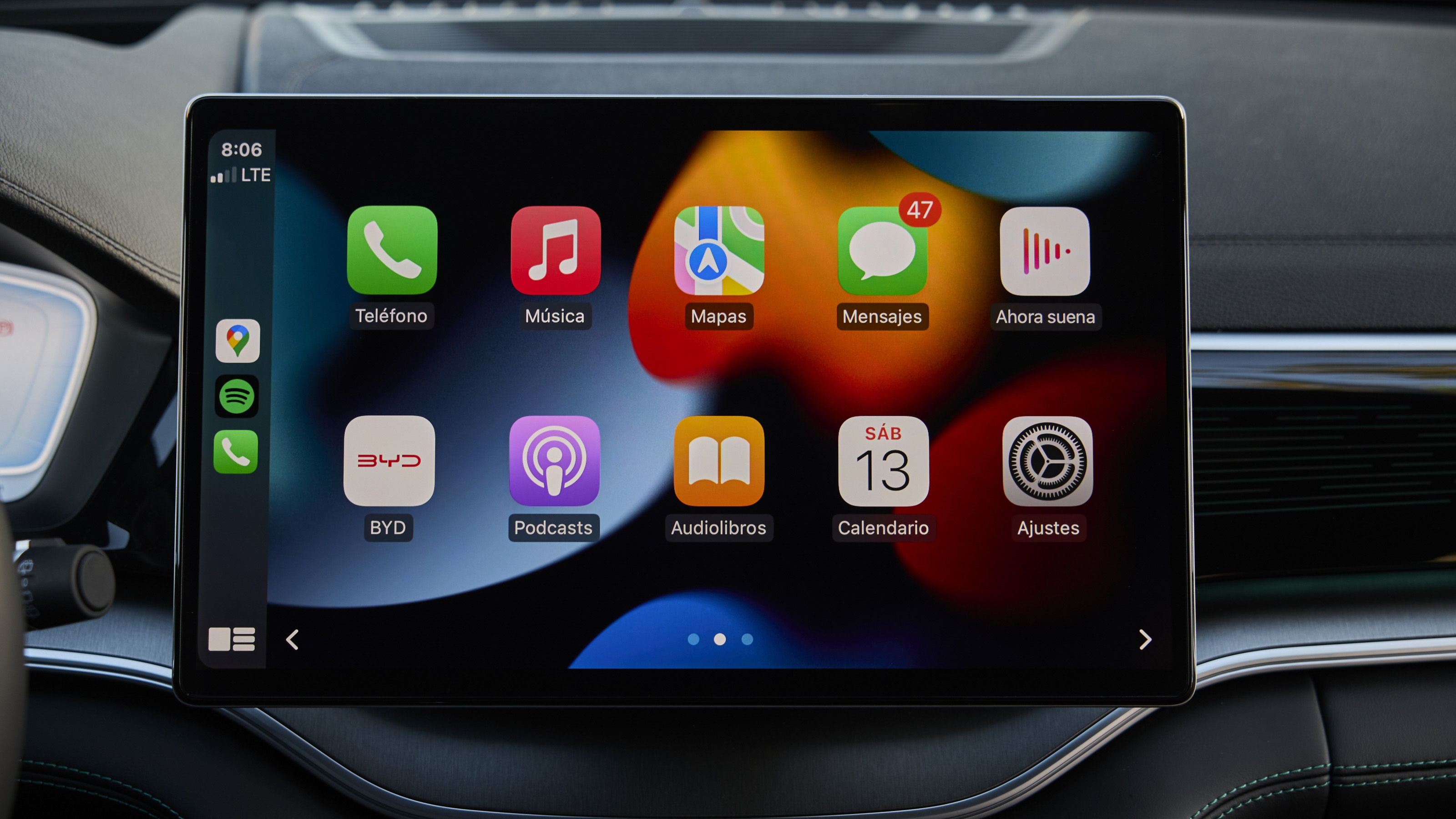 En base a nuestra experiencia con otros modelos, creemos que BYD ofrece un buen sistema multimedia por su fluidez de respuesta y la calidad de imagen de las pantallas. Como es cada vez más frecuente, se pueden manejar algunas funciones del vehículo y consultar datos relevantes, como el progreso de una recarga, desde una aplicación para el teléfono móvil, de manera remota.