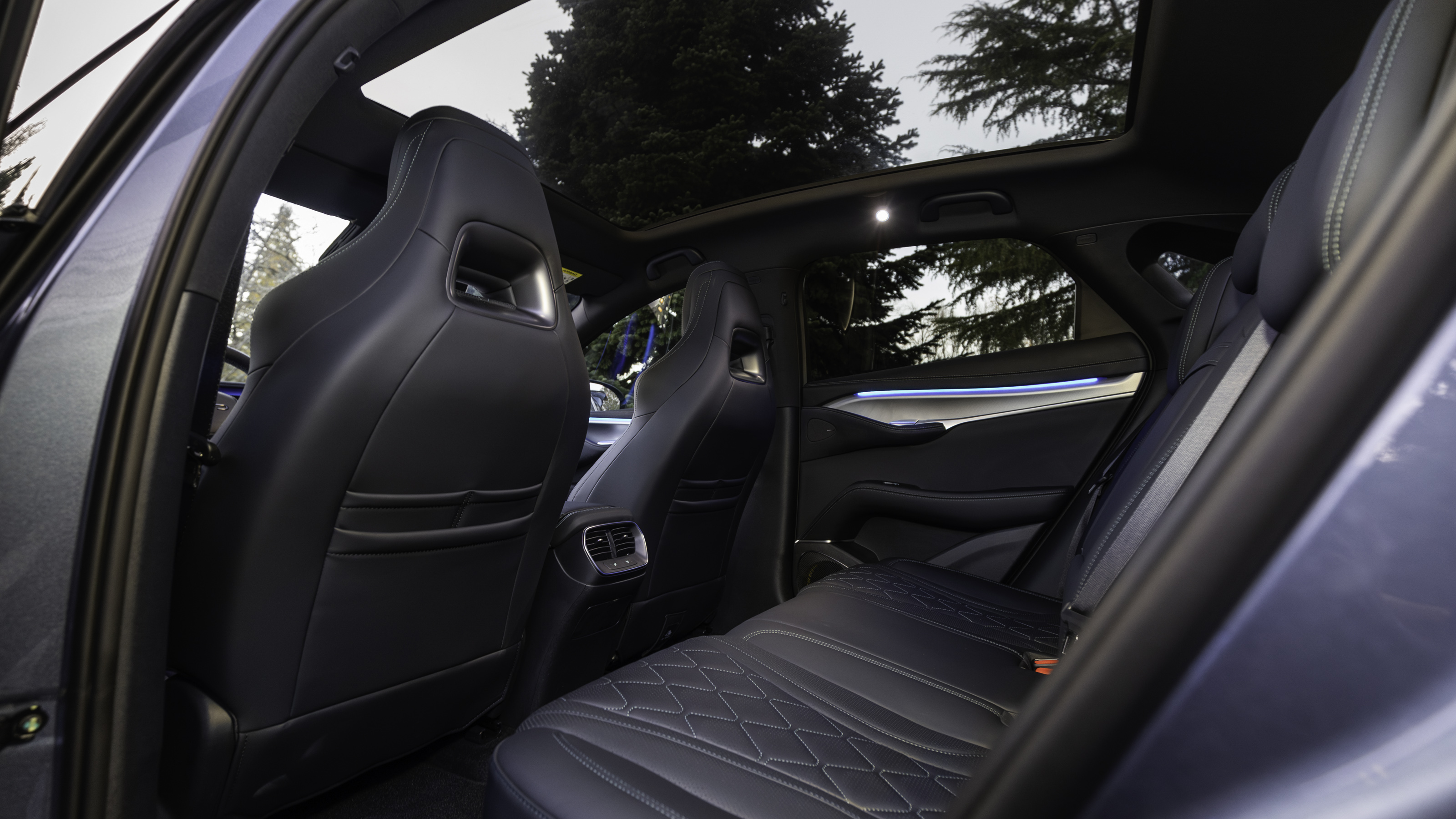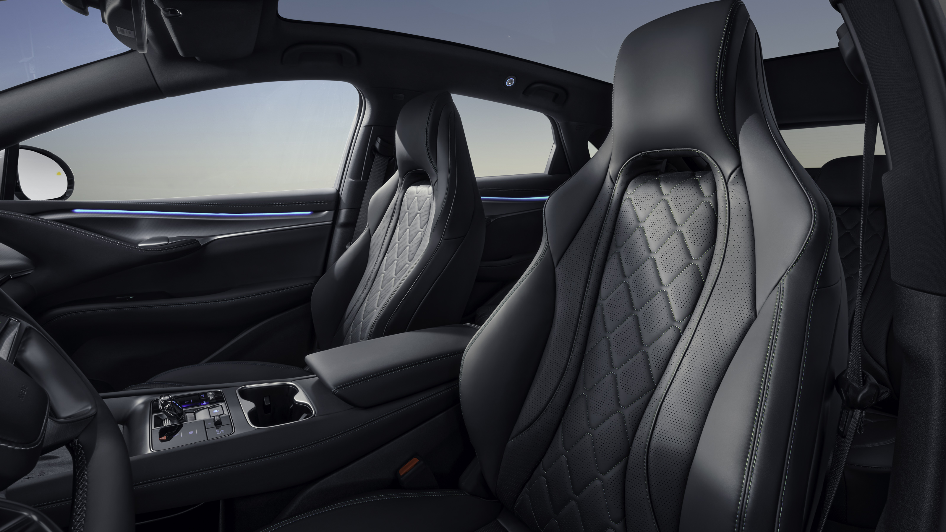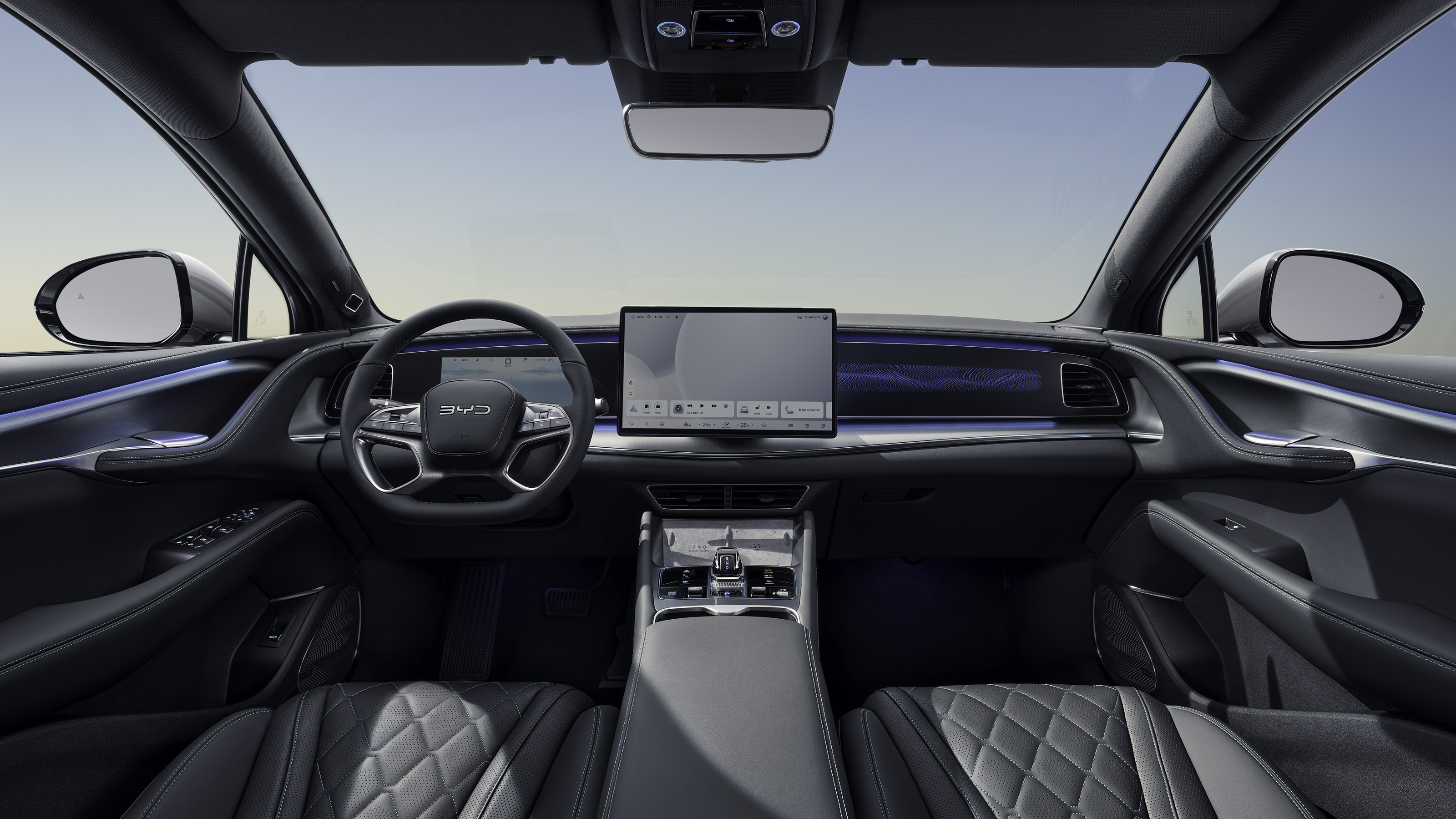 En el interior, el SEALION 7 ofrece un espacio de aspecto lujoso y tecnológico, con acabados que aparentan ser de alta calidad, asientos tapizados en cuero "vegano" o napa (o sea, piel de verdad, según el acabado) y una consola central de doble altura.