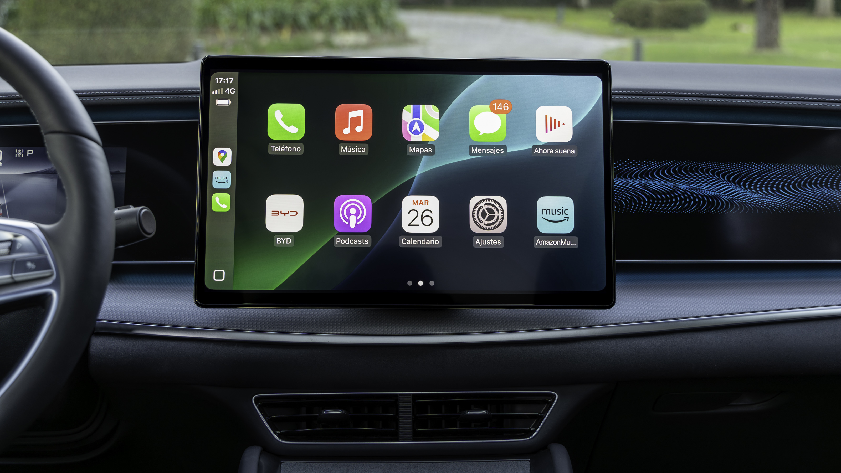 El sistema multimedia del Sealion 7 incorpora la última versión del software de BYD, con una interfaz revisada que incluye una representación en 3D del coche para interactuar con funciones específicas. La pantalla central de 15,6” no solo es táctil, sino que también rota eléctricamente para mayor versatilidad. Las instrucciones de navegación y otra información relevante pueden mostrarse tanto en la pantalla principal como en la instrumentación digital de 10,25” y, en las versiones superiores, en el Head-Up Display (HUD).