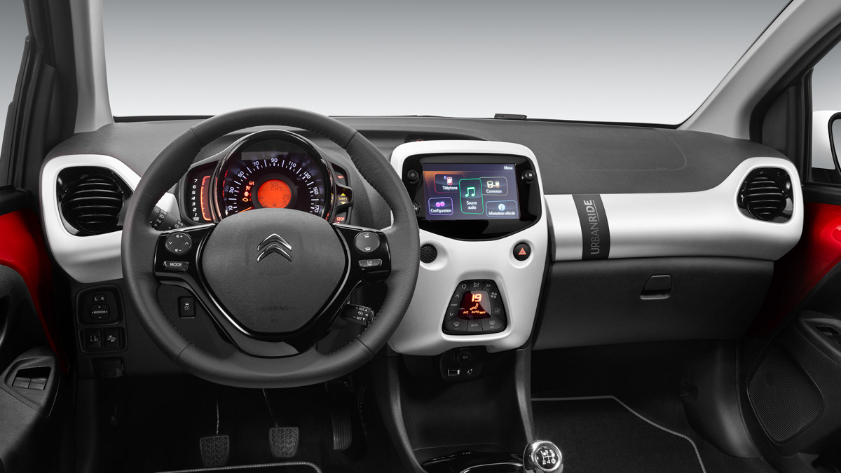 De serie toda la gama del Citroën C1 cuenta con una pantalla táctil de 7” ubicada en el salpicadero. Desde ella se pueden controlar las funciones habituales de radio, multimedia e información del vehículo, pero también ofrece compatibilidad con los sistemas Android Auto y Apple CarPlay y por supuesto, Bluetooth. No existe la opción de incorporar un navegador integrado.