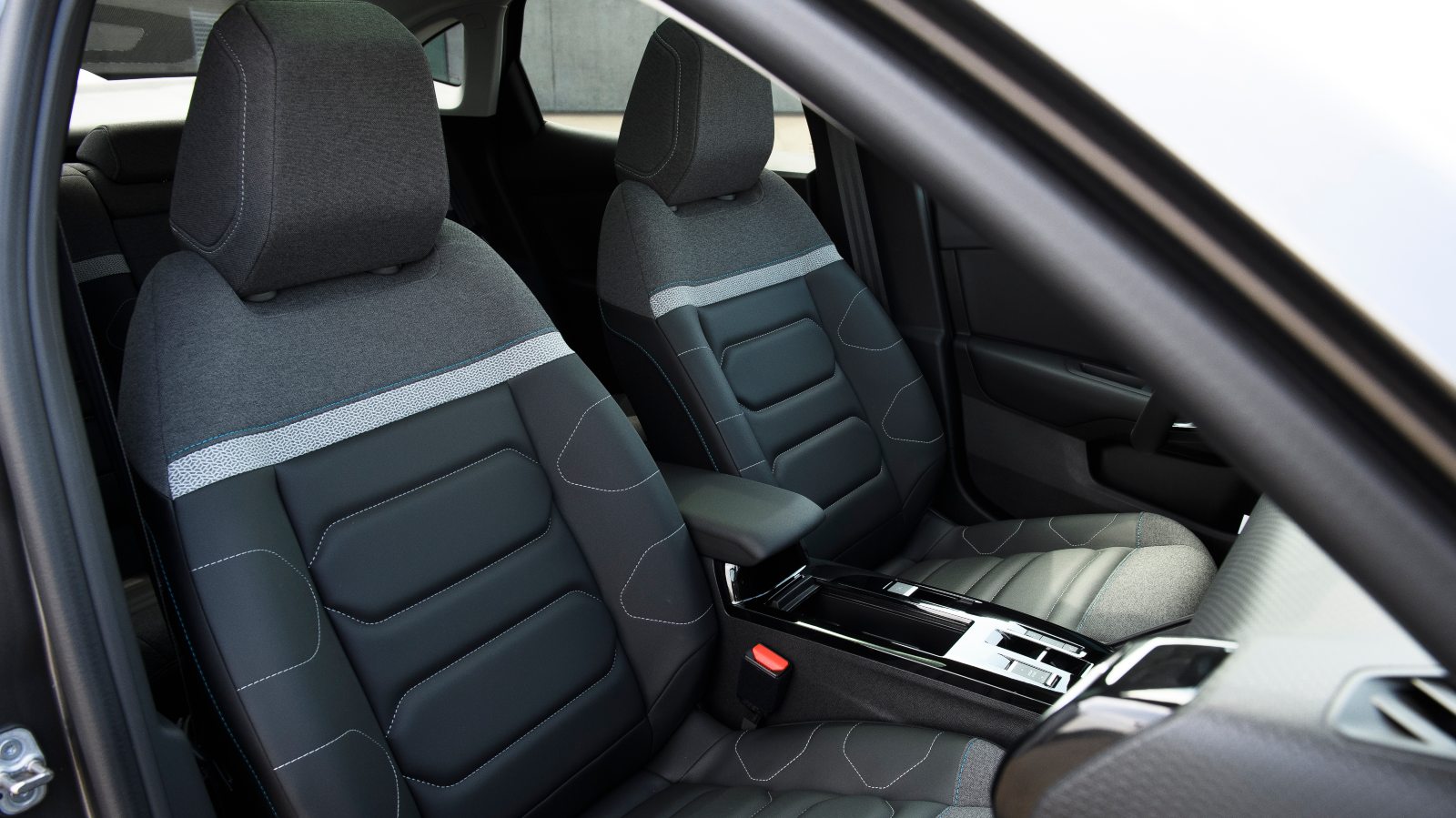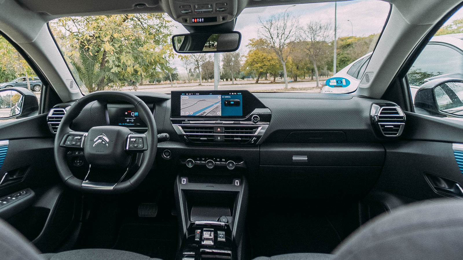 No hay ninguna diferencia con el habitáculo que ya conocemos del Citroën C4 normal, pues que tienen la misma batalla y, por tanto, el mismo espacio para las piernas. No se ha hecho tampoco ninguna distinción en cuanto a diseño, más allá de ofrecer un acabado tope de gama con tapicería de Alcántara. La altura de carrocería también es idéntica, por lo que el acceso sigue siendo igual de bueno.