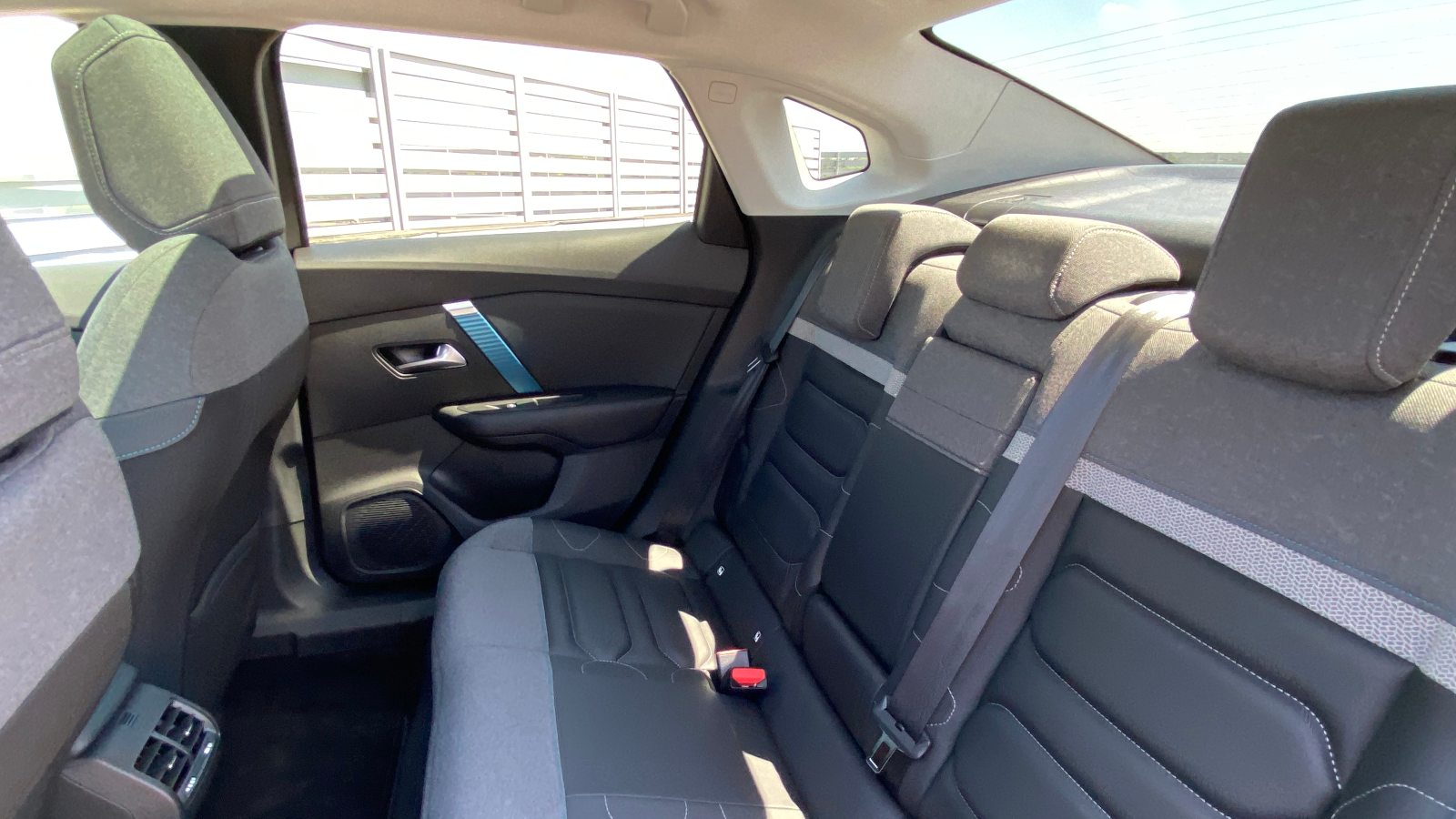 En espacio tampoco hay ninguna diferencia con respecto al C4, al menos en cuanto a distancia para las piernas o anchura. No he podido apreciar tampoco que tenga menos espacio para la cabeza en los asientos traseros, que están ligeramente más inclinados que en otros rivales, pero que sigue siendo algo justo para un adulto de 1,85 metros. En las plazas delanteras, a pesar de equipar nuestra unidad con el techo panorámico, dispone de una amplitud más que suficiente, aunque la consola central no es muy ancha. Es probable que dos adultos de cierta corpulencia tengan dificultades para compartir el reposabrazos. Del C4X Podemos decir que, en general, tiene una buena amplitud para su tamaño.