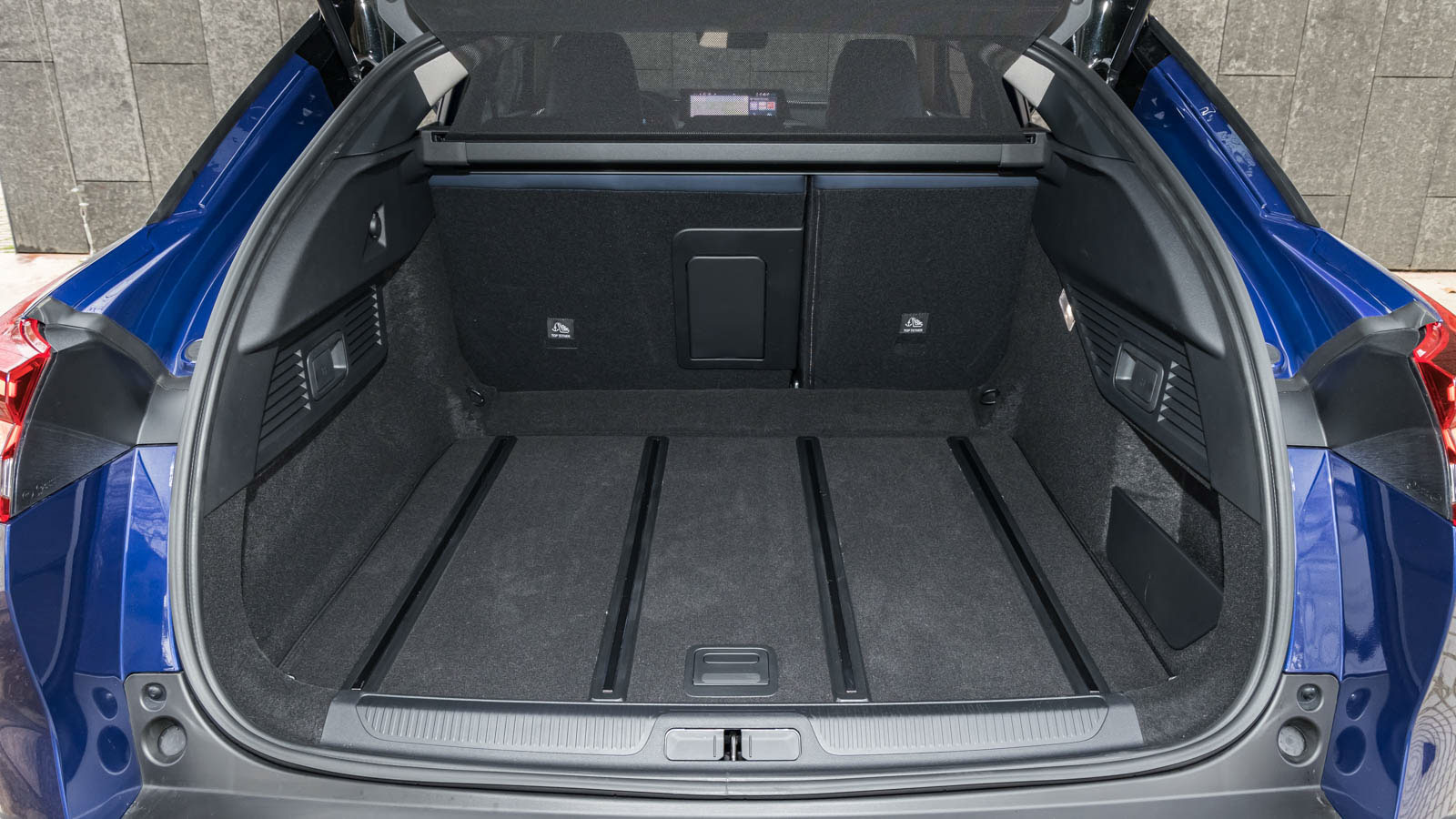 El Citroën C5 X cuenta con un amplio maletero de 545 litros de capacidad. El portón (que puede tener accionamiento eléctrico) ofrece una apertura amplia con la que resulta cómodo cargar bultos grandes y además la boca de carga queda baja. La variante híbrida enchufable ve reducida la capacidad del maletero hasta los 485 litros dado que tiene que alojar la batería bajo el piso del maletero.